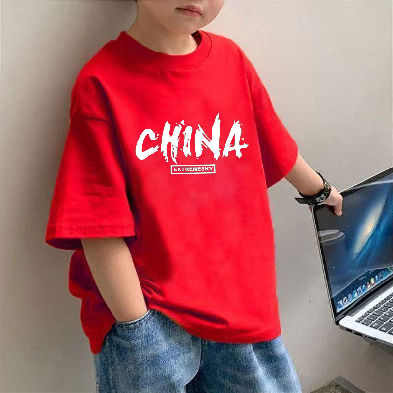 2328 # 소년 반팔 티셔츠 새로운 순수 코튼 여름 통기성 아동복 소년과 소녀를위한 소년과 소녀를위한 큰 아동복