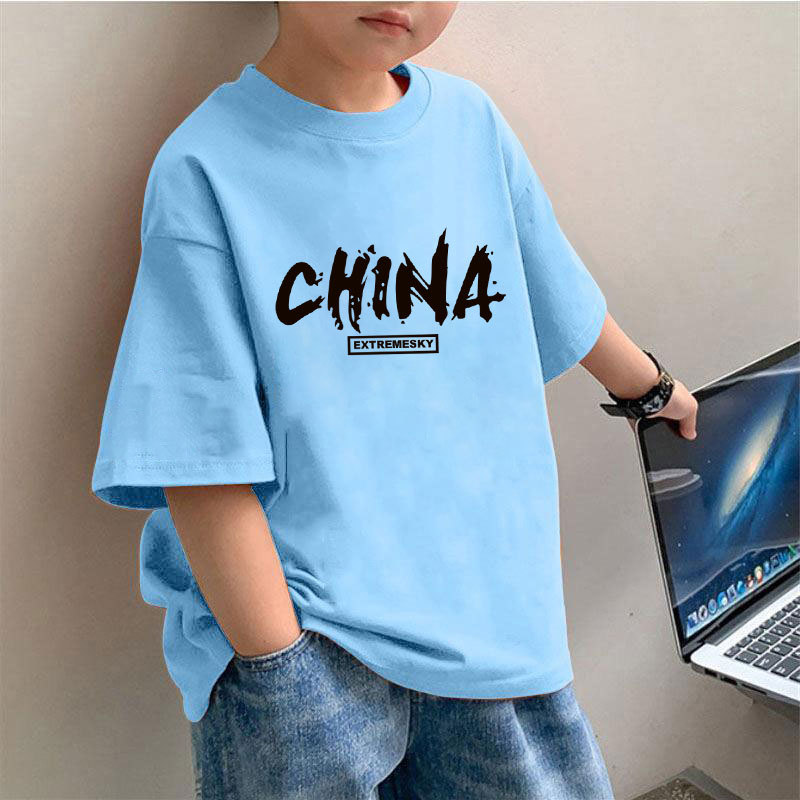 2328 # 소년 반팔 티셔츠 새로운 순수 코튼 여름 통기성 아동복 소년과 소녀를위한 소년과 소녀를위한 큰 아동복스토어 가기