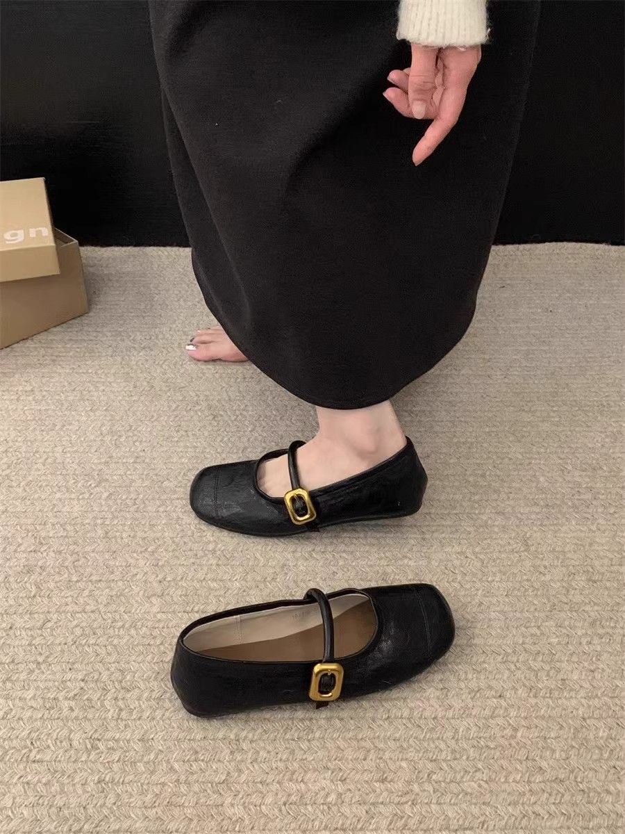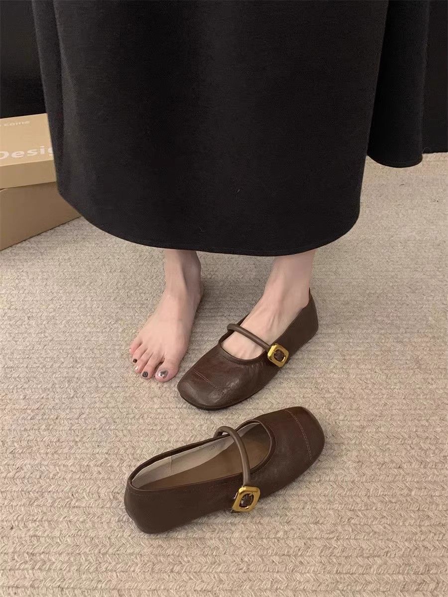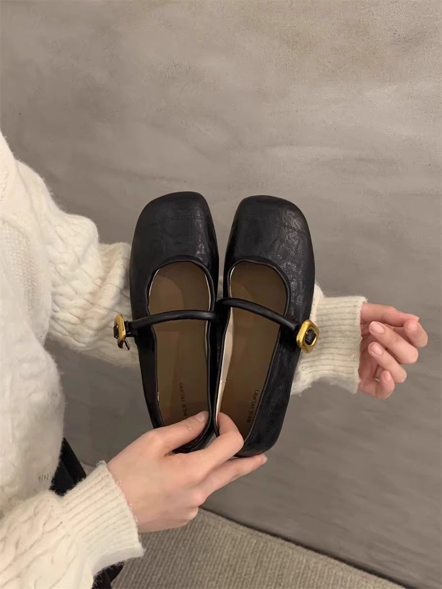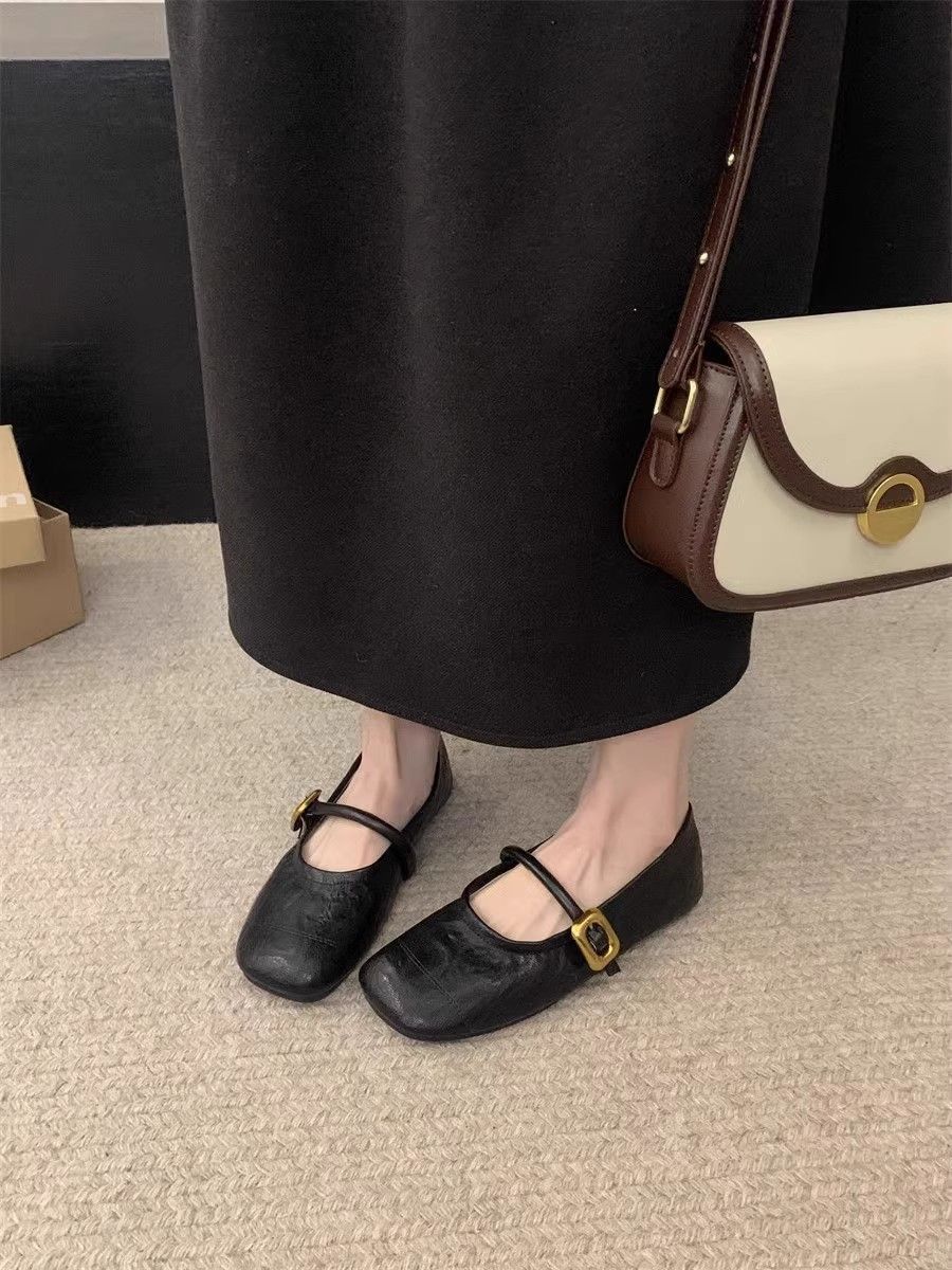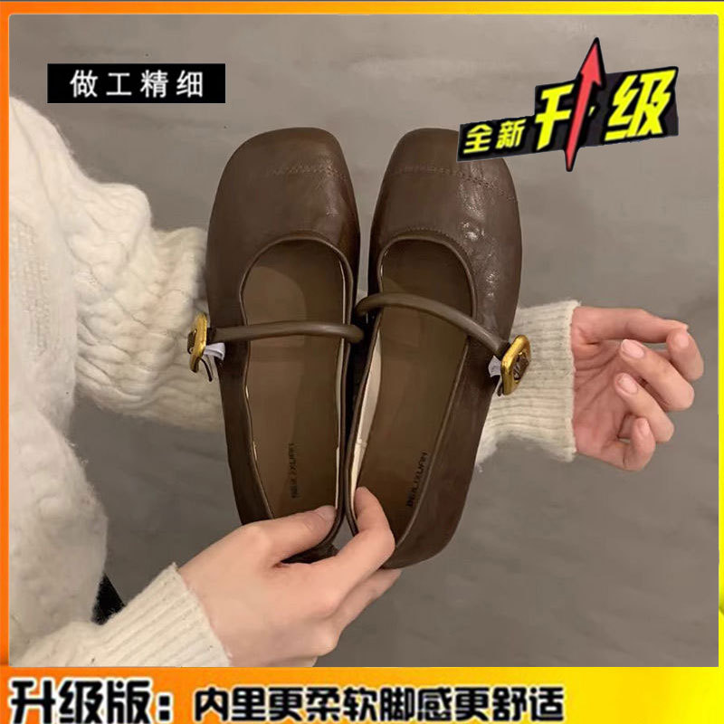 정품 가죽 부드러운 밑창 메리 제인 신발 여성 작은 가죽 신발 2025 봄과 여름 새로운 올매치 싱글 레이어 신발 플랫 여성 신발스토어 가기