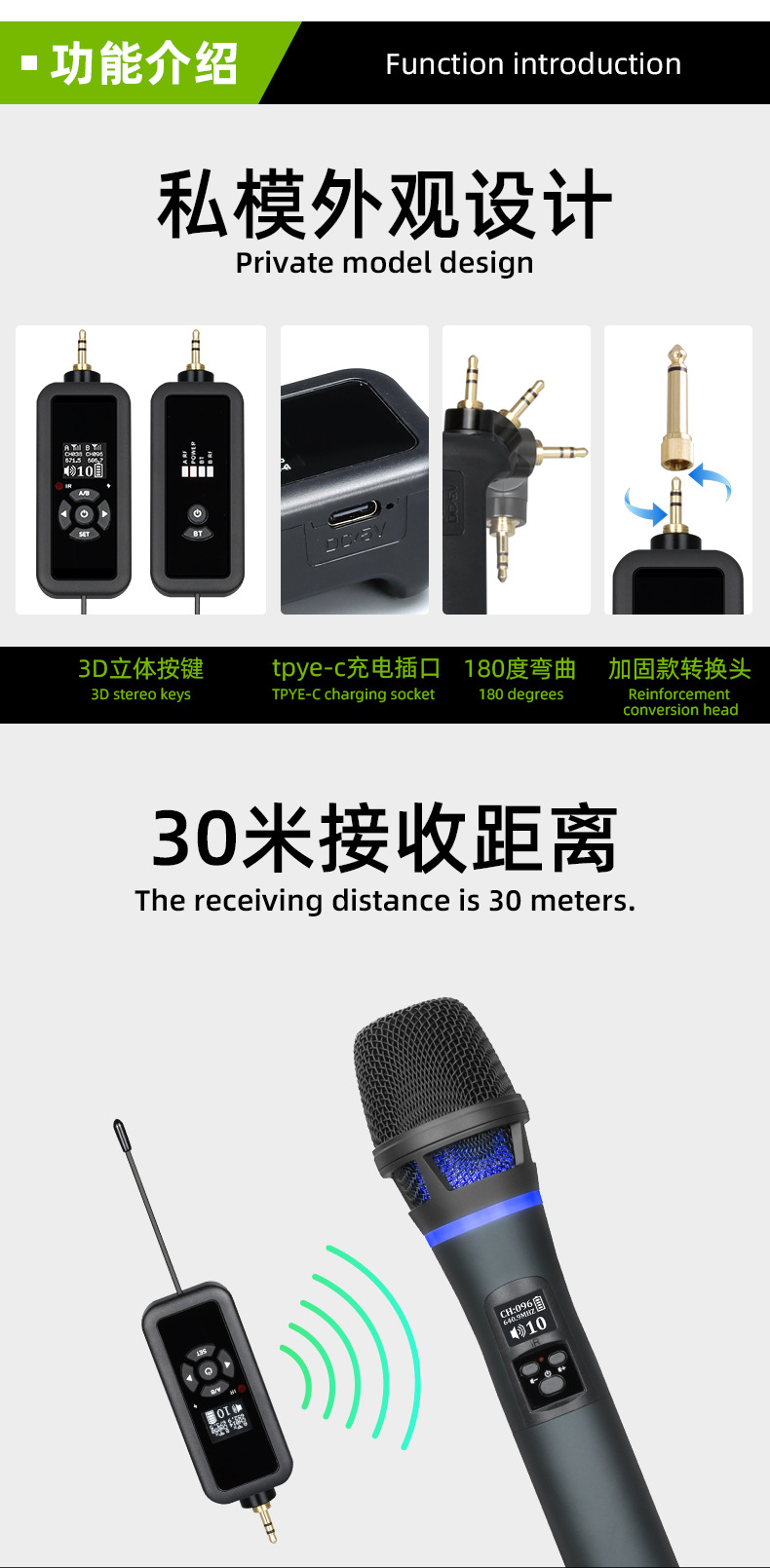 공장 도매 맞춤형 로고 전문 무선 적외선 주파수 마이크 라이브 성능 충전 마이크 1 드래그 2스토어 가기
