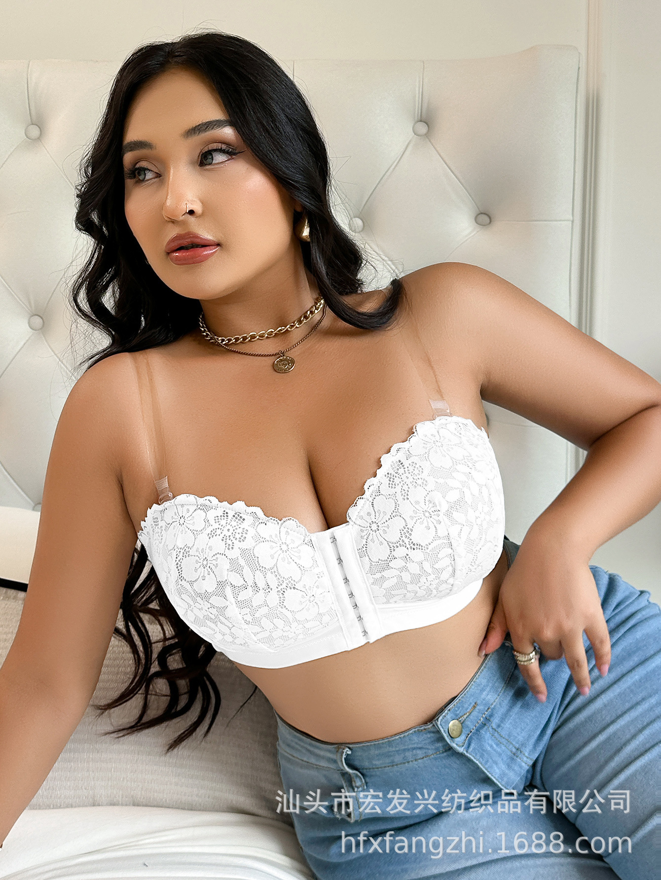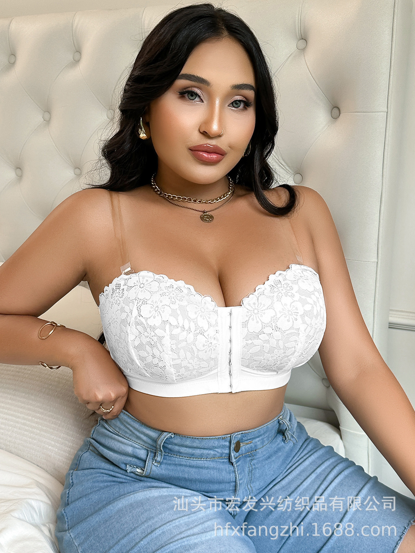 국경을 넘나드는 인기 있는 앞 버튼 큰 가슴 푸시 업 브라 레이스 꽃 자수 중공 메쉬 섹시 속옷 뚱뚱한 mm 독점스토어 가기