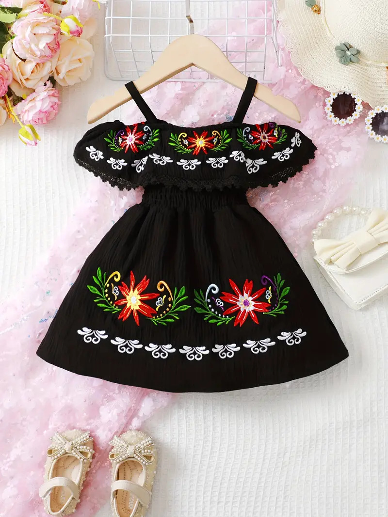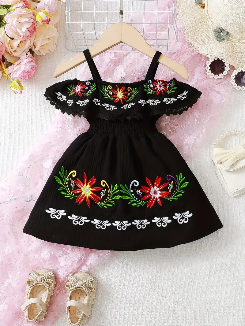 국경 간 대외 무역 아동 의류 아기 소녀 봄과 여름 새로운 레이디 스타일 서스펜더 수 놓은 꽃 거즈 스커트 드레스 야외스토어 가기