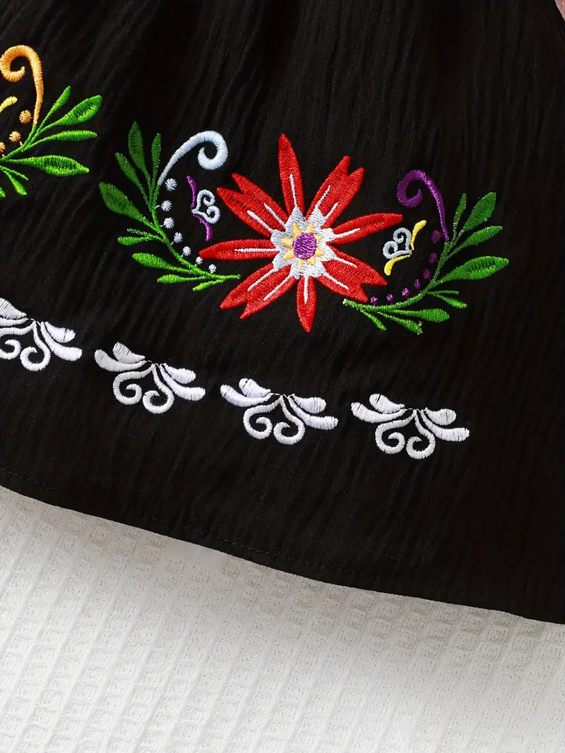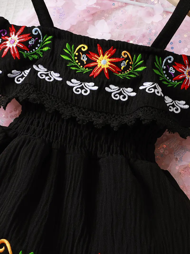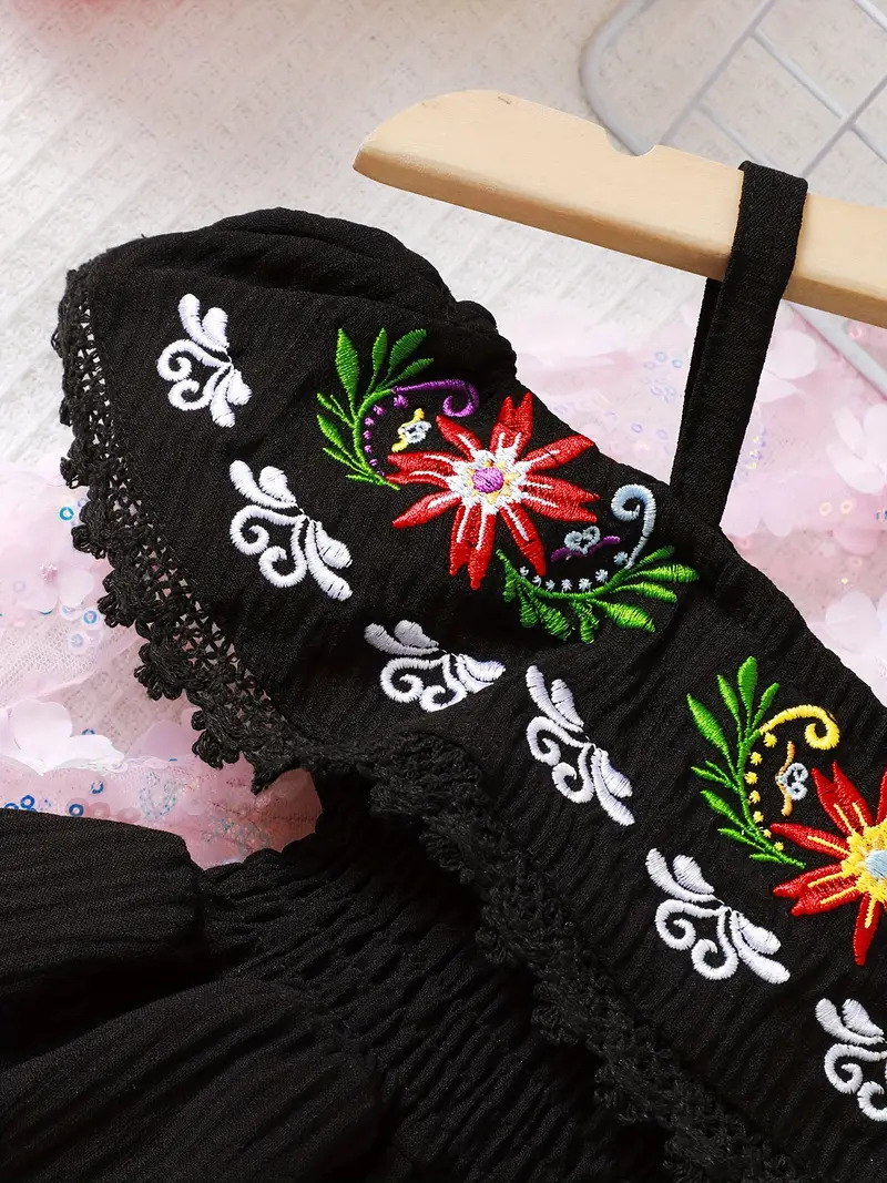 국경 간 대외 무역 아동 의류 아기 소녀 봄과 여름 새로운 레이디 스타일 서스펜더 수 놓은 꽃 거즈 스커트 드레스 야외