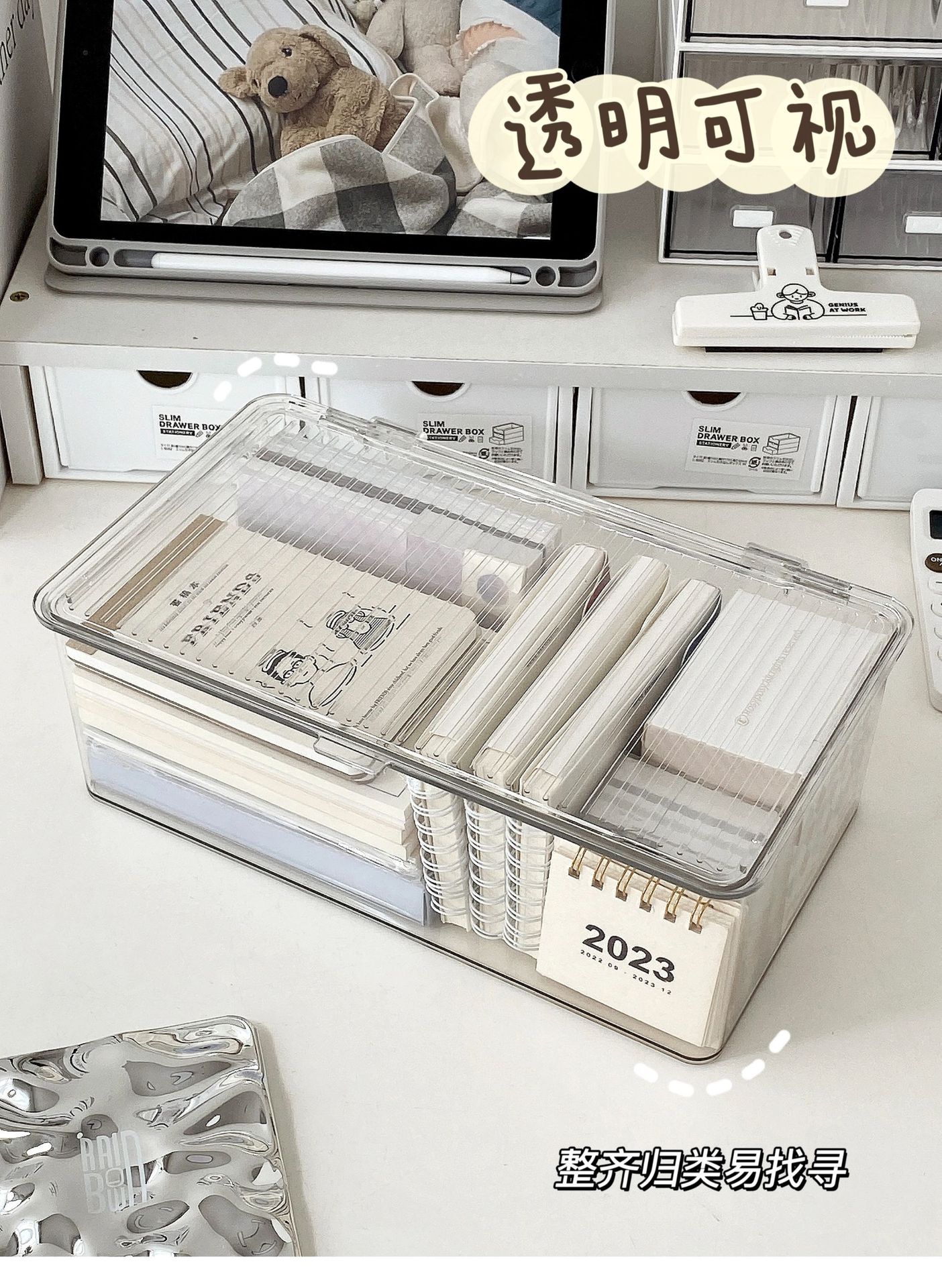 뚜껑이 있는 데스크탑 보관함 아크릴 투명 보관함 책상 화장품 액세서리 편의 메모 플라스틱 보관 바구니스토어 가기