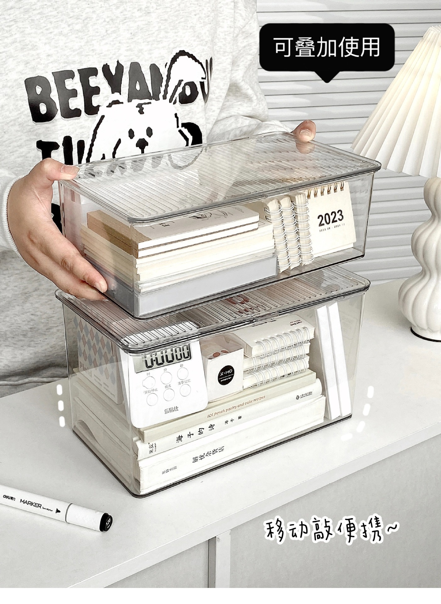 뚜껑이 있는 데스크탑 보관함 아크릴 투명 보관함 책상 화장품 액세서리 편의 메모 플라스틱 보관 바구니