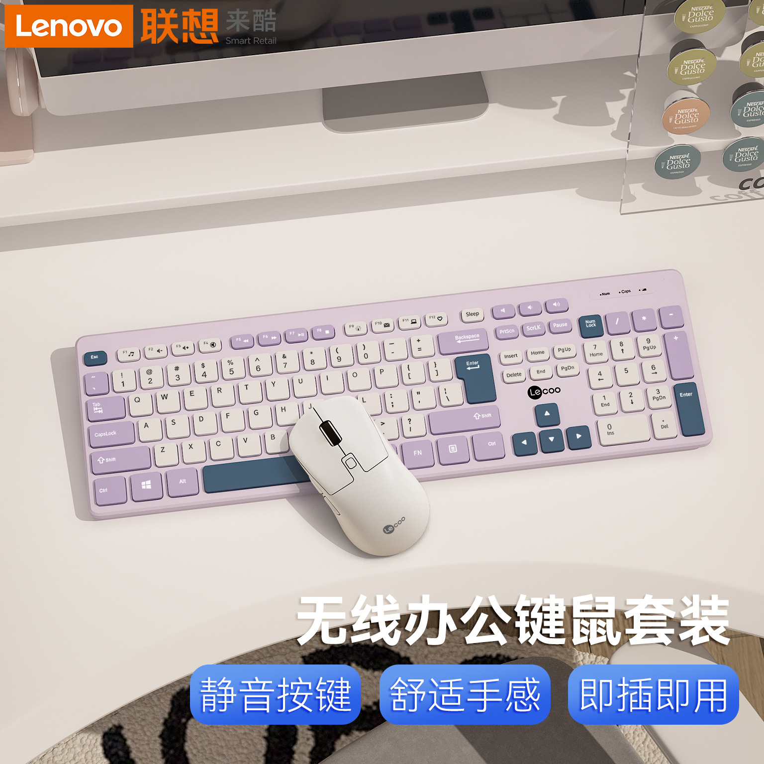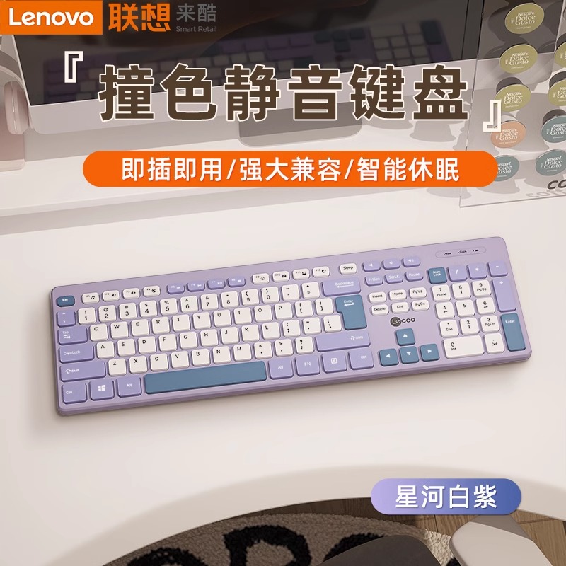 레노버 멋진 무선 키보드 음소거 사무실 소녀 높은 색상 가치 귀여운 노트북 데스크톱 컴퓨터 범용 도매스토어 가기
