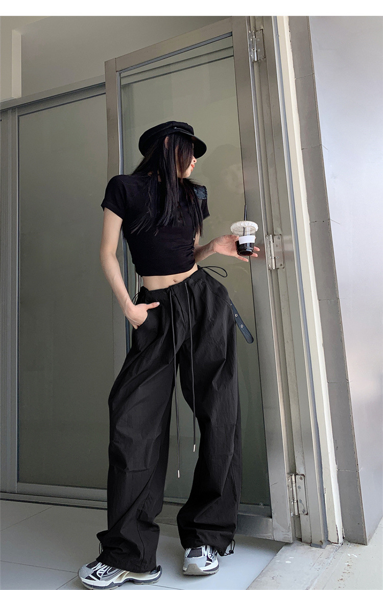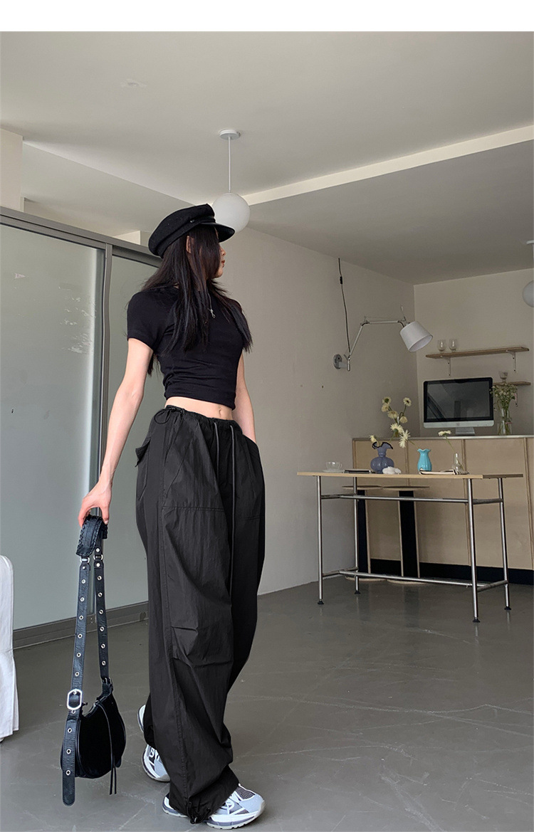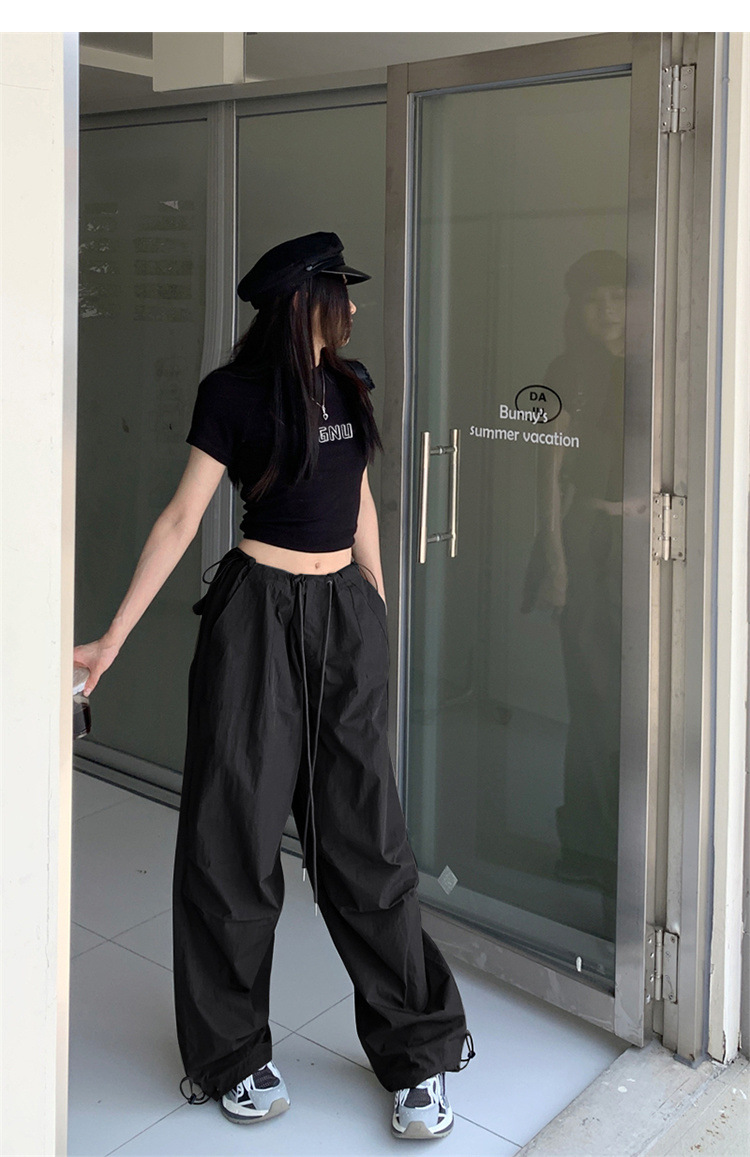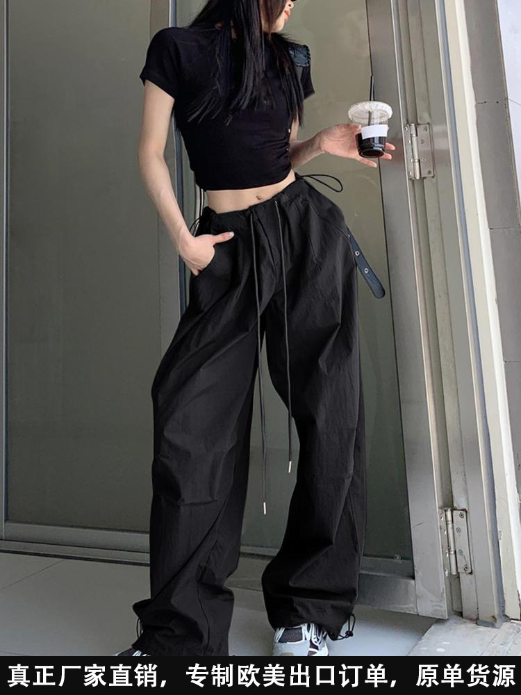 미국식 레트로 빠른 건조 낙하산 넓은 다리 키 큰 여성의 긴 길이 패션 브랜드 여름 얇은 바지스토어 가기