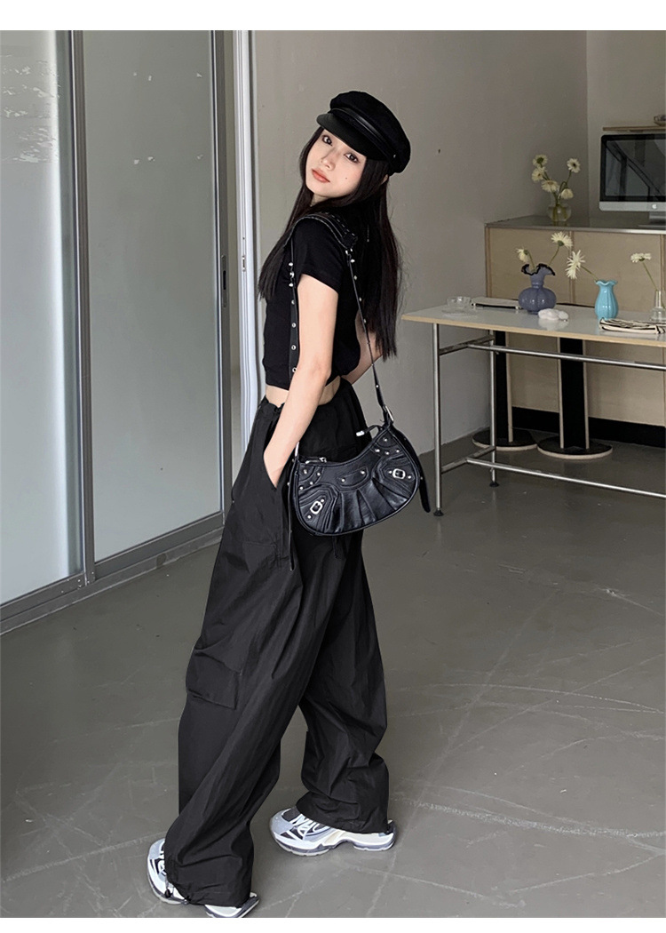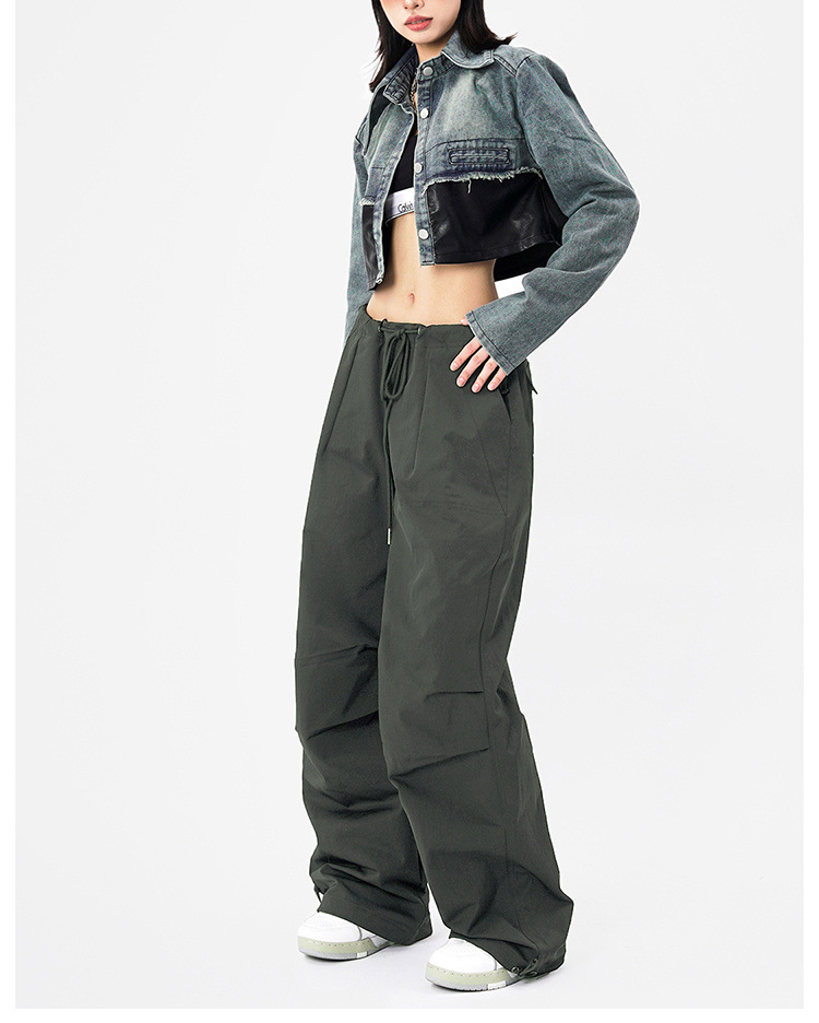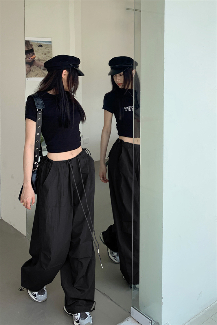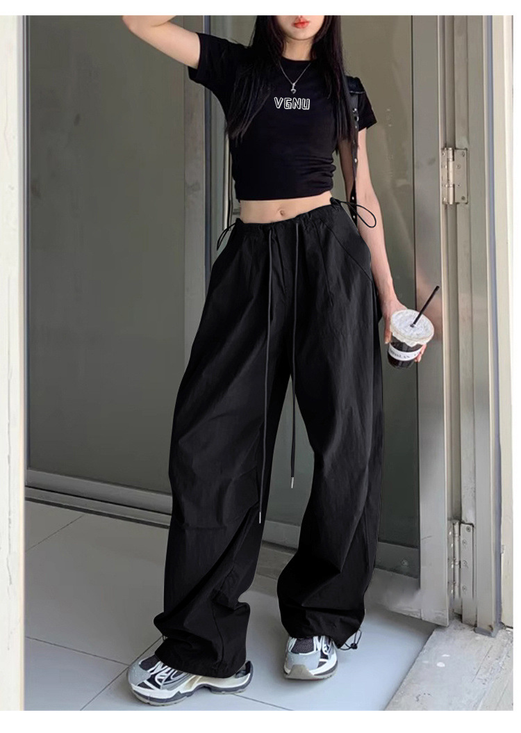 미국식 레트로 빠른 건조 낙하산 넓은 다리 키 큰 여성의 긴 길이 패션 브랜드 여름 얇은 바지스토어 가기