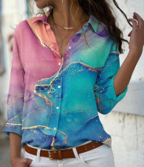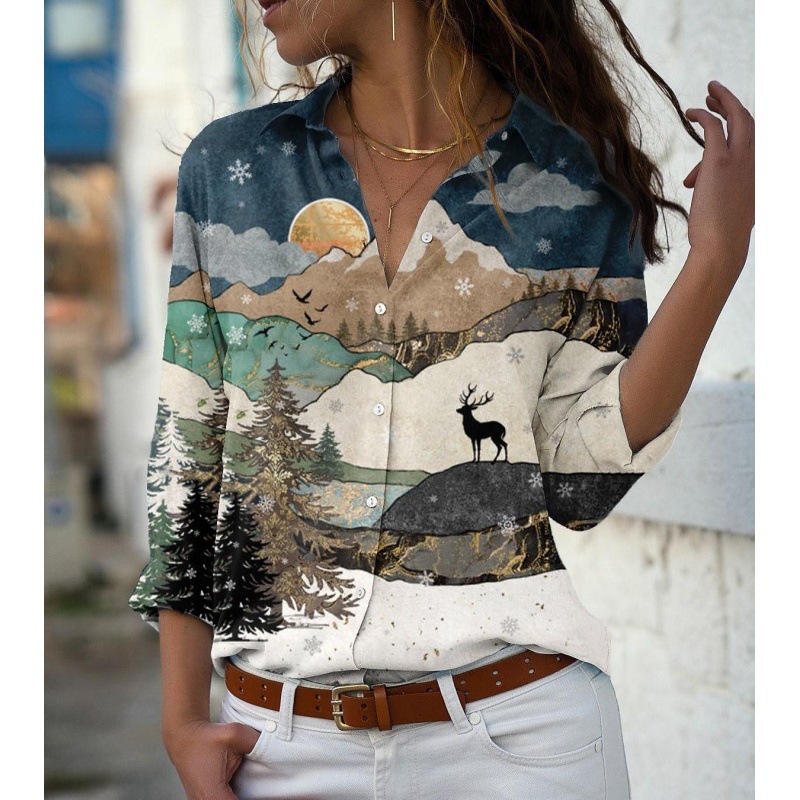 유럽과 미국 여성 긴 소매 셔츠 3D 인쇄 소스 공장 저렴한 도매 플러스 사이즈 여성 셔츠스토어 가기