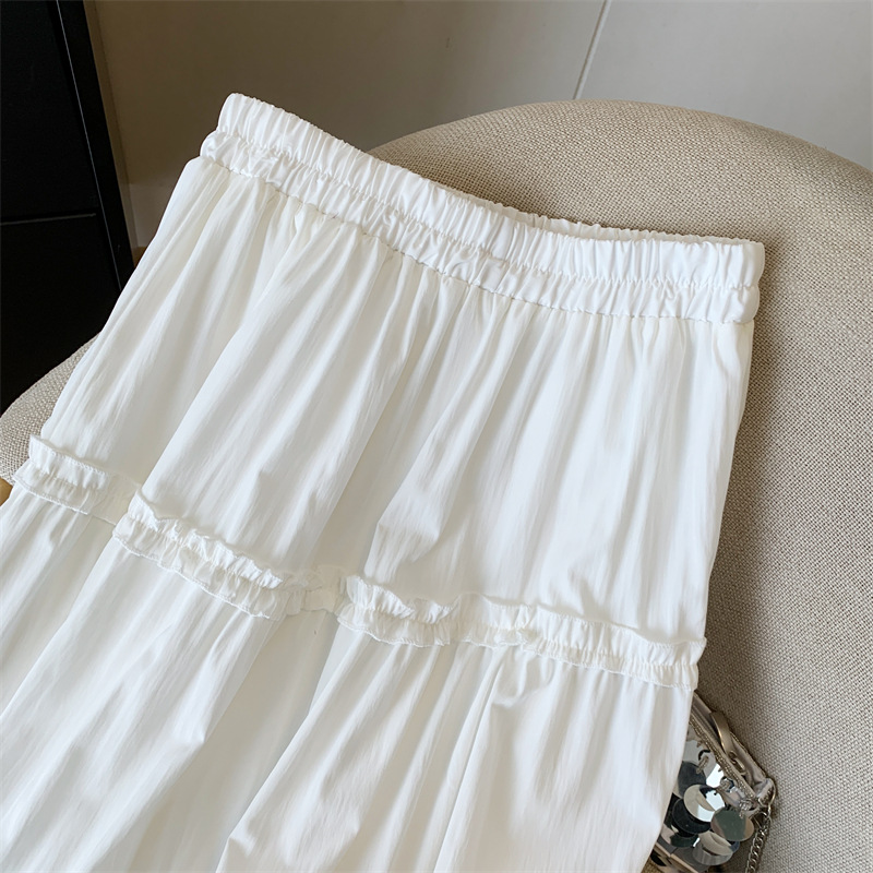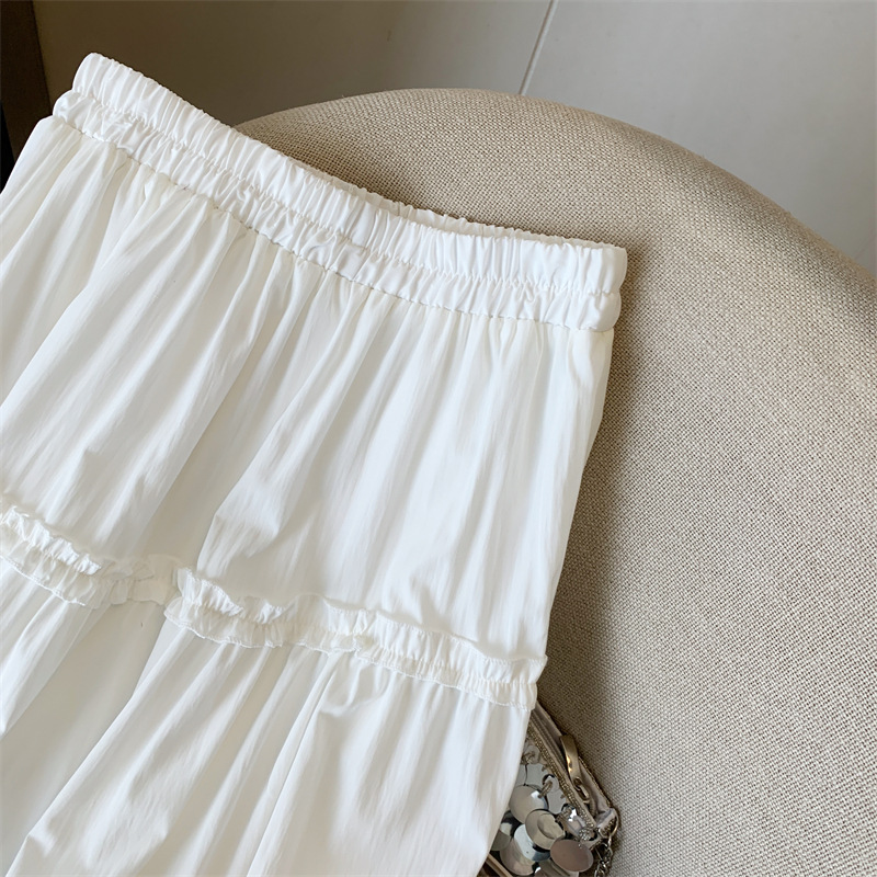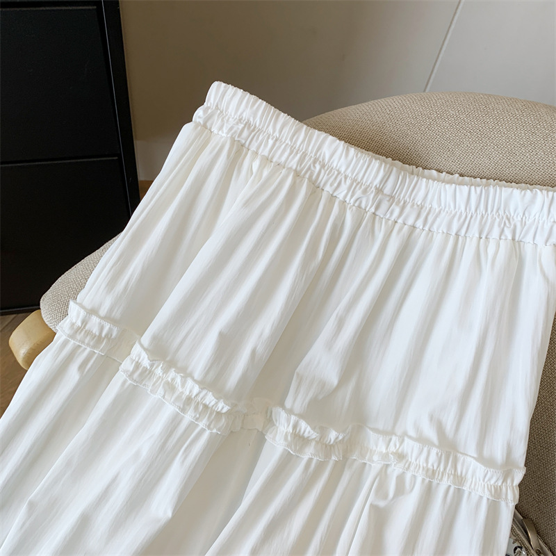 실제 샷 한국 새로운 A 라인 스커트 높은 허리 슬리밍 긴 스커트 밑단 스티칭 레이스 화이트 스커트 여성용 케이크 스커트