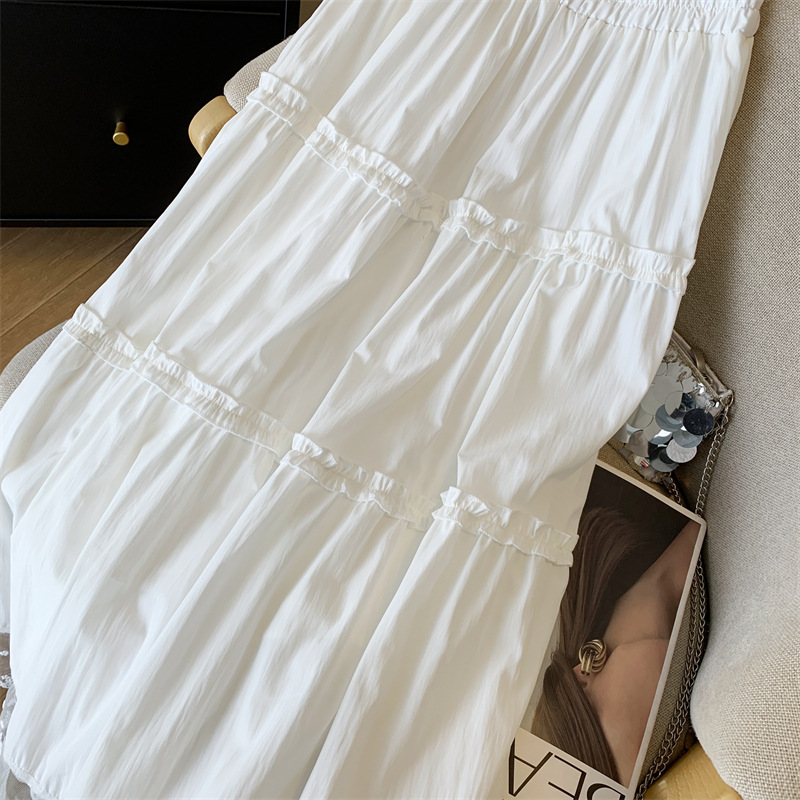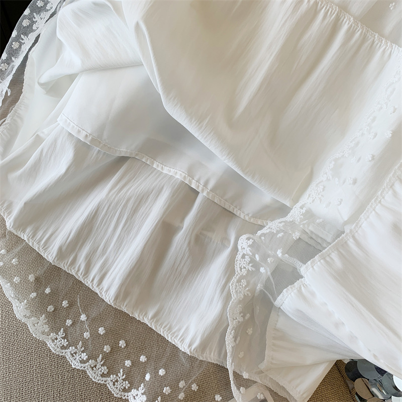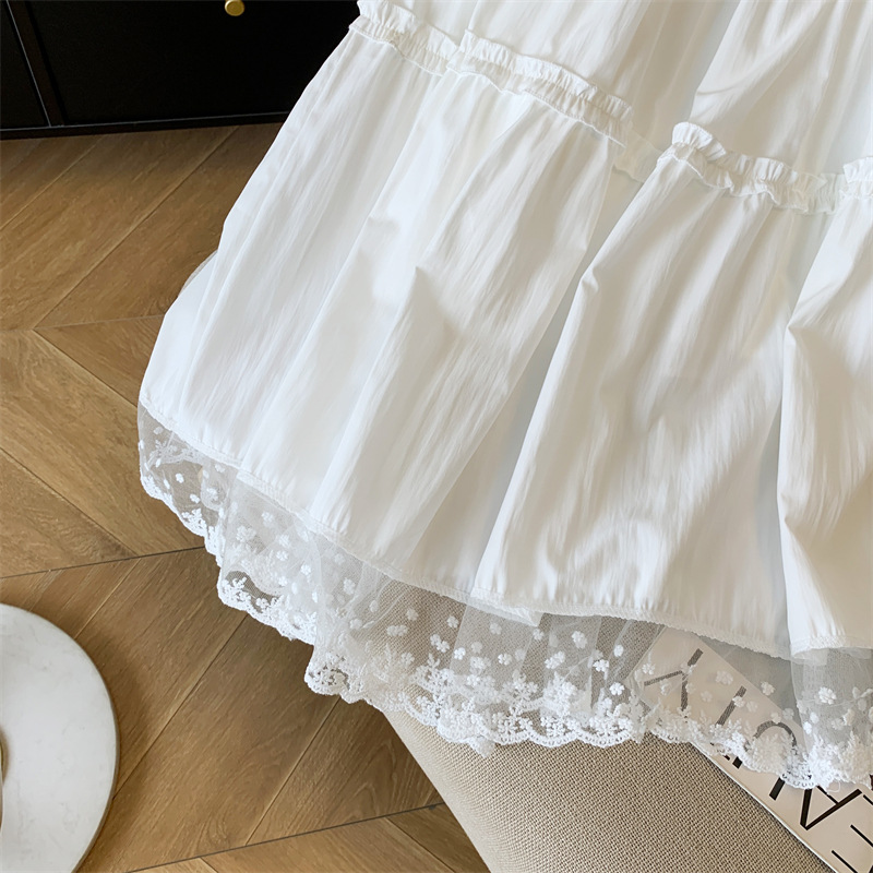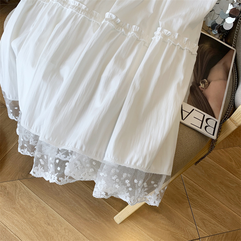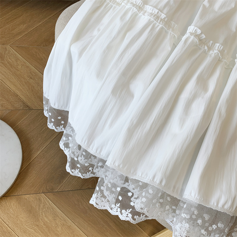 实拍 韩国新款A字裙高腰显瘦长裙下摆拼接蕾丝白色半身裙女蛋糕裙