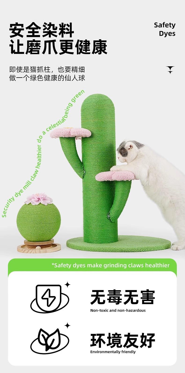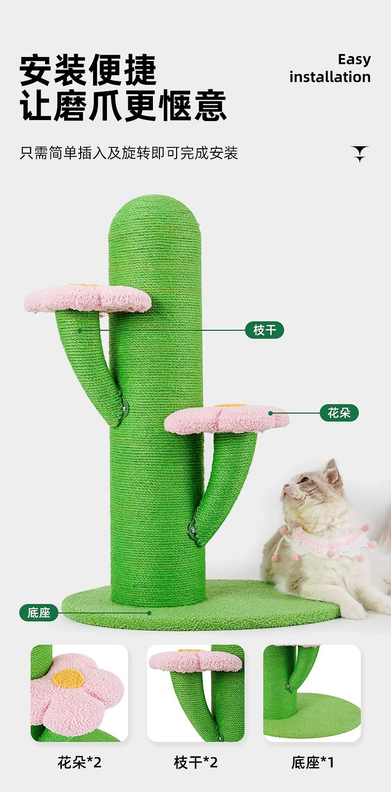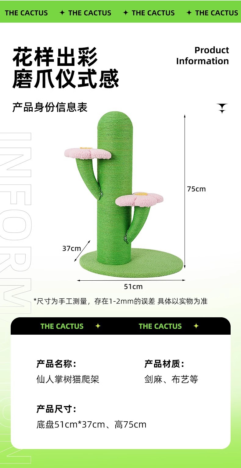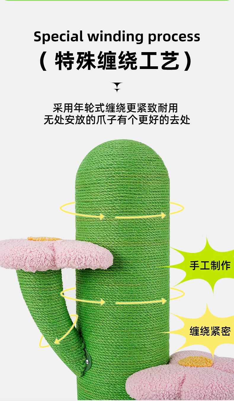 선인장 고양이 클라이밍 프레임, 고양이 스크래치 컬럼, 고양이 장난감, 수면 및 클라이밍 프레임, 긁힘 방지 및 부스러기 없는 발톱 연삭 도구