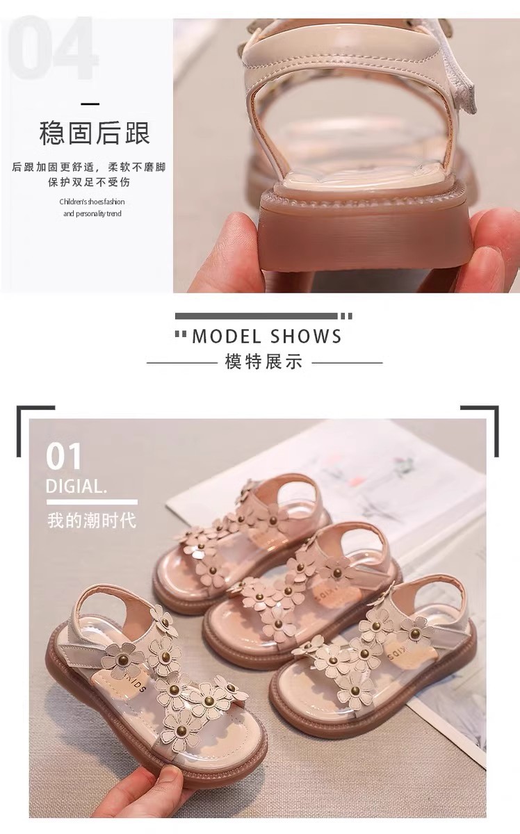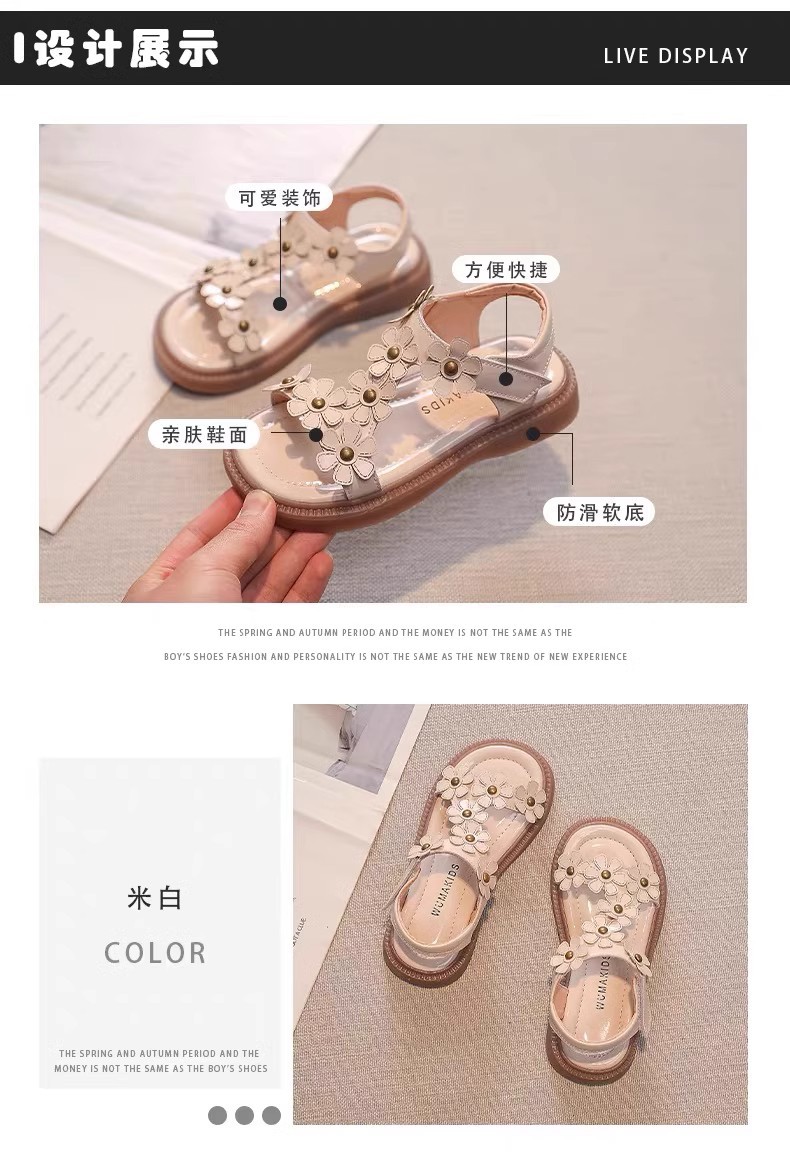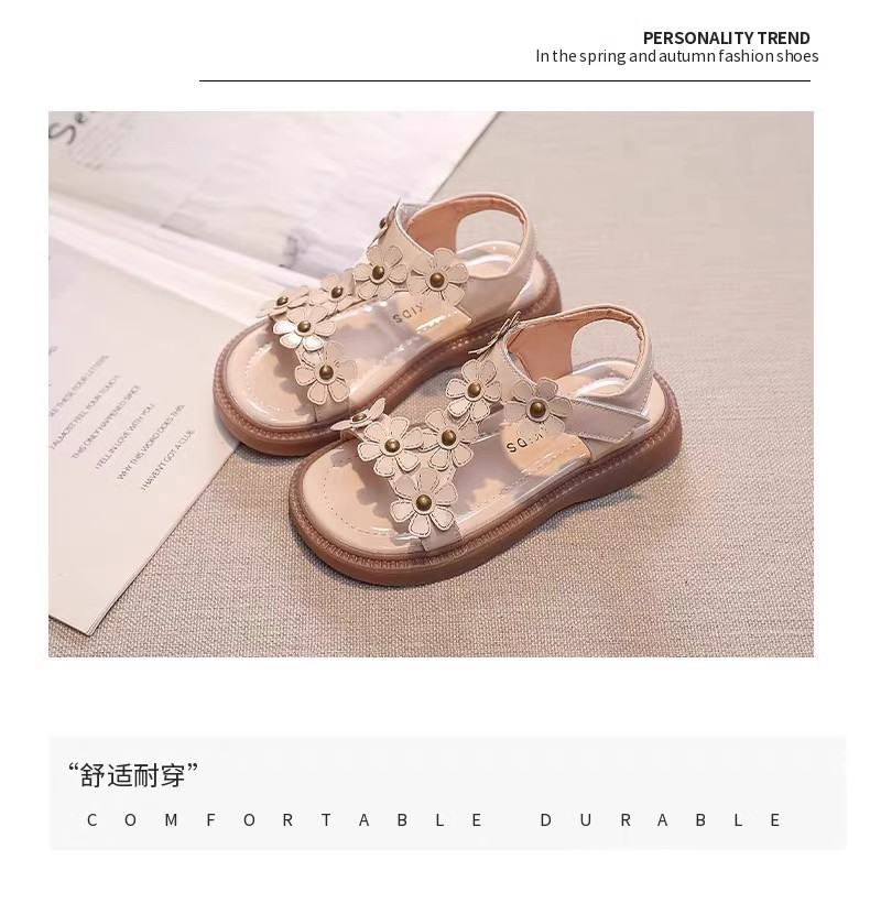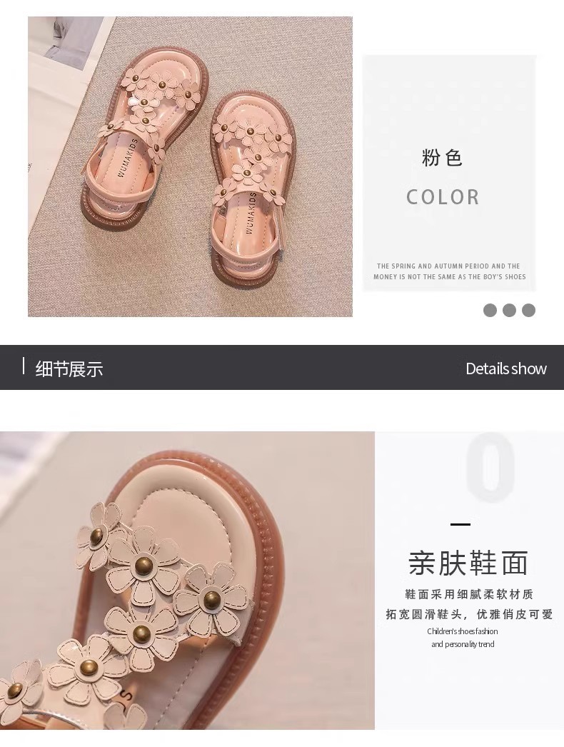 여자 샌들 2025 여름 새로운 한국 스타일 꽃 퍼포먼스 신발 다목적 공주 어린이 신발 라운드 발가락 공주 스타일스토어 가기