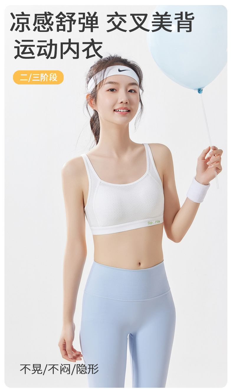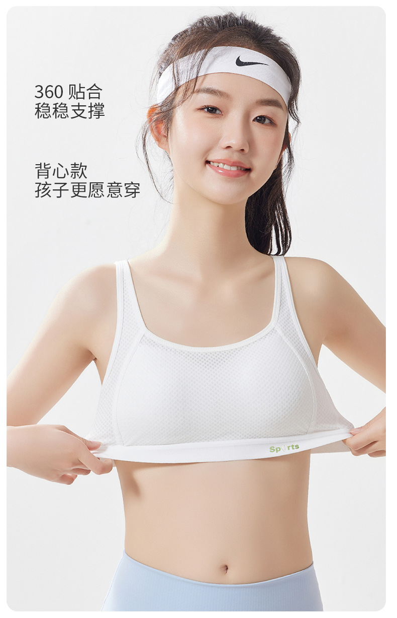 여아 브라 속옷 사춘기 중학생 조끼 속옷 충격 방지 얇은 메쉬 고정 컵 스포츠 브라