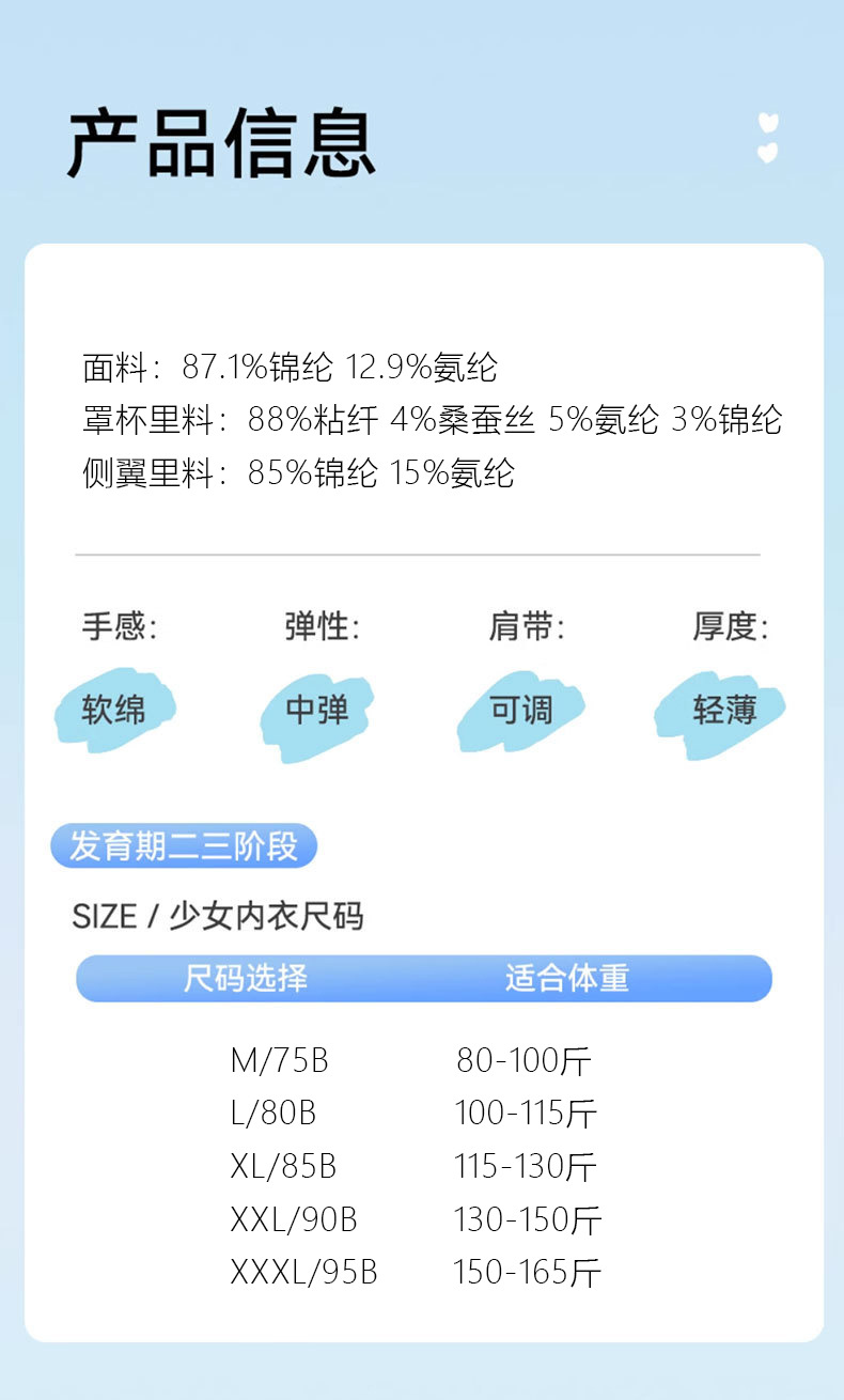 여아 브라 속옷 사춘기 중학생 조끼 속옷 충격 방지 얇은 메쉬 고정 컵 스포츠 브라스토어 가기
