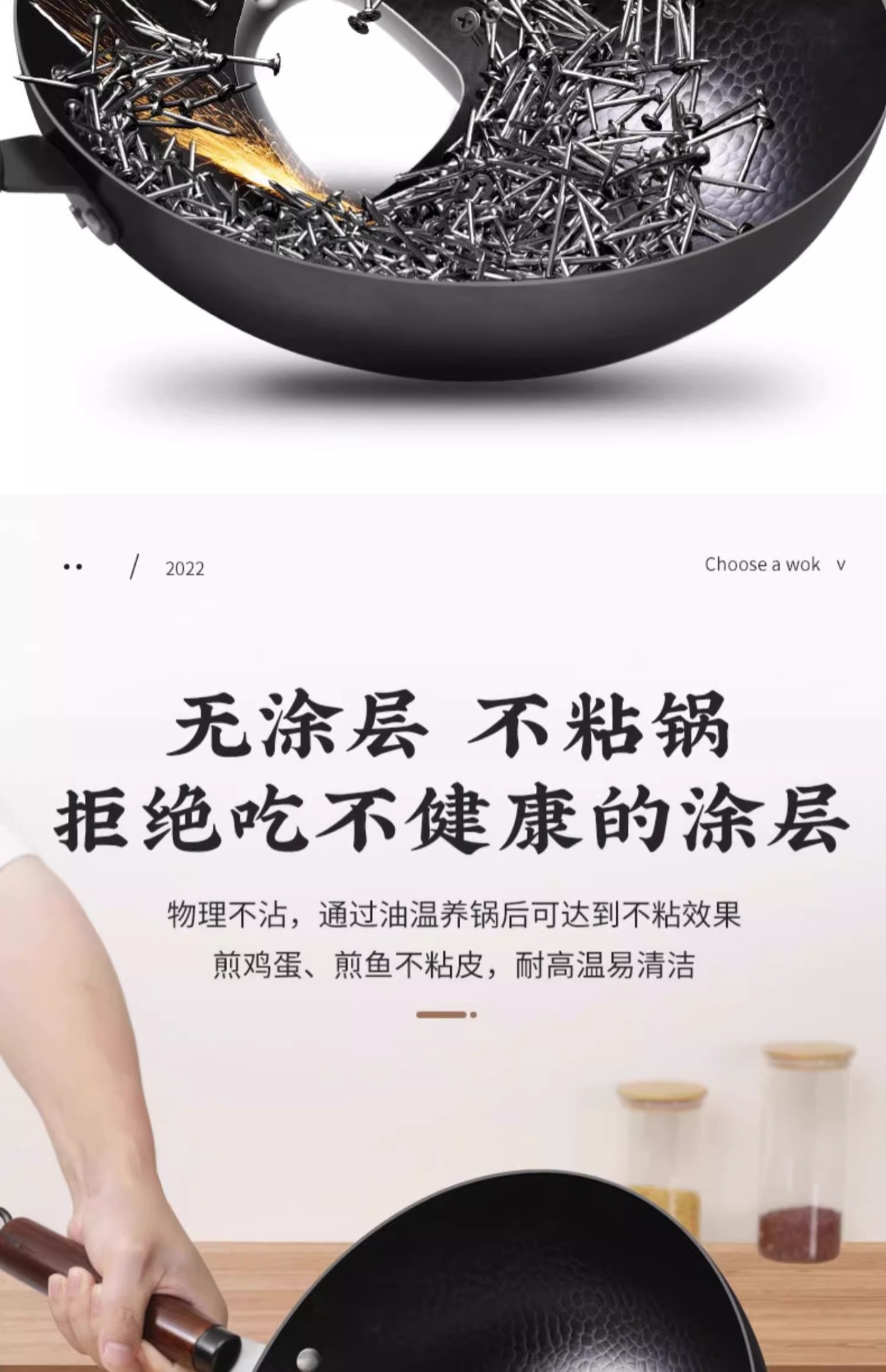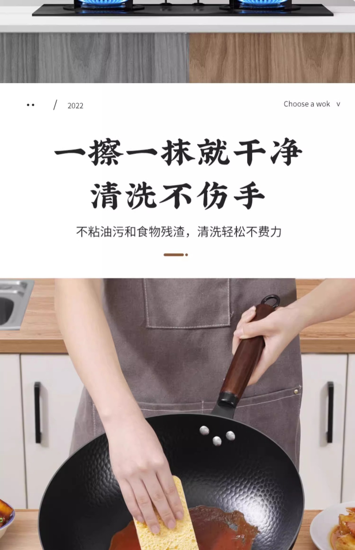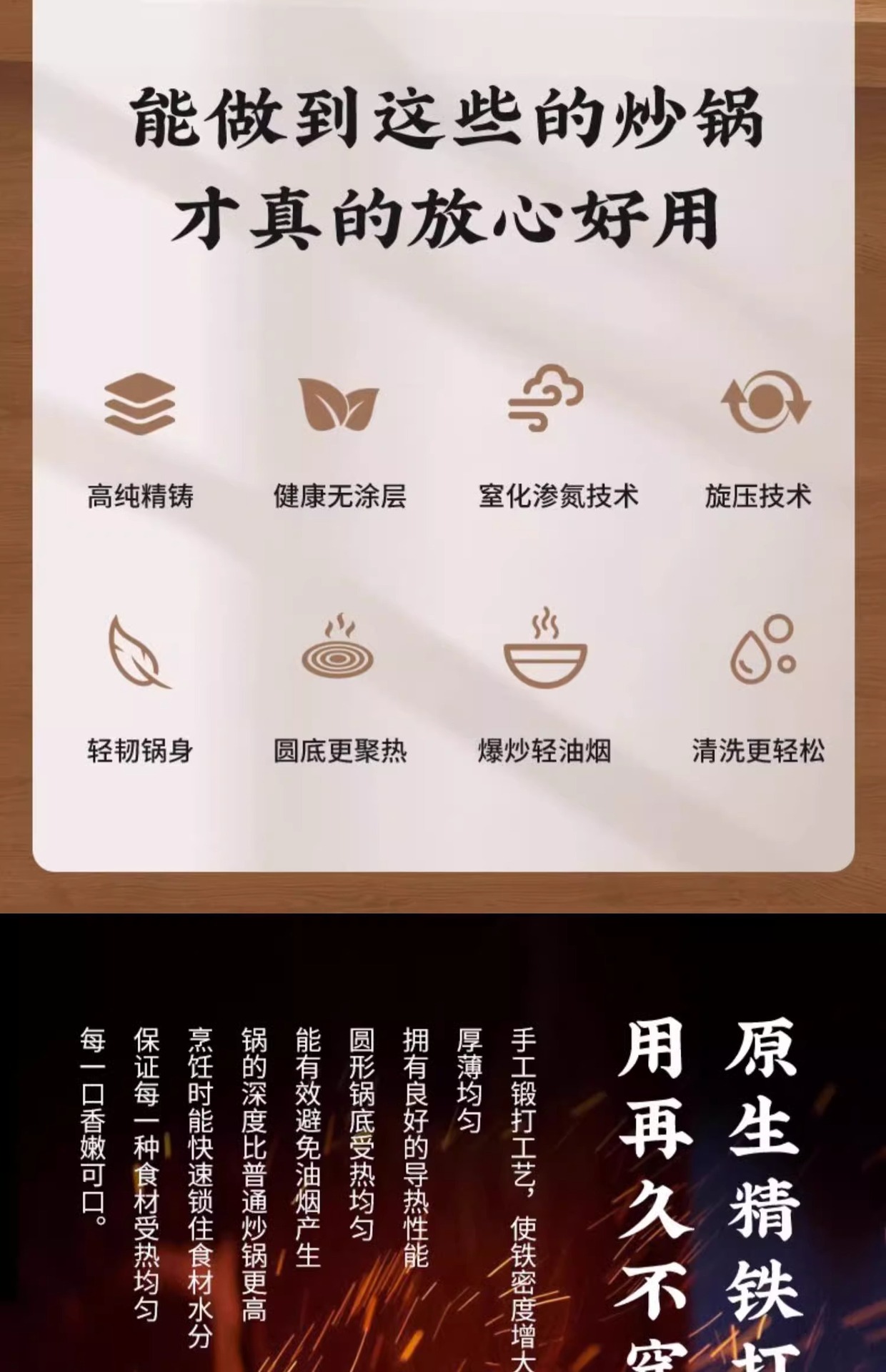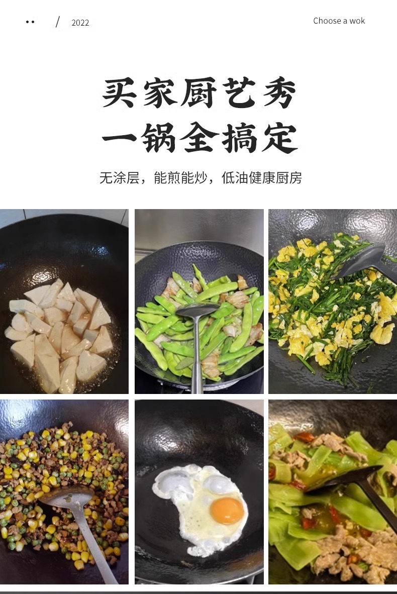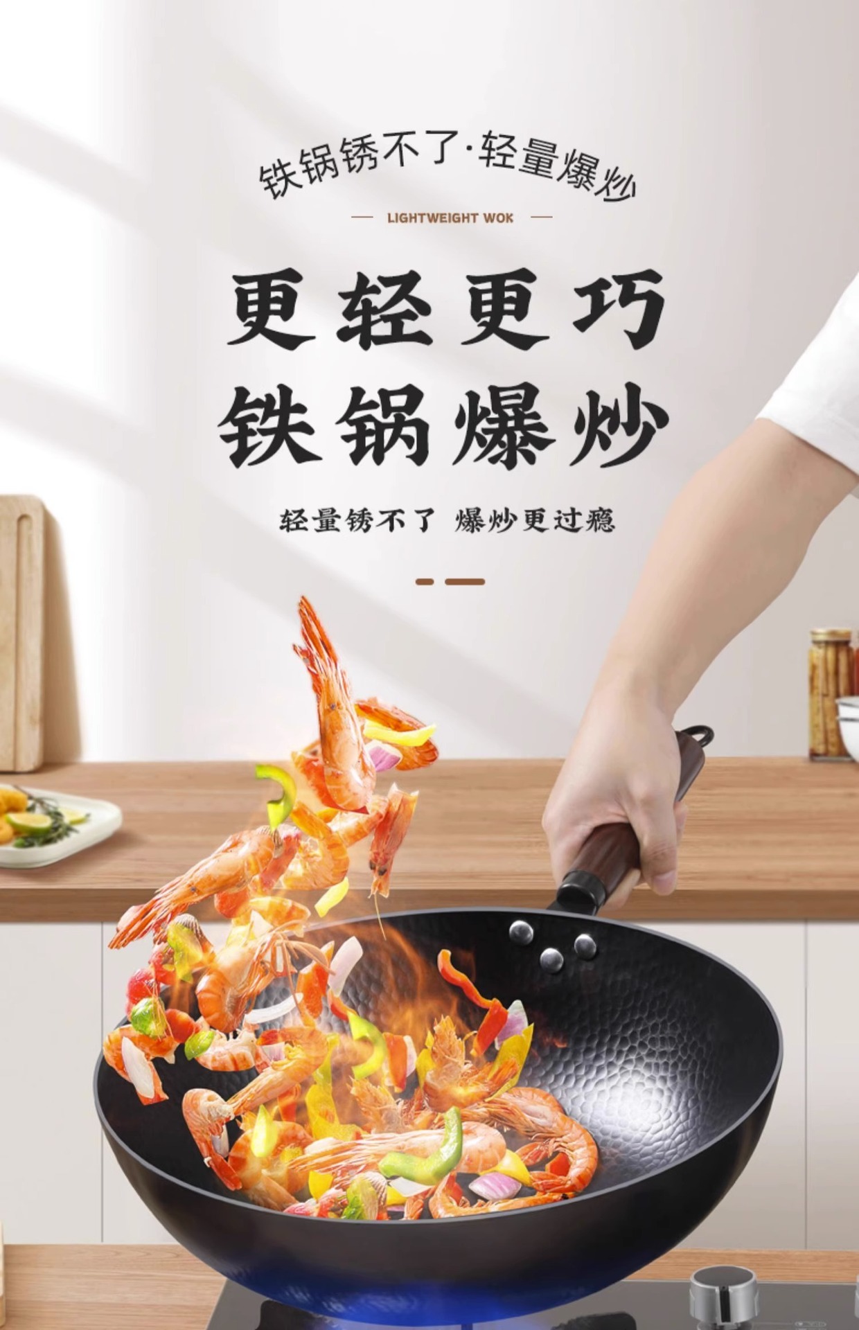 Zhangqiu의 요리 냄비, 붙지 않는 냄비, 가정용 전자레인지 전용 전통 플래그십 철 냄비, 코팅되지 않은 평평한 바닥