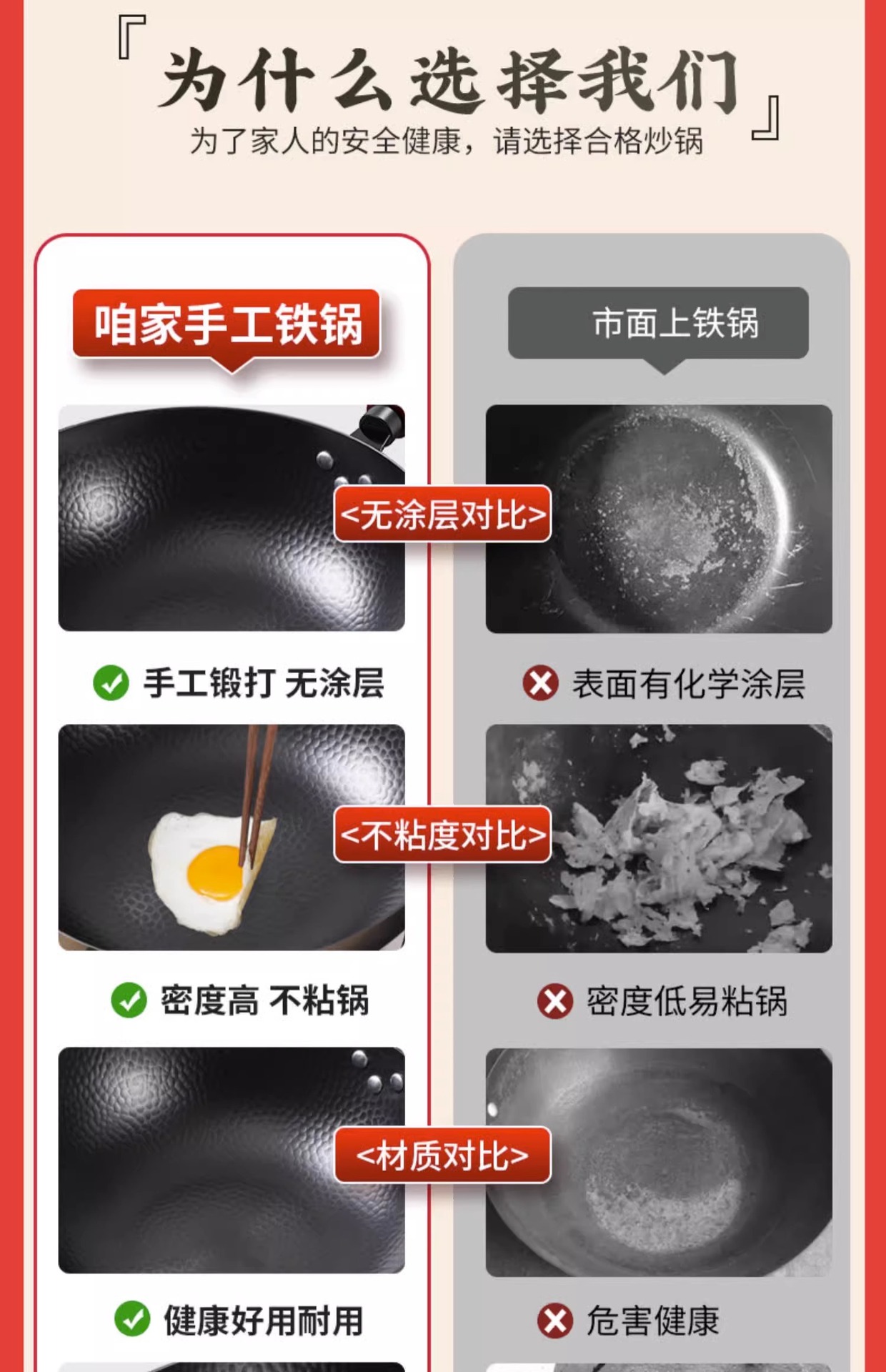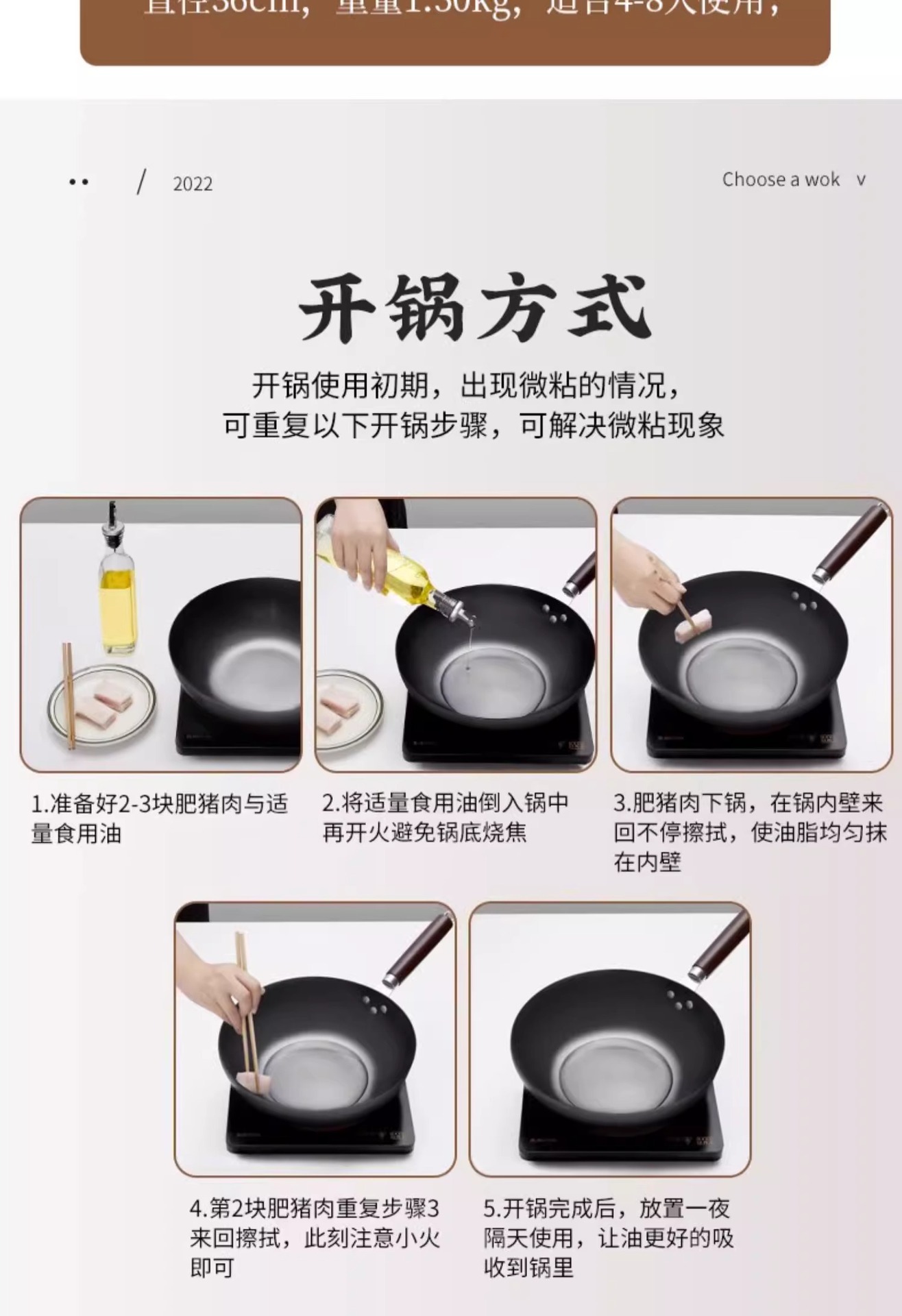 Zhangqiu의 요리 냄비, 붙지 않는 냄비, 가정용 전자레인지 전용 전통 플래그십 철 냄비, 코팅되지 않은 평평한 바닥스토어 가기