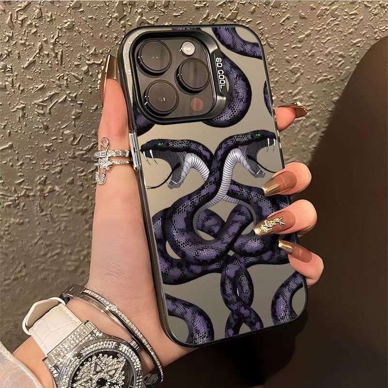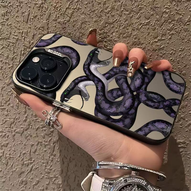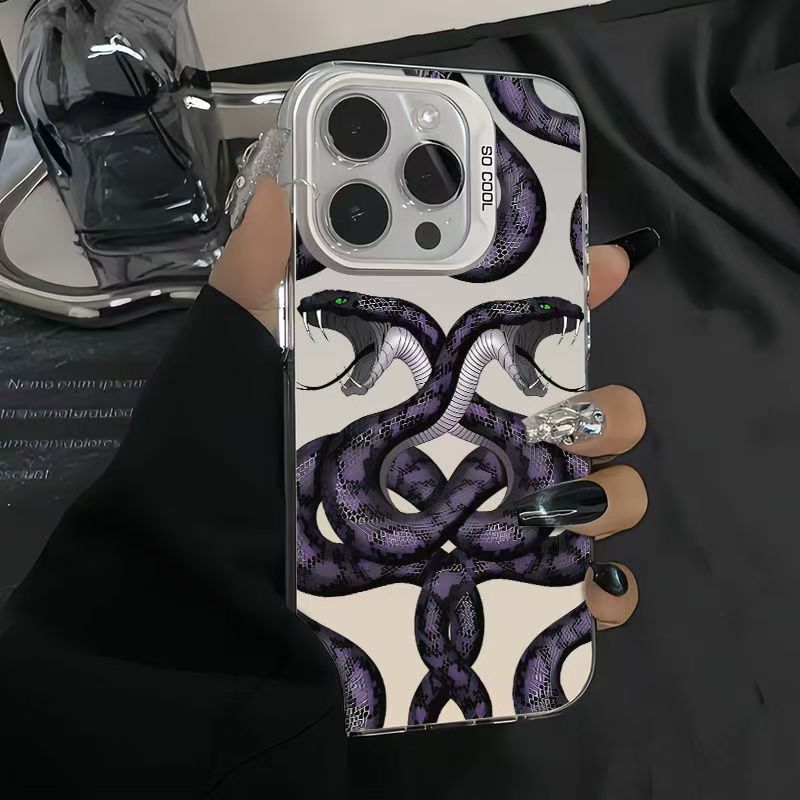 애플 16/15/14pro 전화 케이스 15 promax13/12/11X 유럽과 미국에 대한 보라색 더블 뱀 컬러 실버 케이스