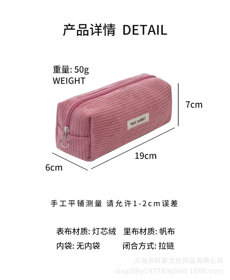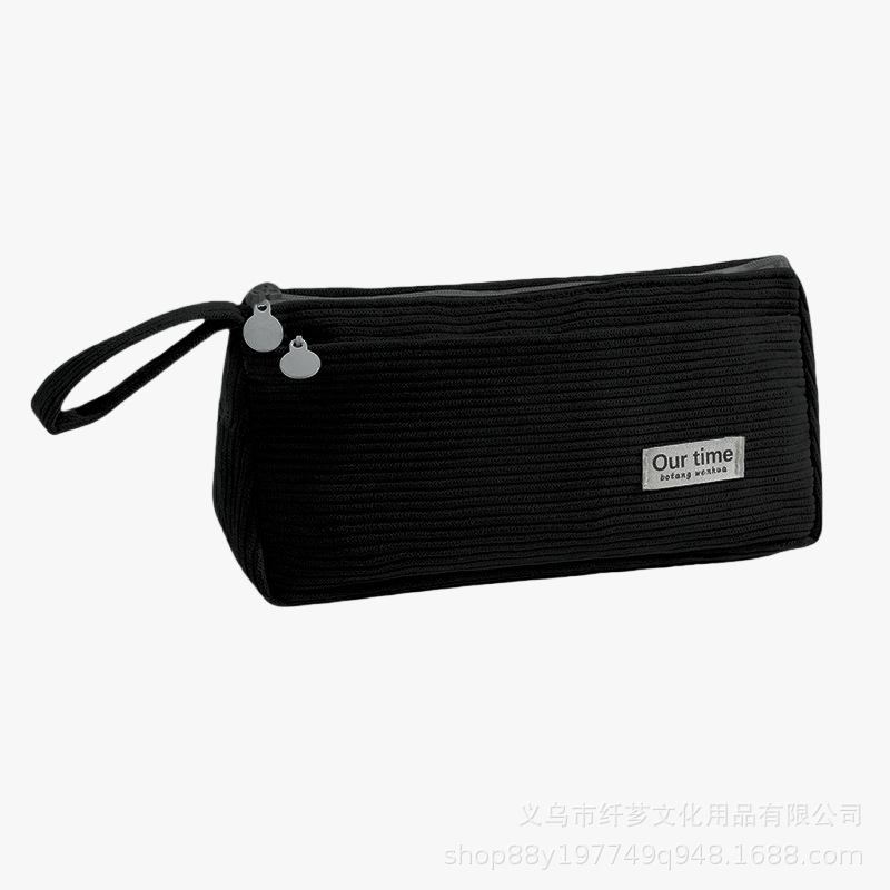 새로운 솔리드 컬러 레트로 코듀로이 연필 케이스 간단한 대용량 학생 문구 보관 가방 휴대용 립스틱 화장품 가방