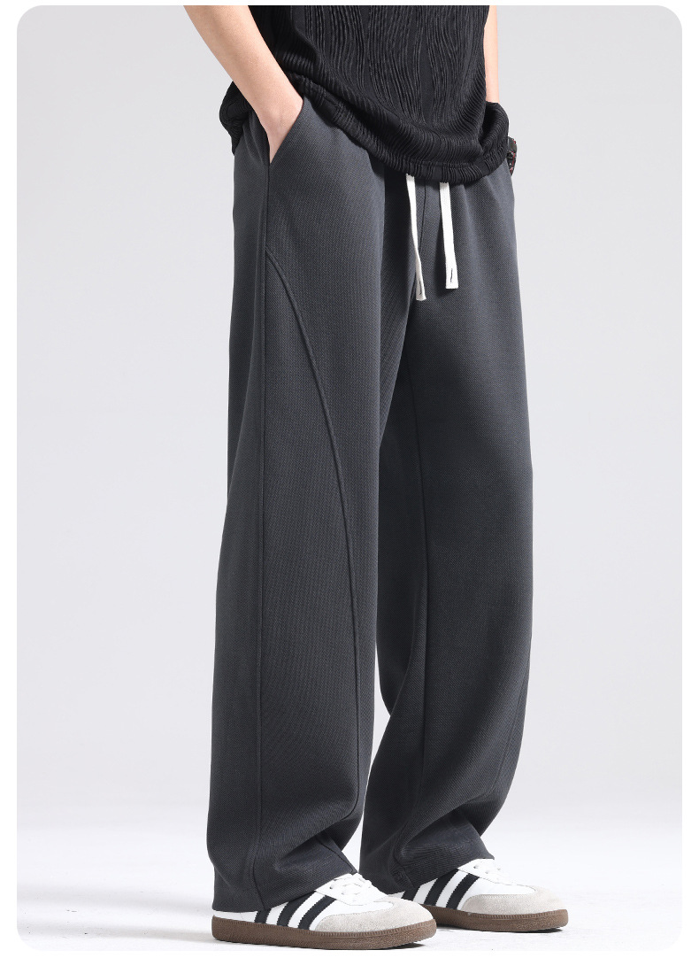 2025 신상 겨울 벨트 팬츠 와이드 레그 스포츠 팬츠 루즈핏 스트레이트 롱 팬츠 기모 스웨트팬츠 남성 캐주얼 팬츠