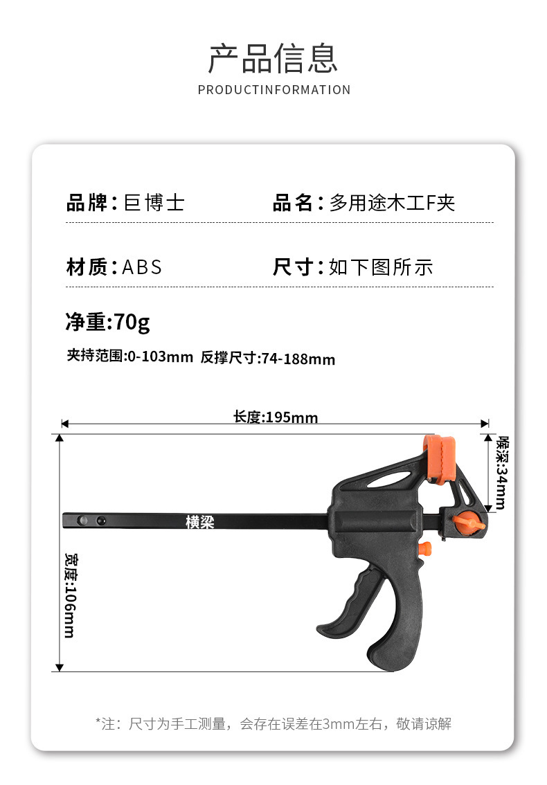 반지지 고정 F 클립 트리거 유형 양방향 고속 미니 목공 클립 나일론 F 클립 목재 보드 고정 클립 고속 클램프스토어 가기
