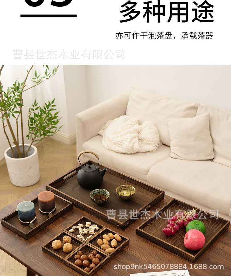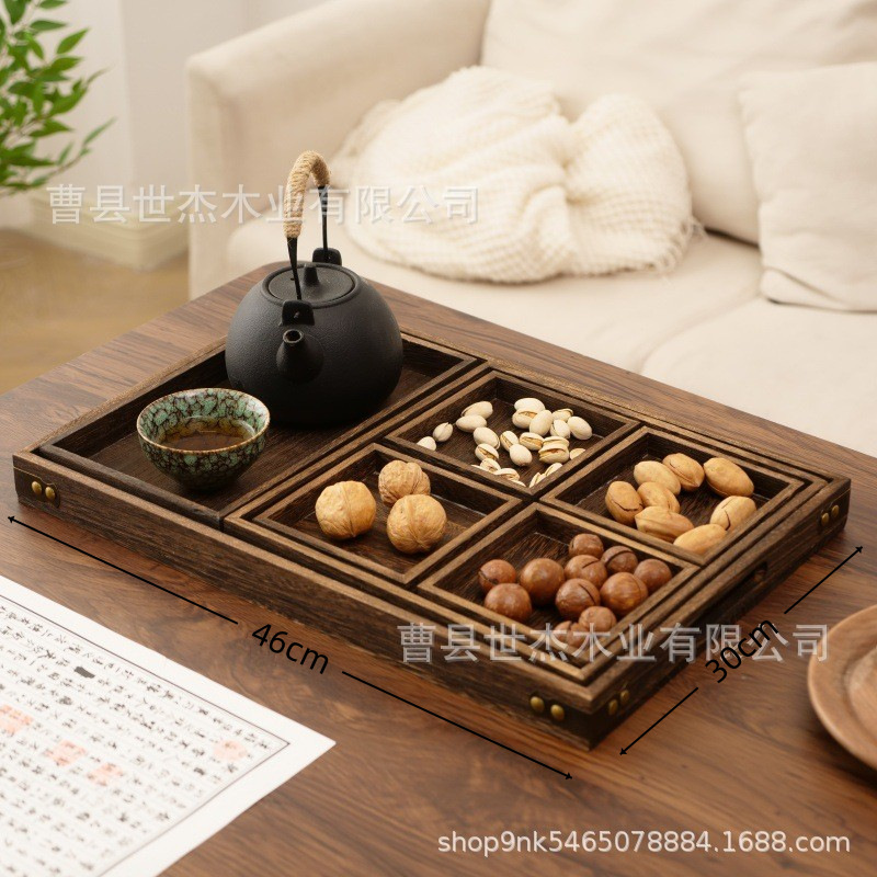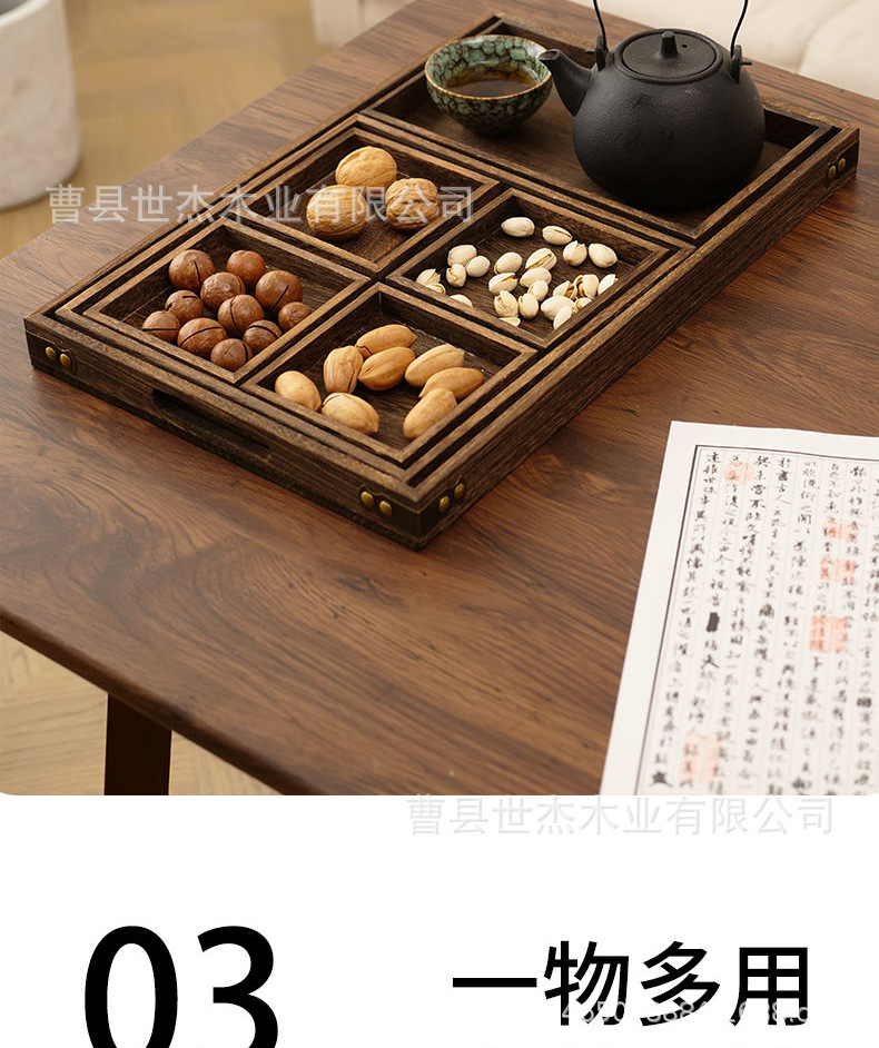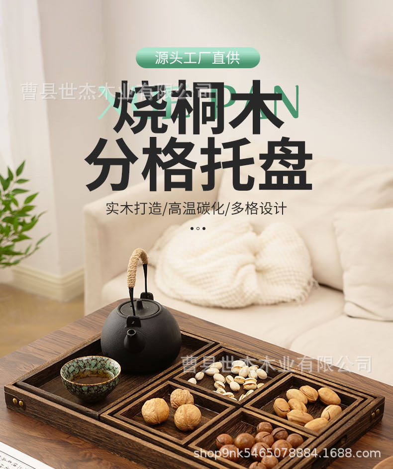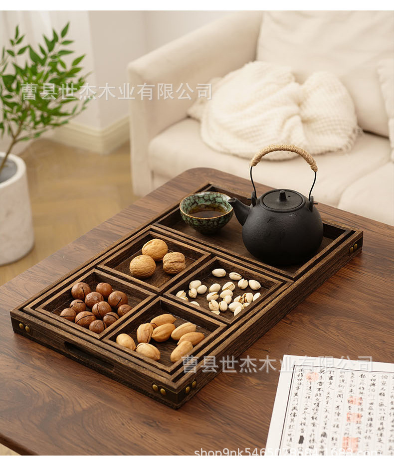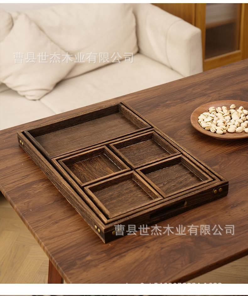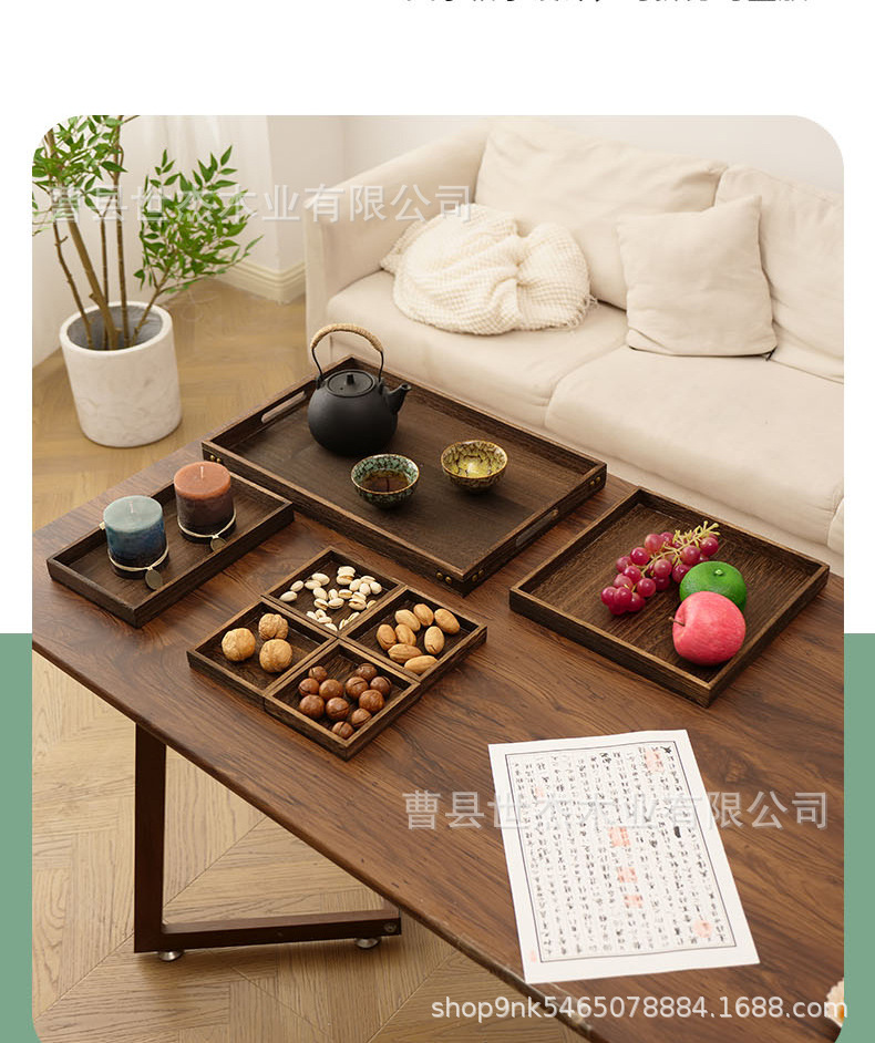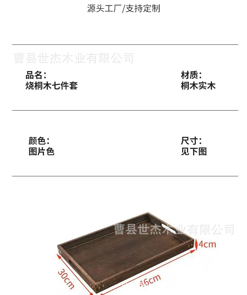 단단한 나무 티 트레이, 오동나무 색상 차 세트, 가정용 선티 나무 7피스 트레이스토어 가기