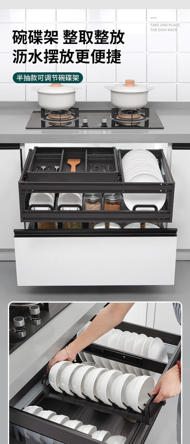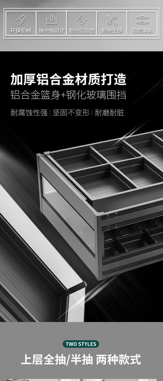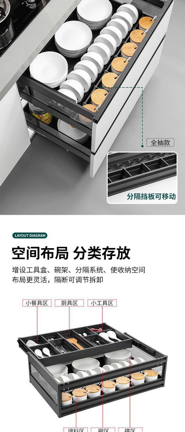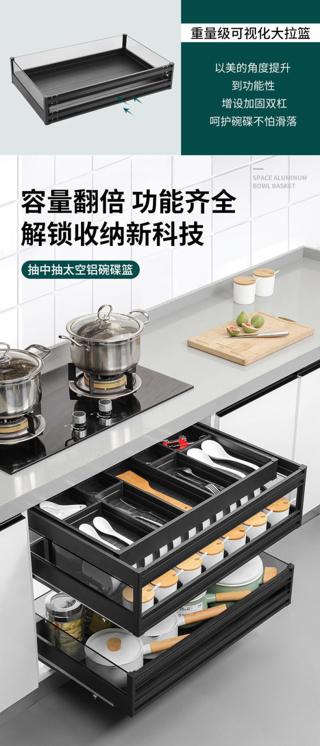 YS 부엌 캐비닛 풀 바구니 서랍 유형 3 층 접시 랙 알루미늄 합금 풀 바구니 공간 알루미늄 펌핑 저장 작업자스토어 가기