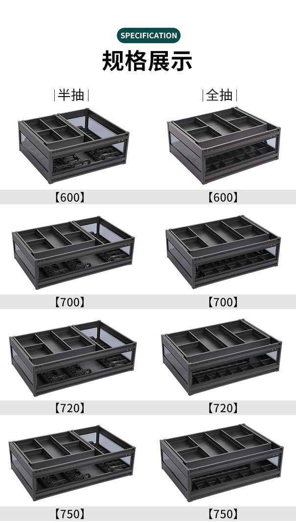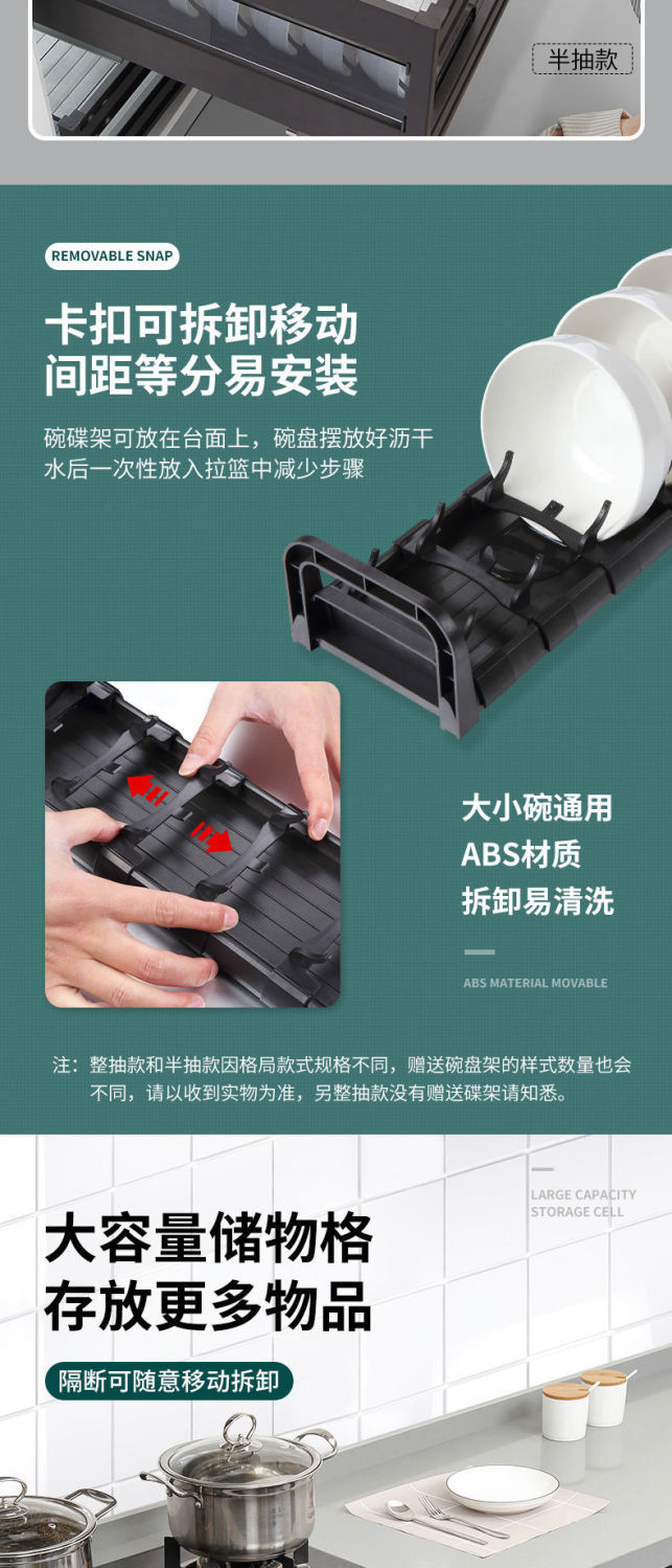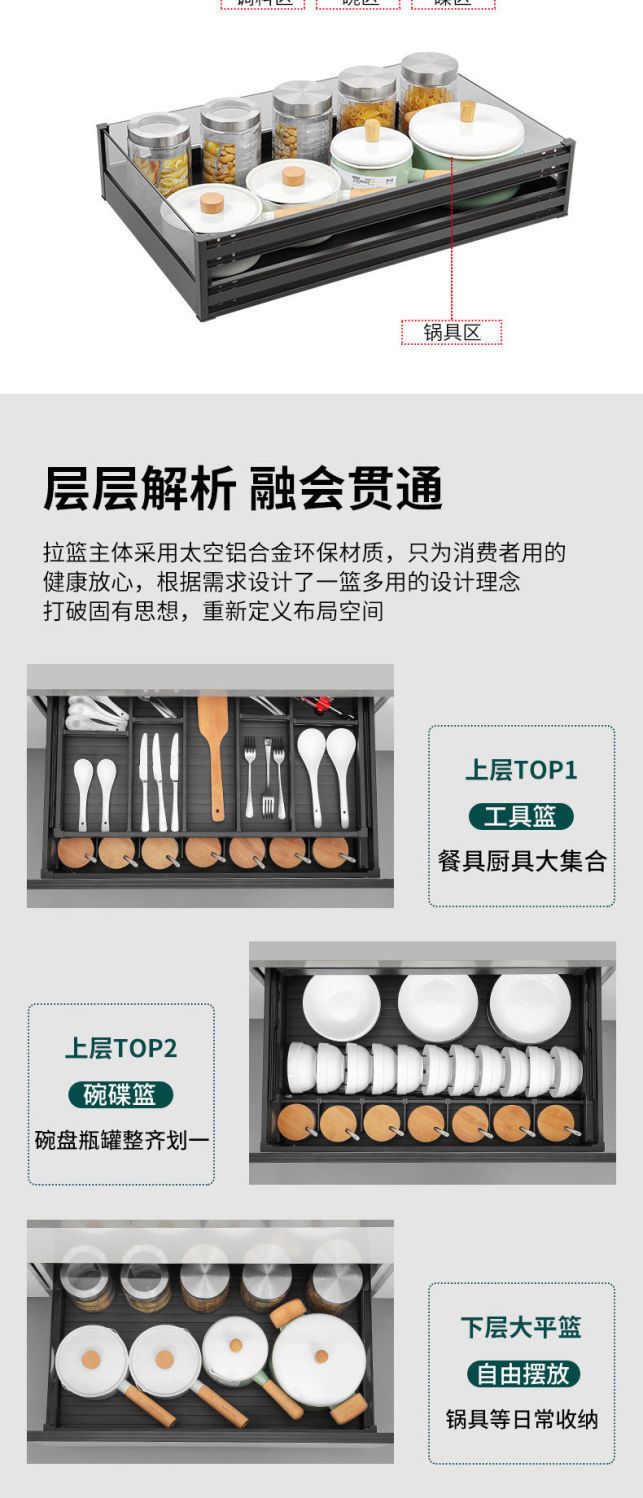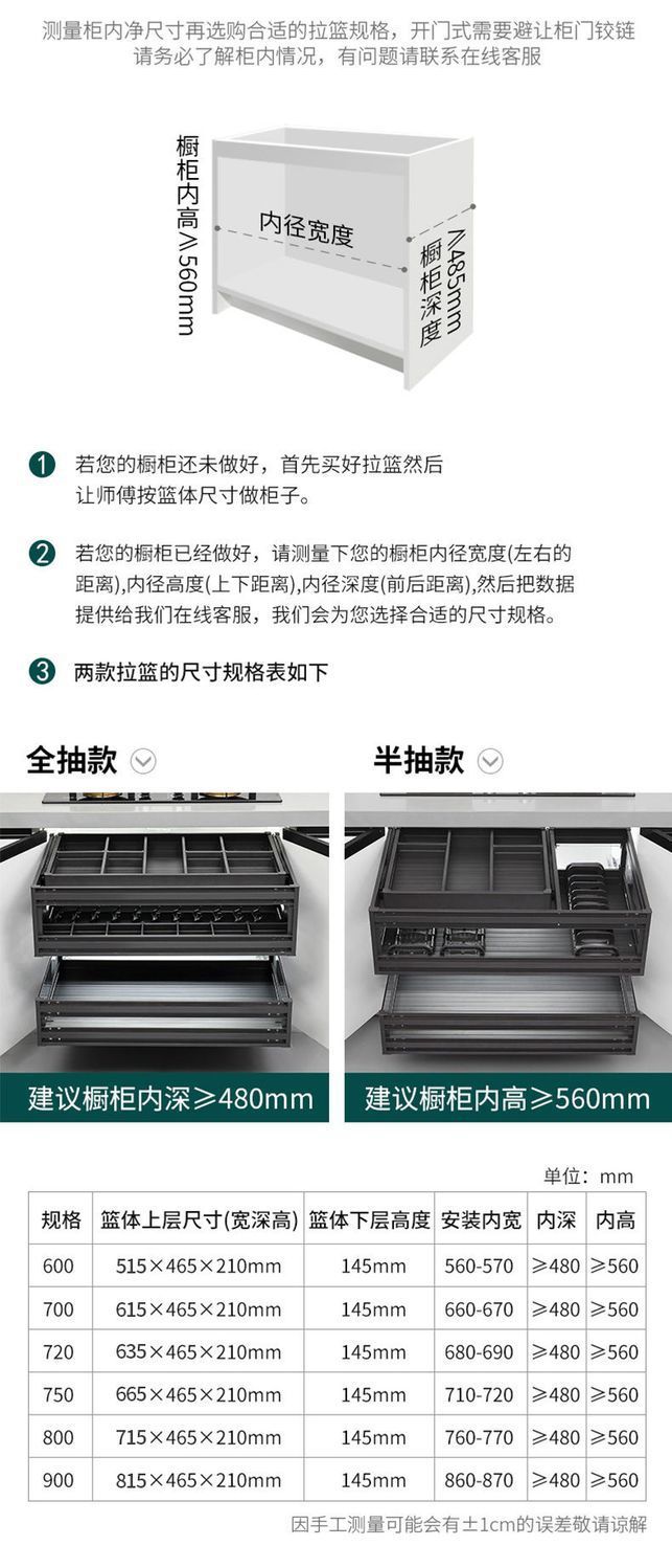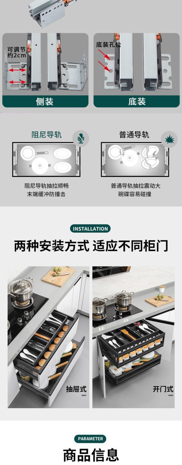 YS 부엌 캐비닛 풀 바구니 서랍 유형 3 층 접시 랙 알루미늄 합금 풀 바구니 공간 알루미늄 펌핑 저장 작업자스토어 가기