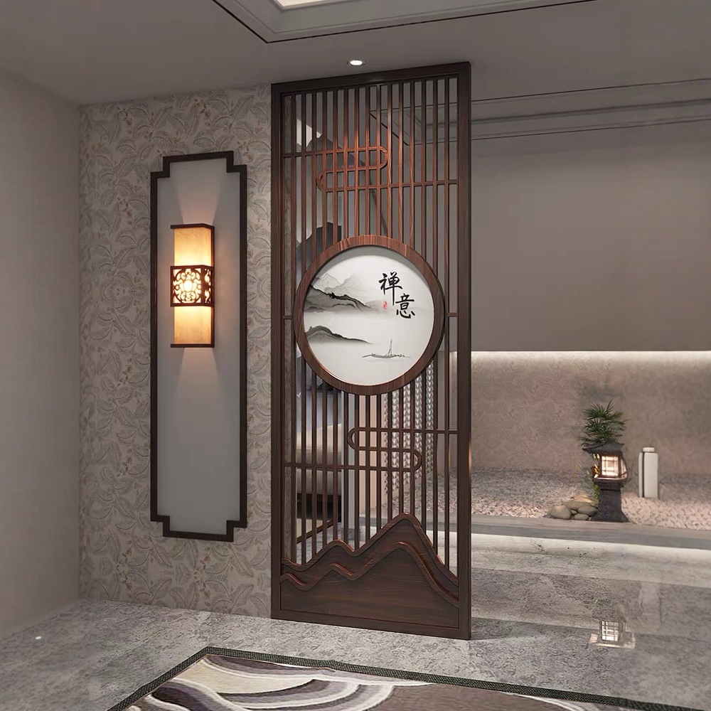 신중국풍 스크린 파티션 원목 격자문 현관 거실 입구 사무실 공간 분리 맞춤 제작스토어 가기