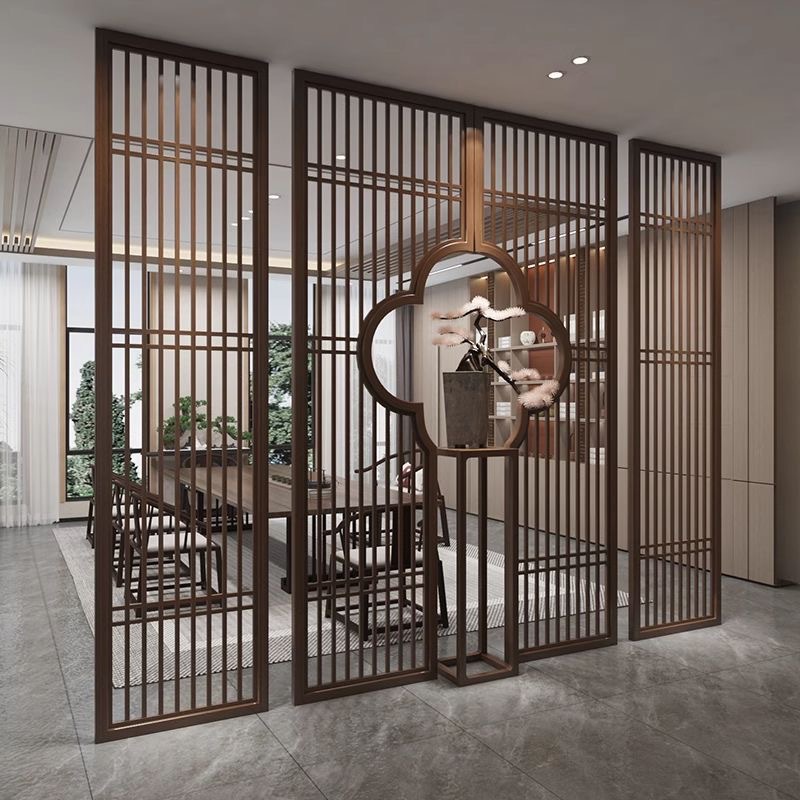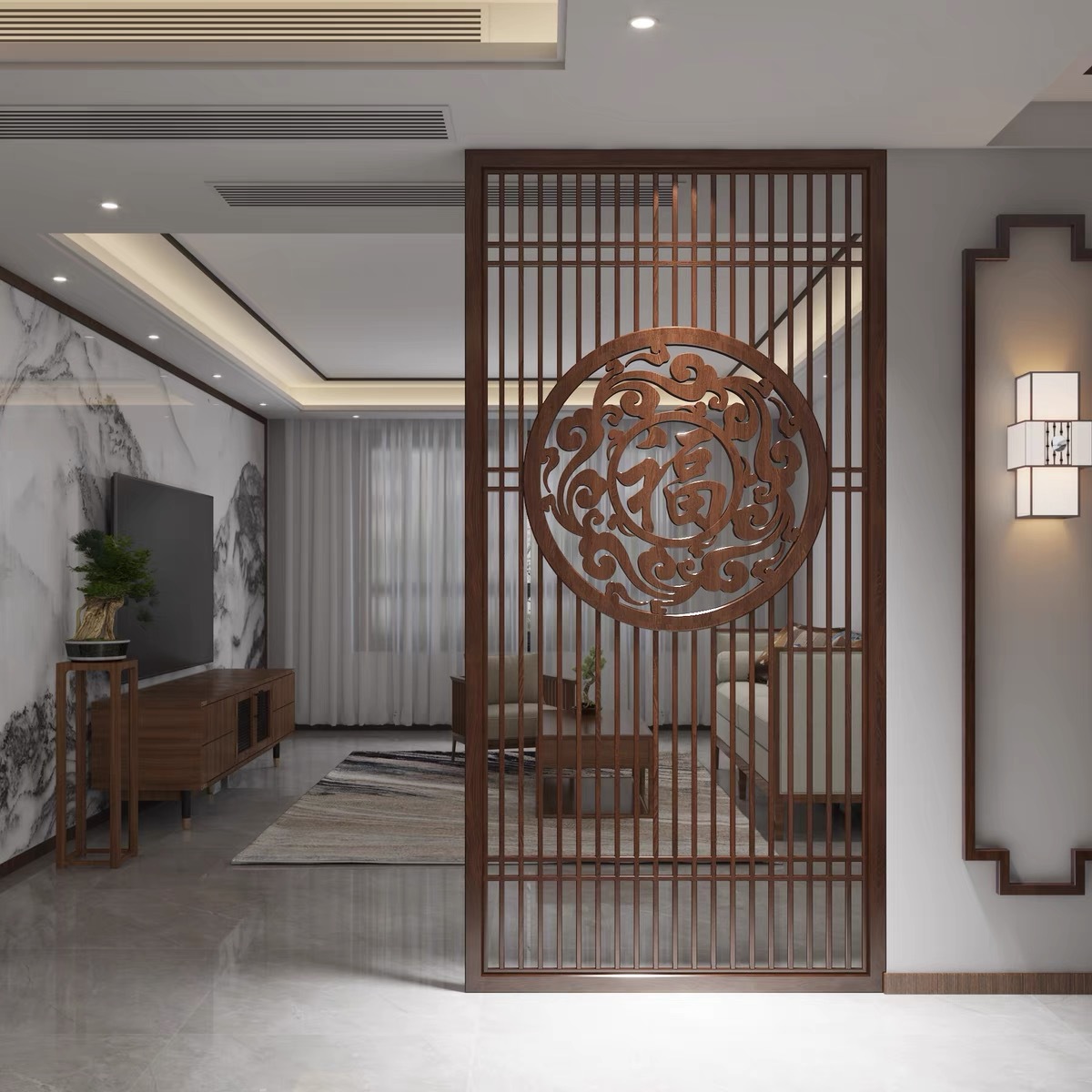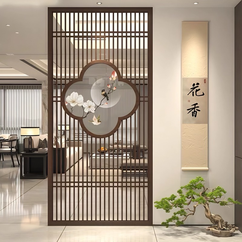 신중국풍 스크린 파티션 원목 격자문 현관 거실 입구 사무실 공간 분리 맞춤 제작