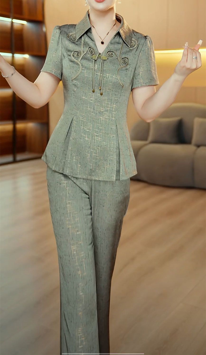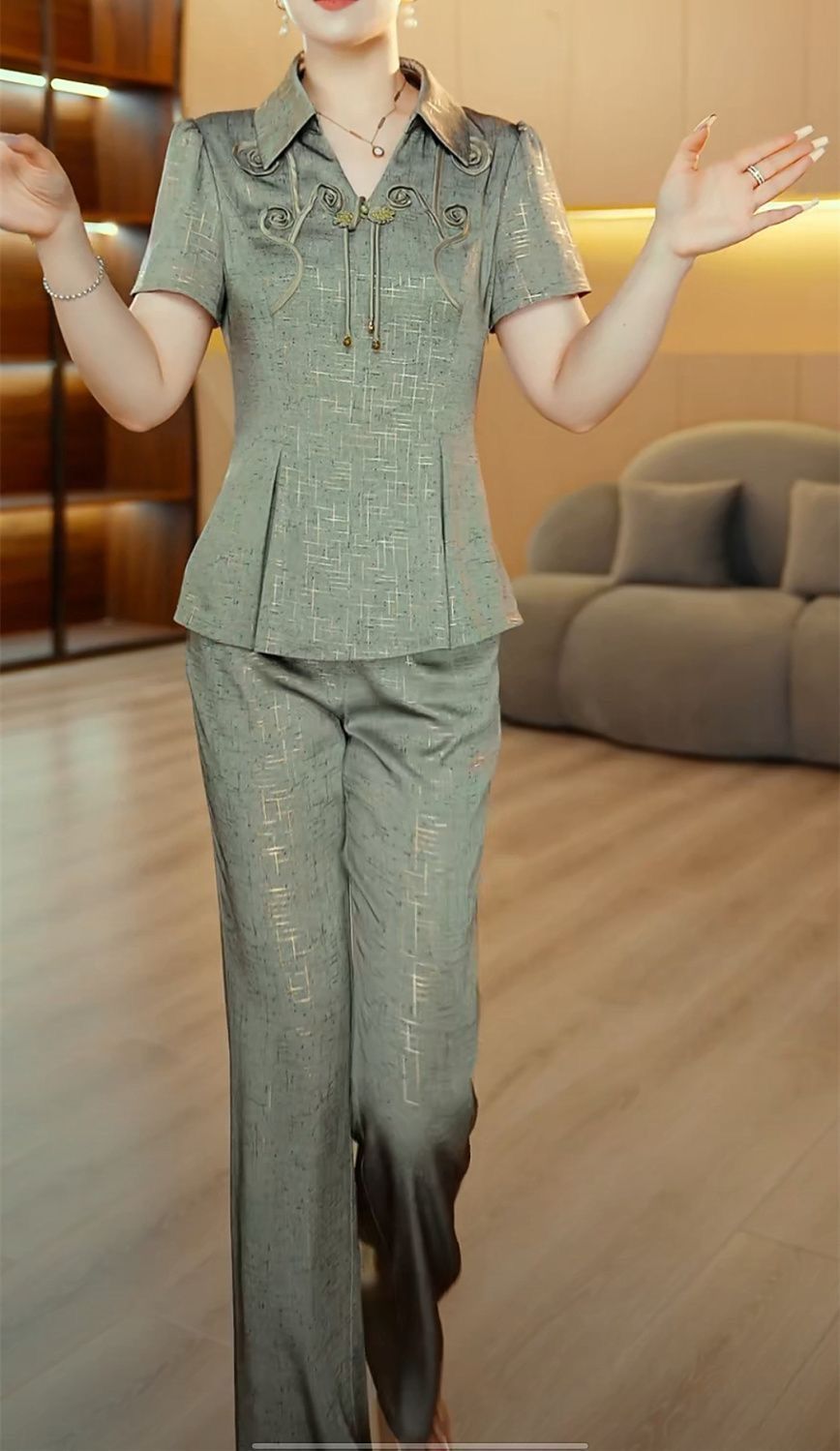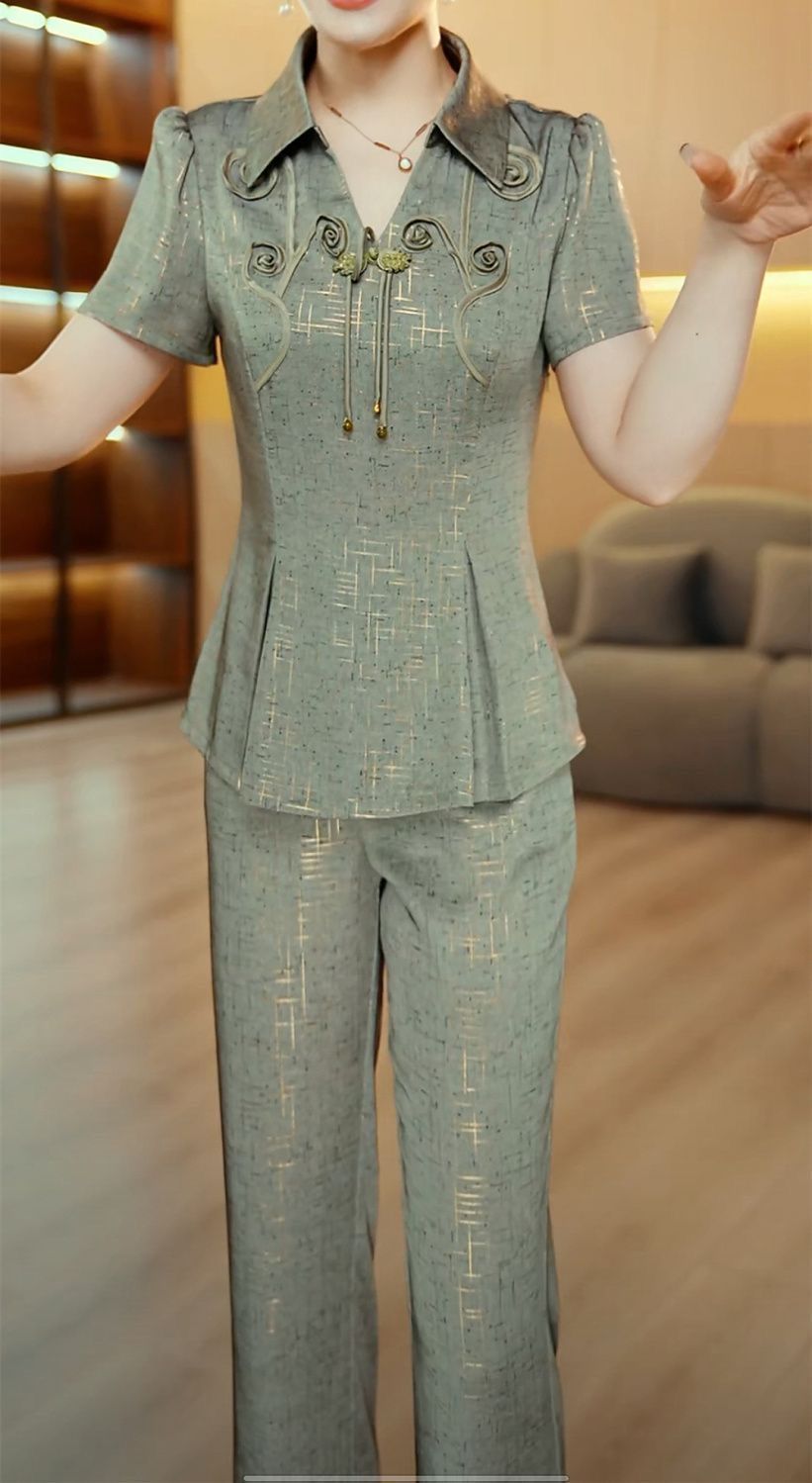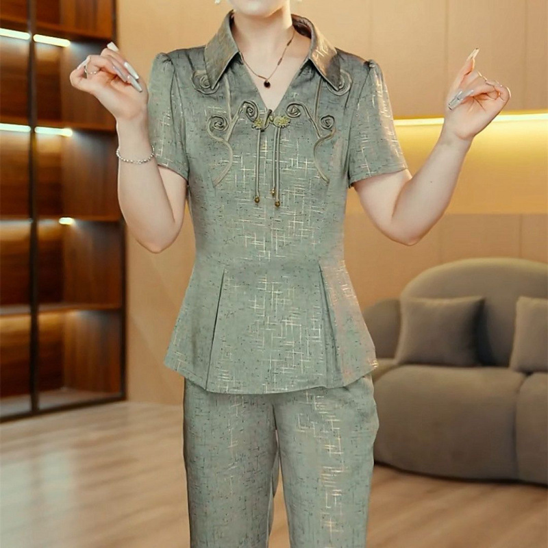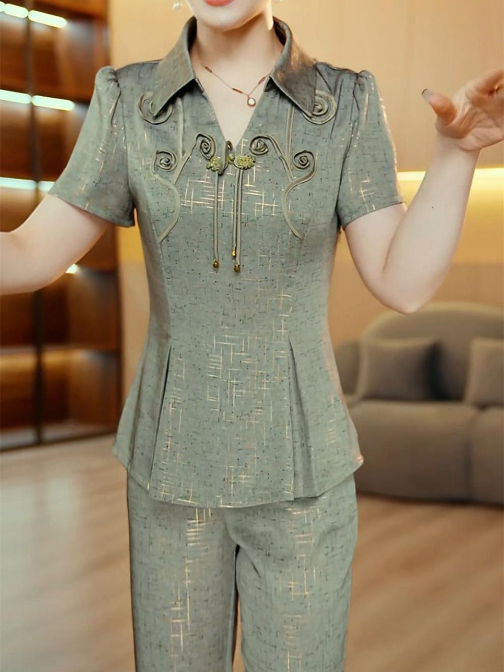 새로운 중국 스타일 국가 스타일 투피스 세트 2025 여름 새로운 슬림 핏 슬리밍 살을 가리는 얇은 패셔너블 라이트 럭셔리 세트 여성 여름