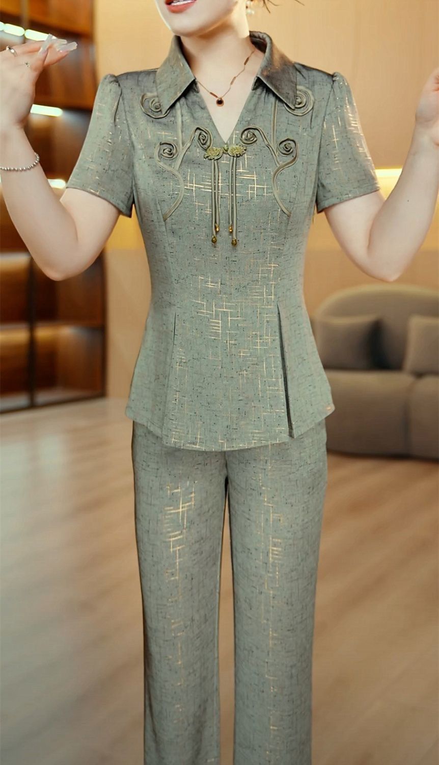 새로운 중국 스타일 국가 스타일 투피스 세트 2025 여름 새로운 슬림 핏 슬리밍 살을 가리는 얇은 패셔너블 라이트 럭셔리 세트 여성 여름스토어 가기