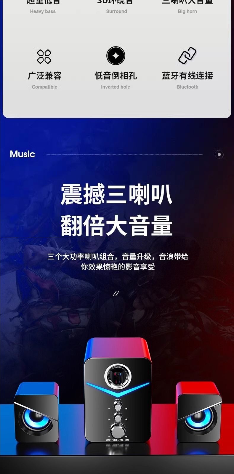 오디오 컴퓨터 데스크톱 전자 스포츠 미니 스피커 노트북 휴대 전화 데스크톱 블루투스 유선 스테레오 오디오 서브 우퍼스토어 가기