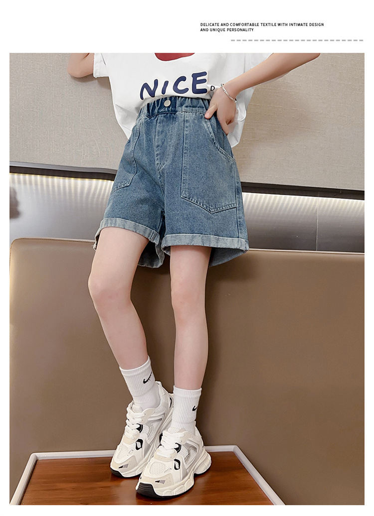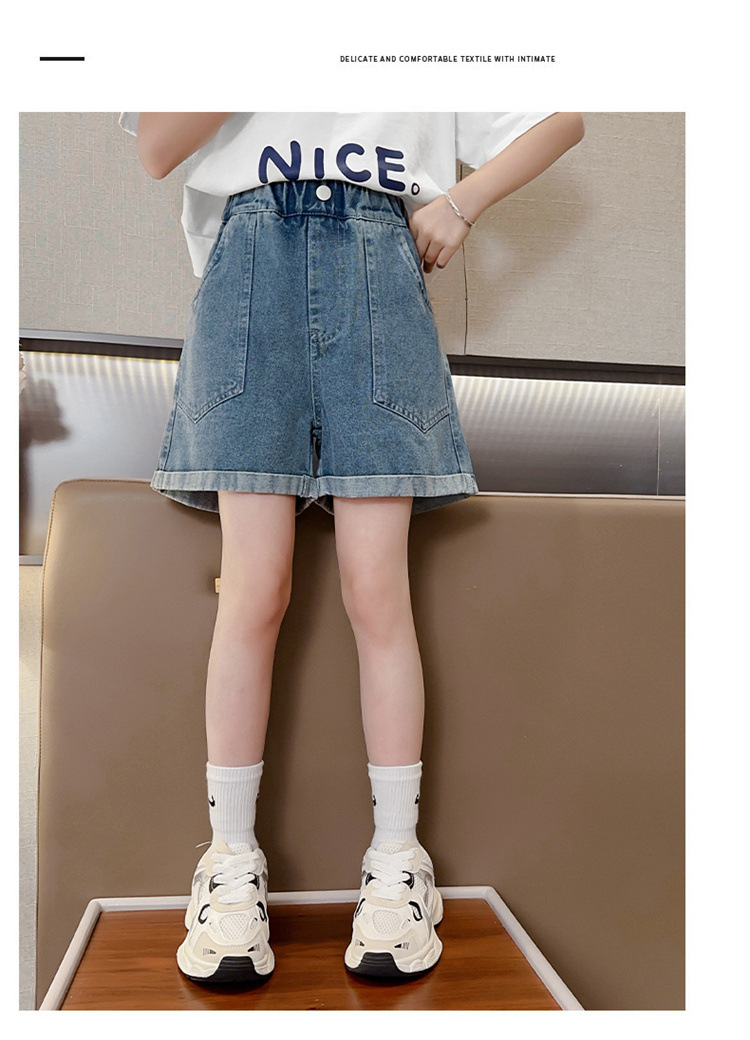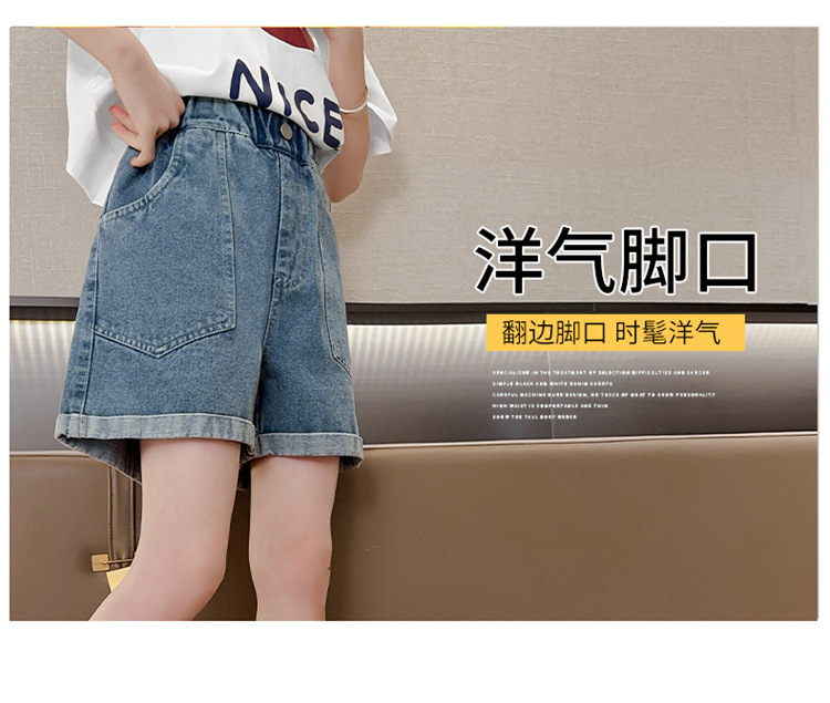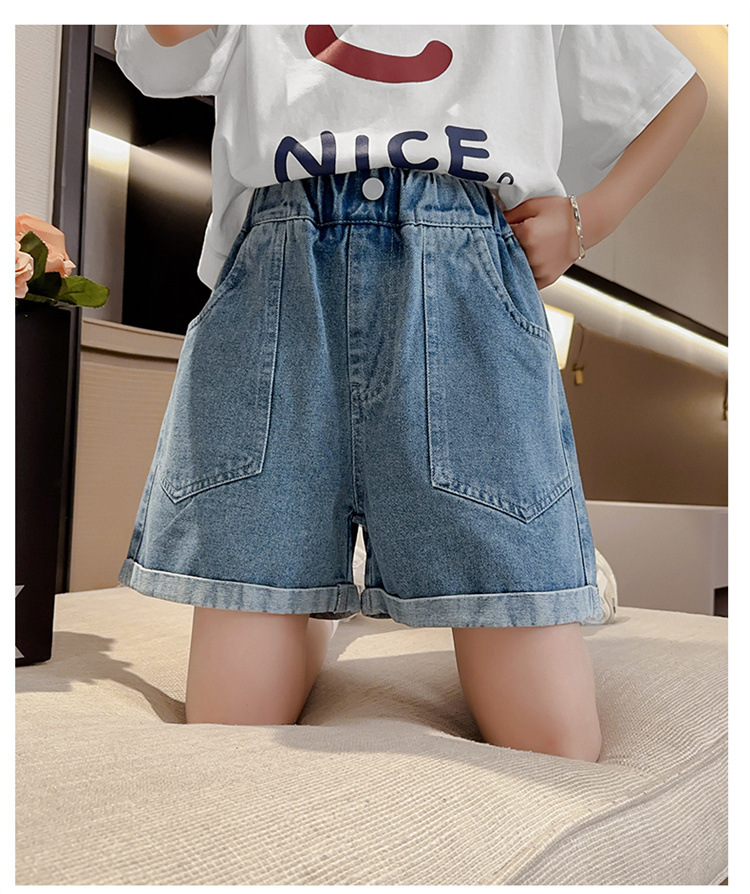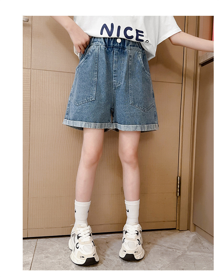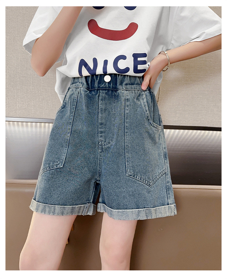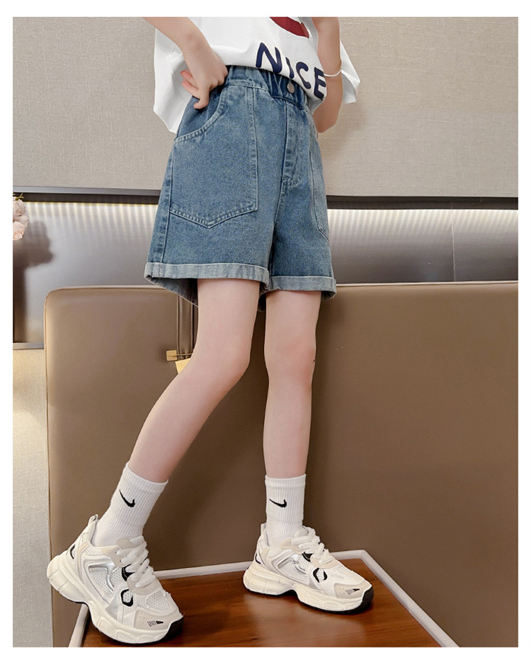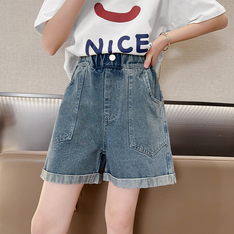소녀 데님 반바지 여름 새로운 어린이 서양식 캐주얼 반바지 큰 아이들과 소녀들을위한 트렌디 한 여름 외부 착용 바지