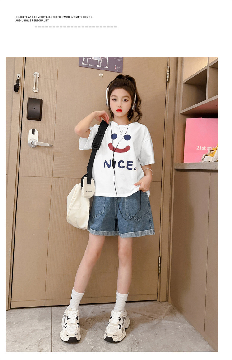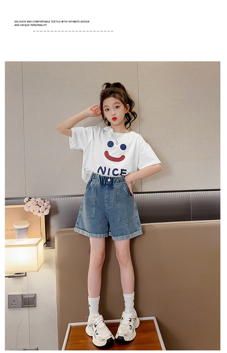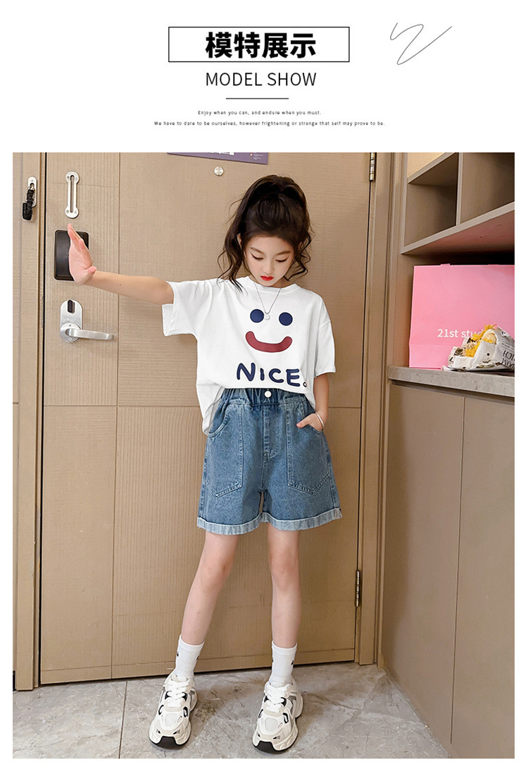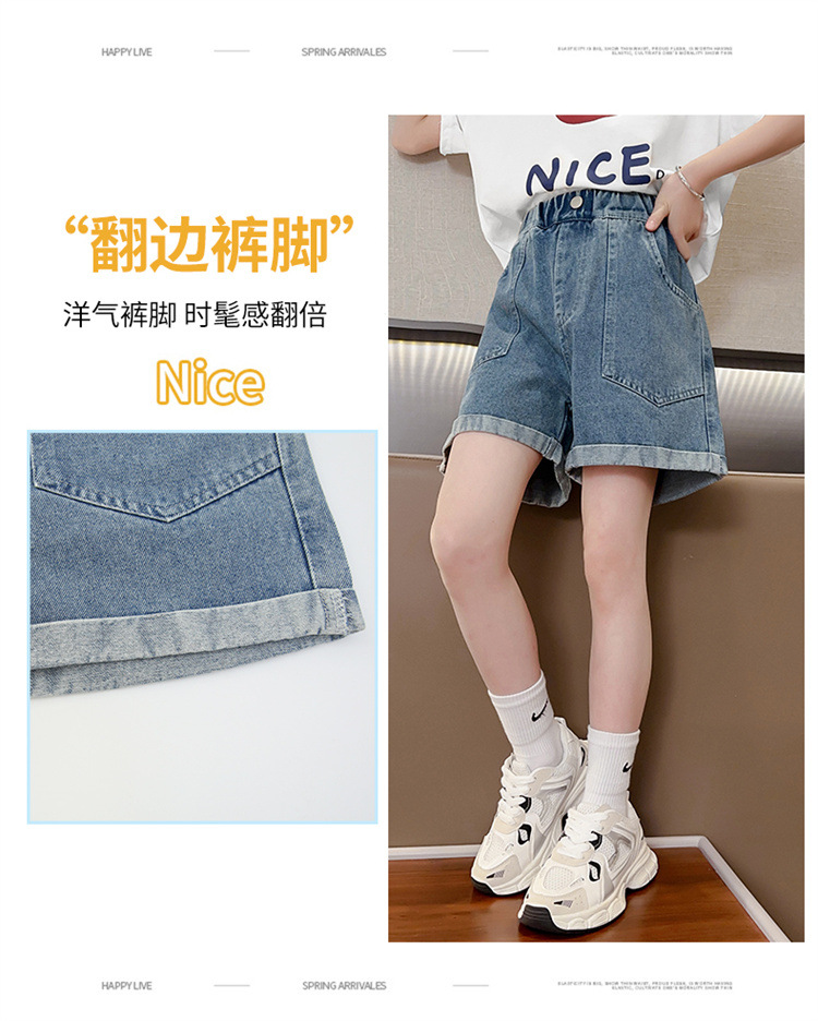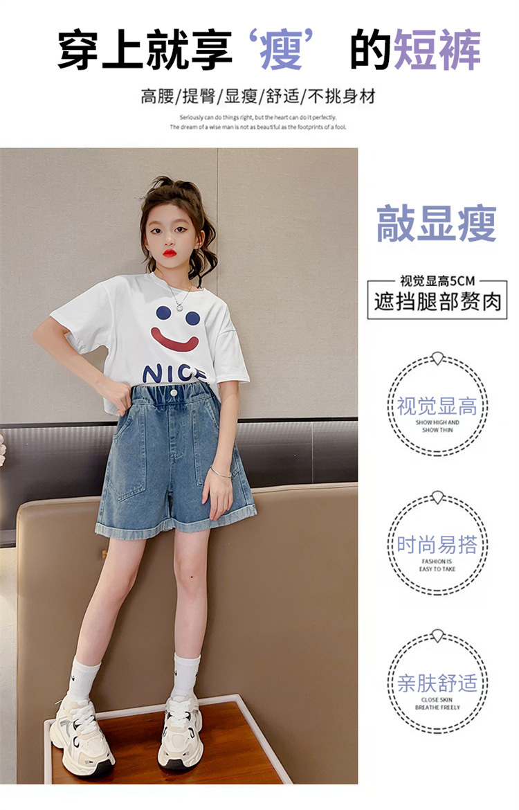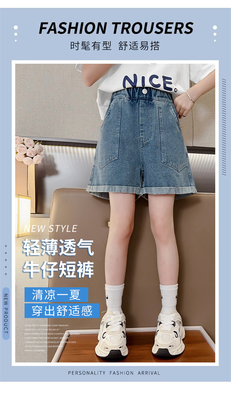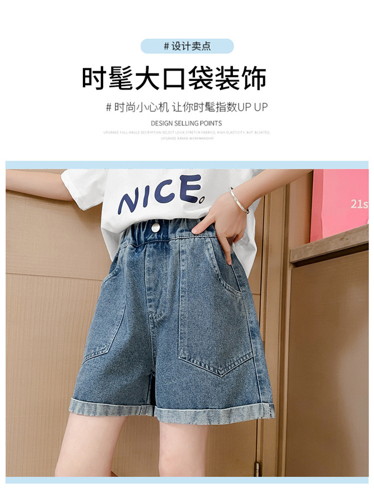 소녀 데님 반바지 여름 새로운 어린이 서양식 캐주얼 반바지 큰 아이들과 소녀들을위한 트렌디 한 여름 외부 착용 바지