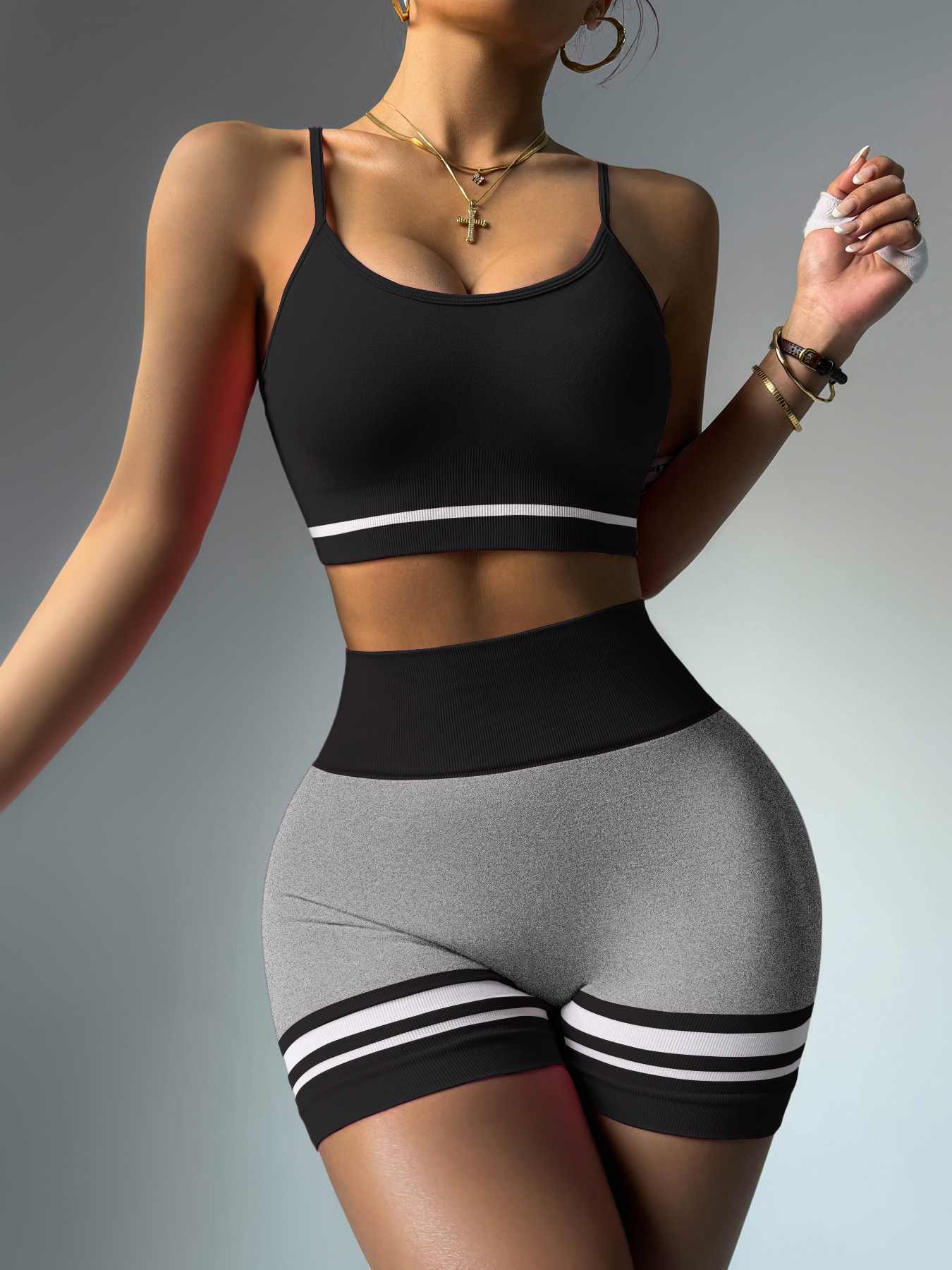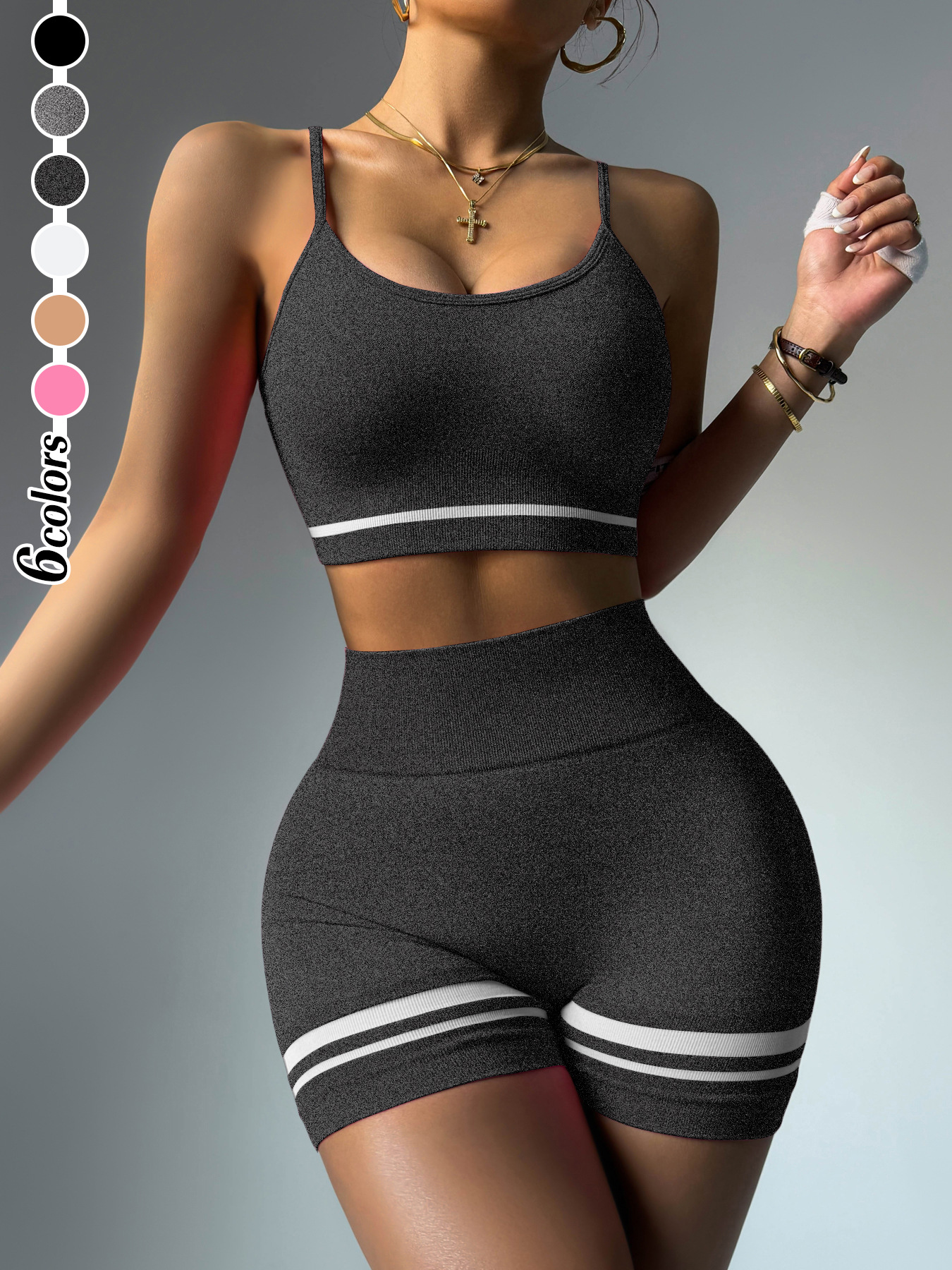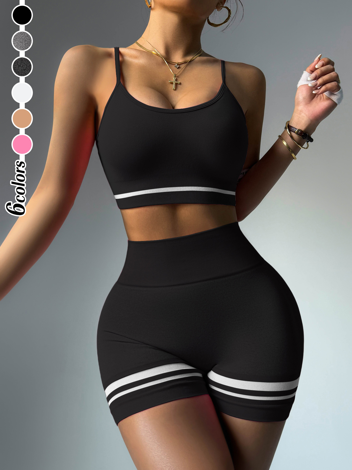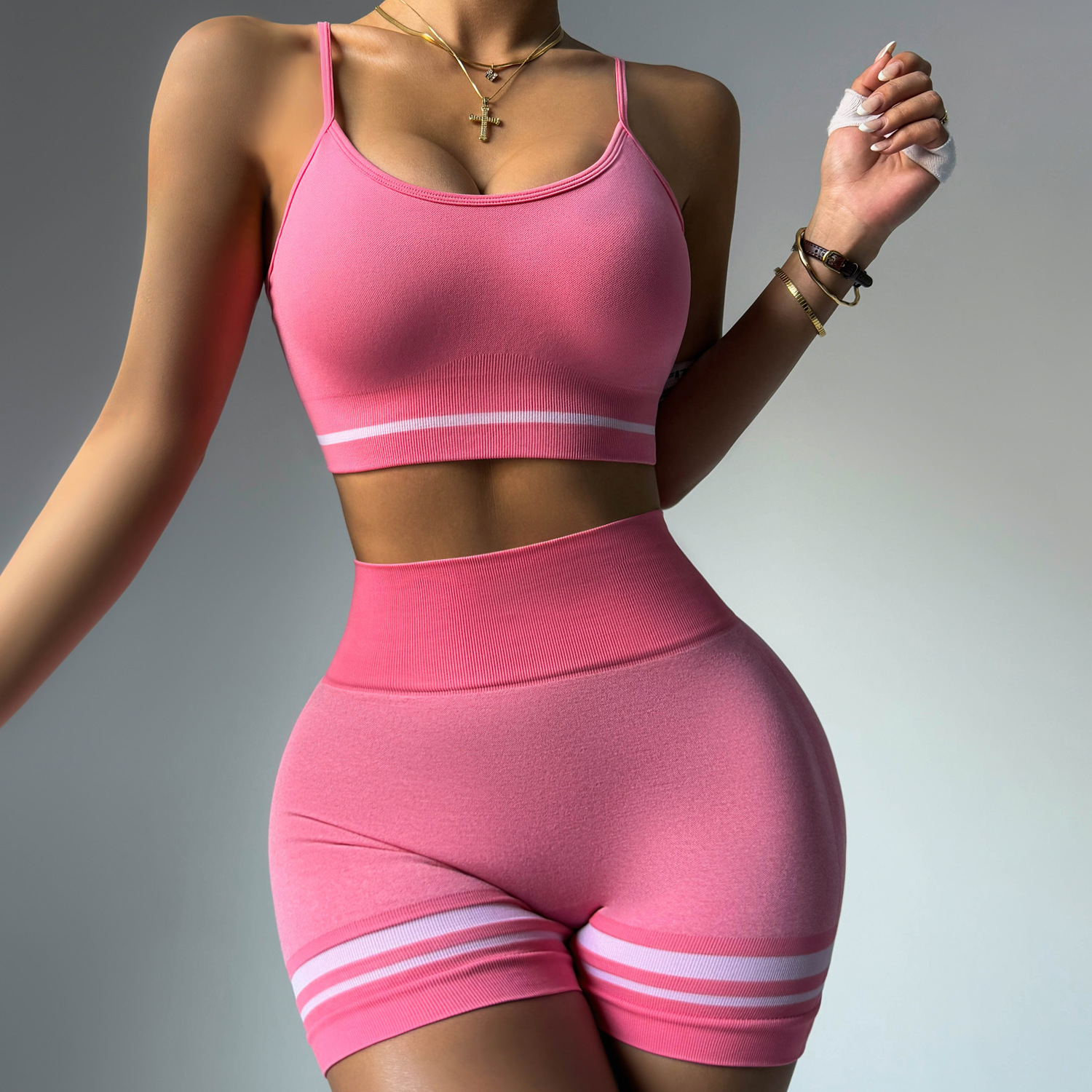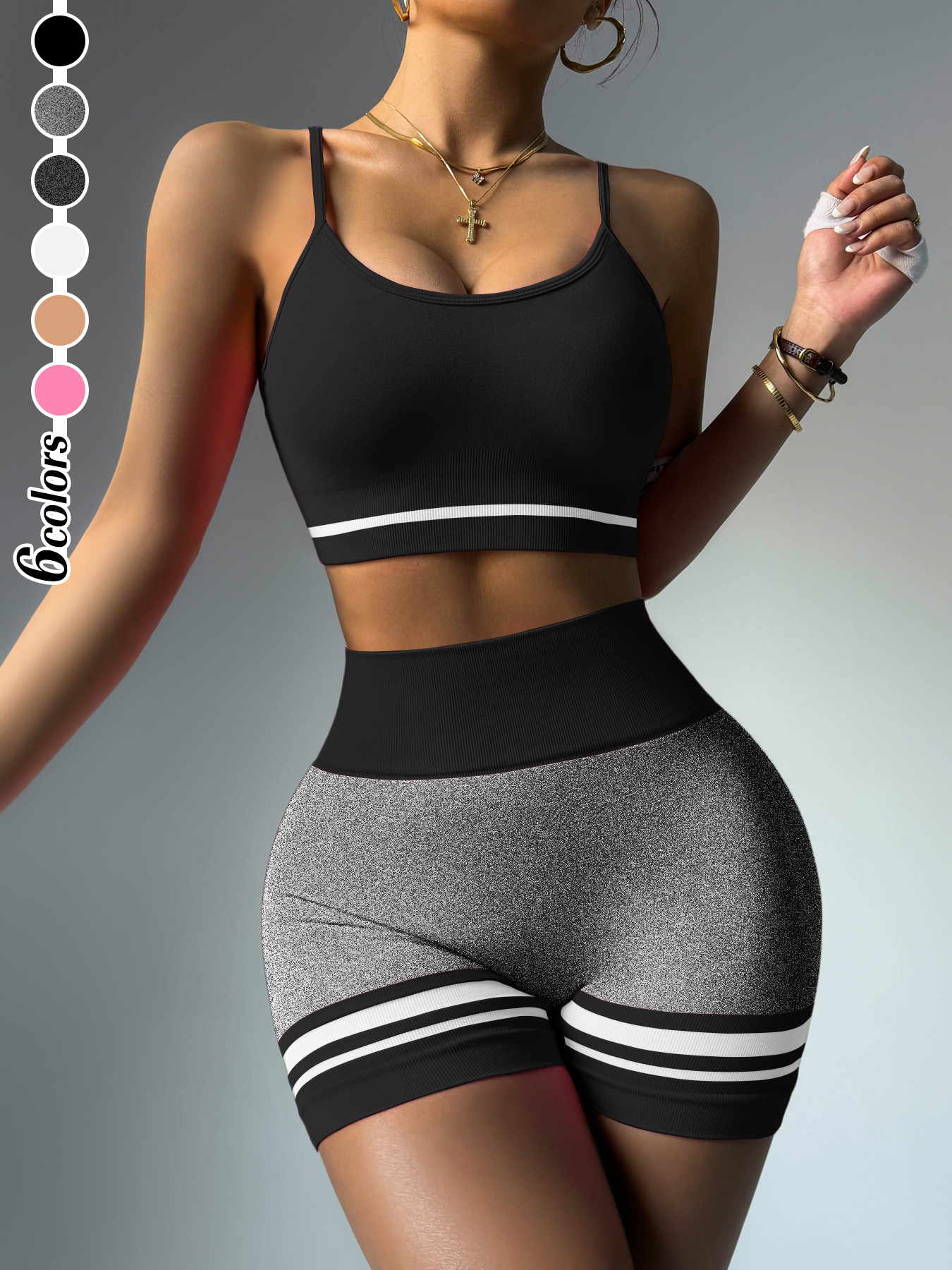 국경 간 새로운 원활한 컬러 매칭 요가 세트 여성 충격 방지 스포츠 러닝 아우터웨어 브라 힙합 피트니스 반바지스토어 가기
