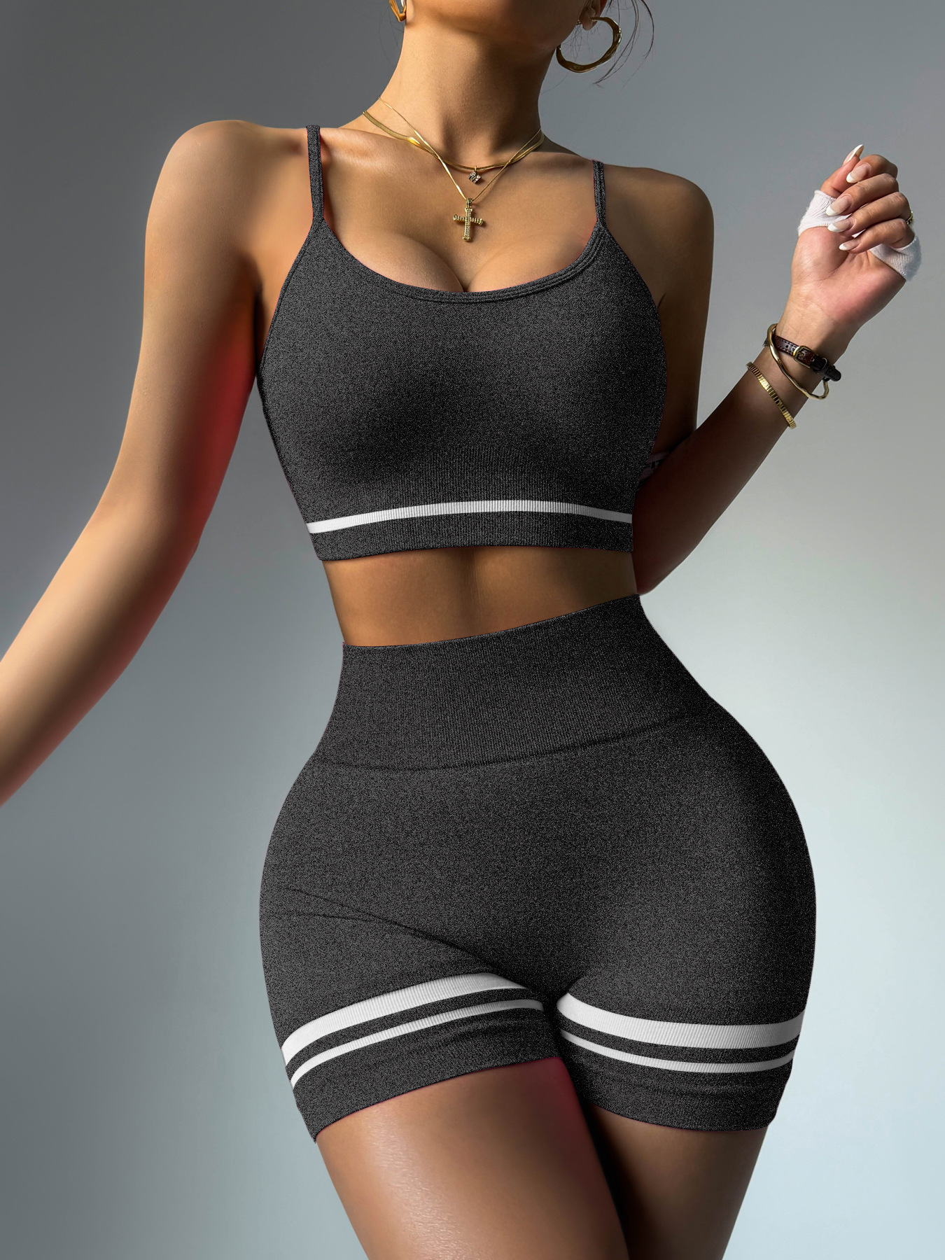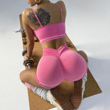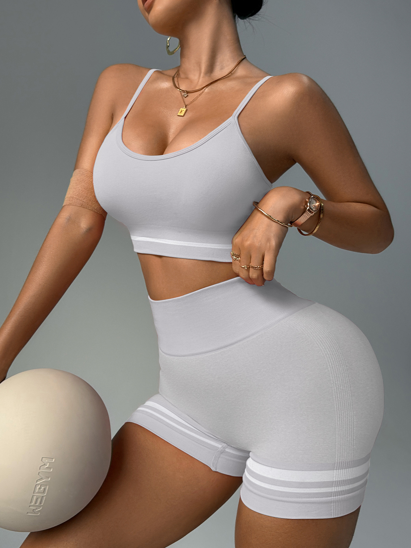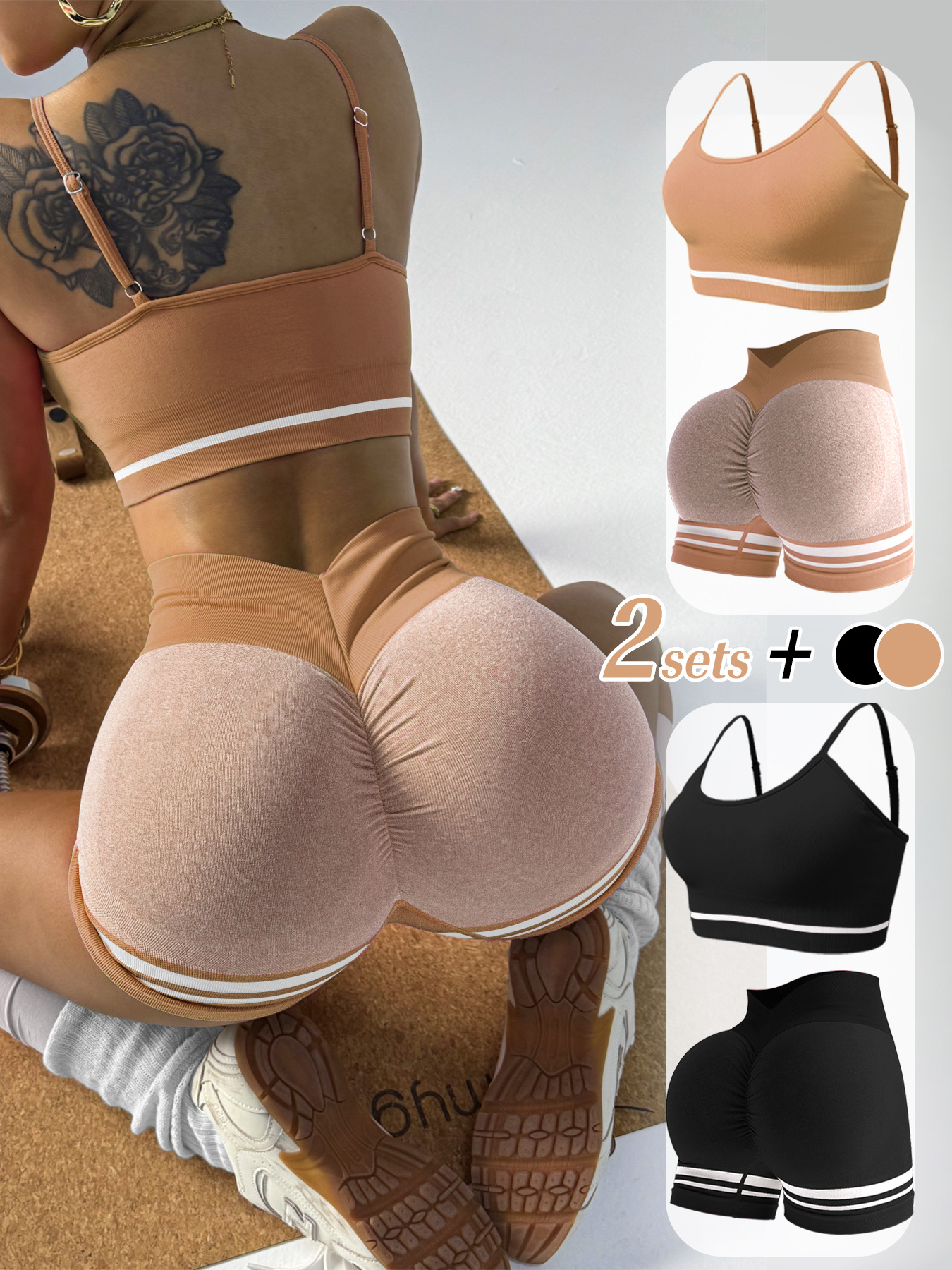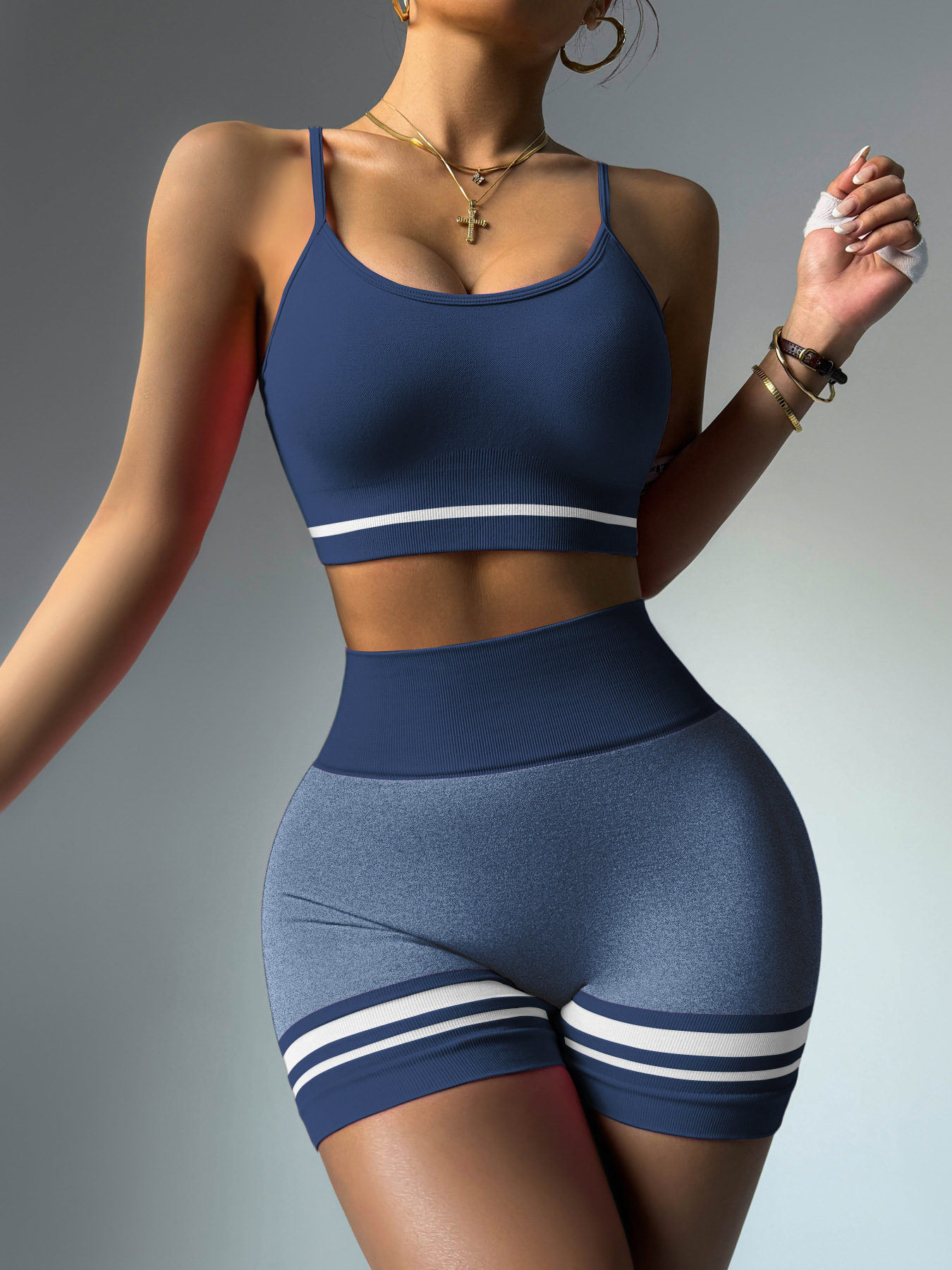 국경 간 새로운 원활한 컬러 매칭 요가 세트 여성 충격 방지 스포츠 러닝 아우터웨어 브라 힙합 피트니스 반바지스토어 가기