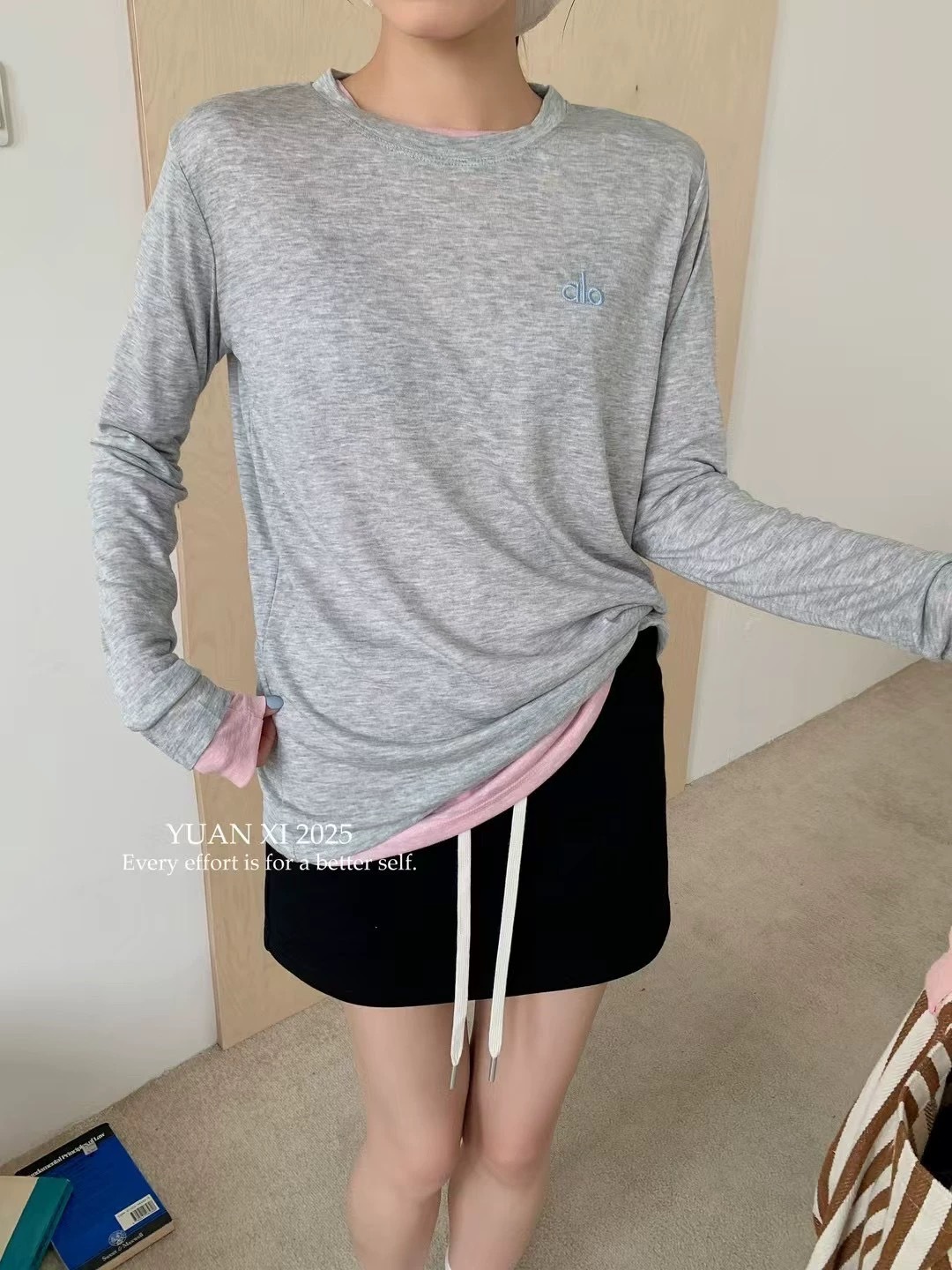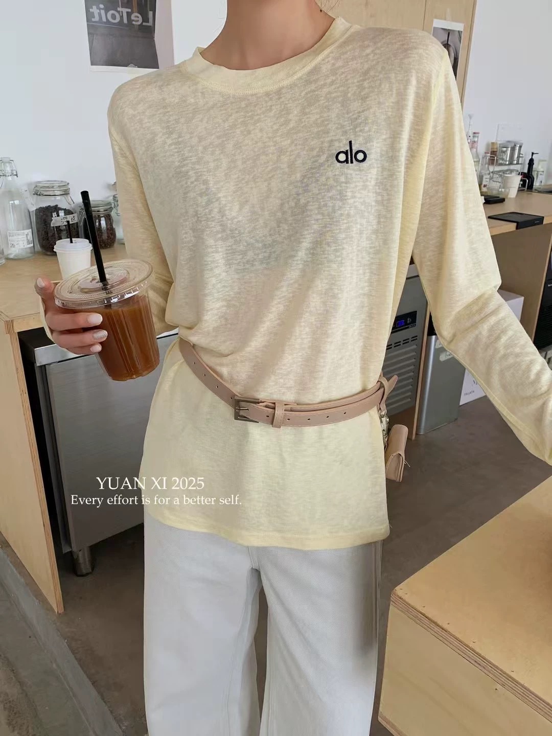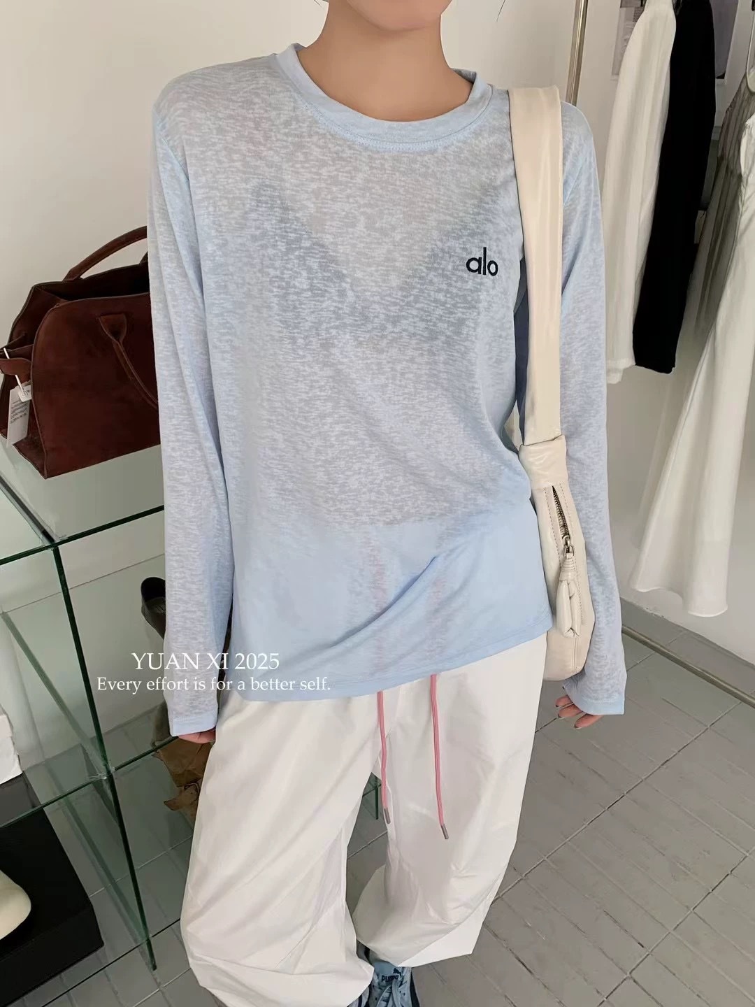 Duoqi 25 봄과 여름 새로운 alo 자수 편지 사탕 색 태양 보호베이스 아이스 실크 니트 탑 여름