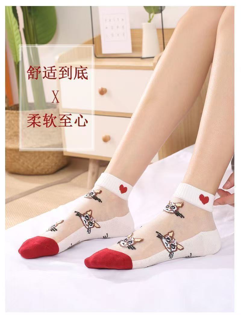 고양이 만화 유리 스타킹 어린이 봄과 여름 얇은 양말 실크 면화 바닥 땀 흡수성 통기성 마구간 양말 도매스토어 가기