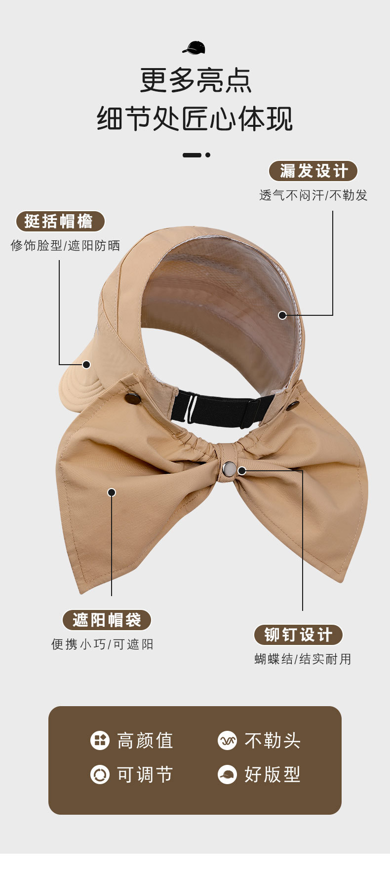 2025 새로운 차양 모자 여성의 태양 보호 및 UV 보호 여름 야외 큰 브림 높은 송골 꼬리 빈 탑 태양 모자