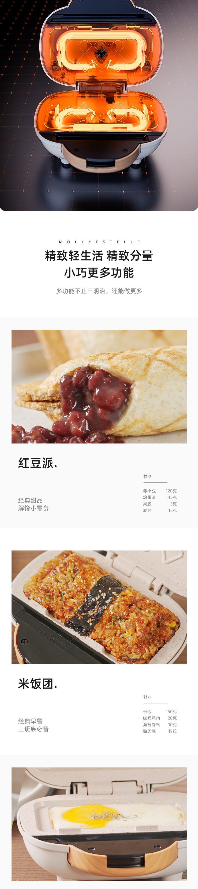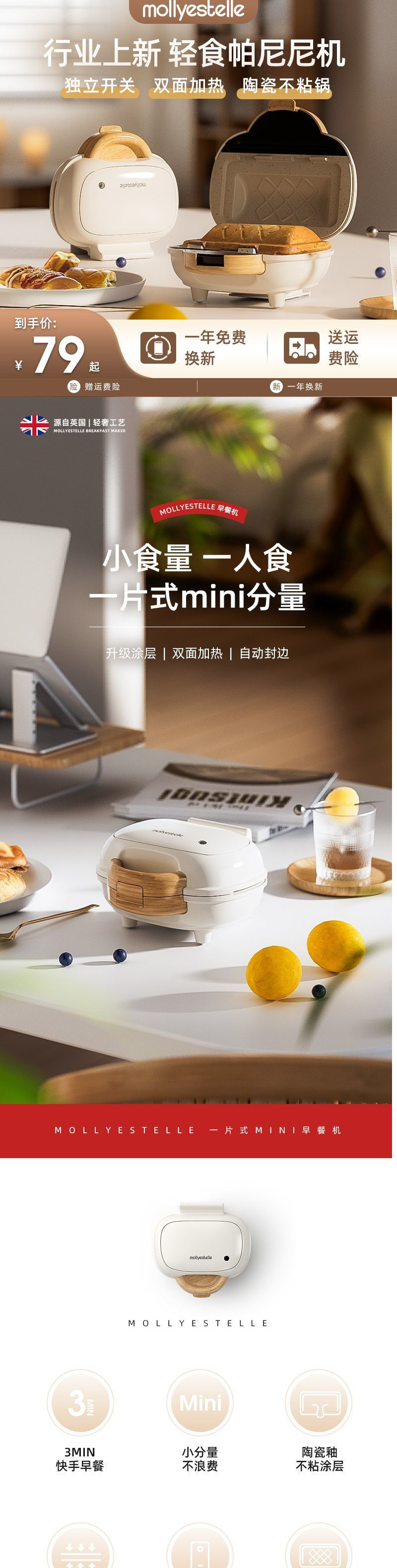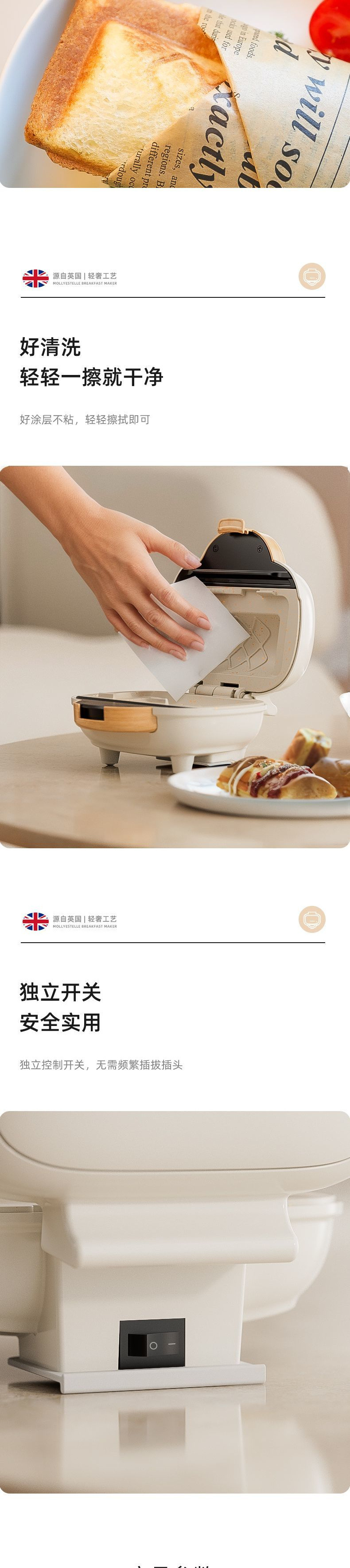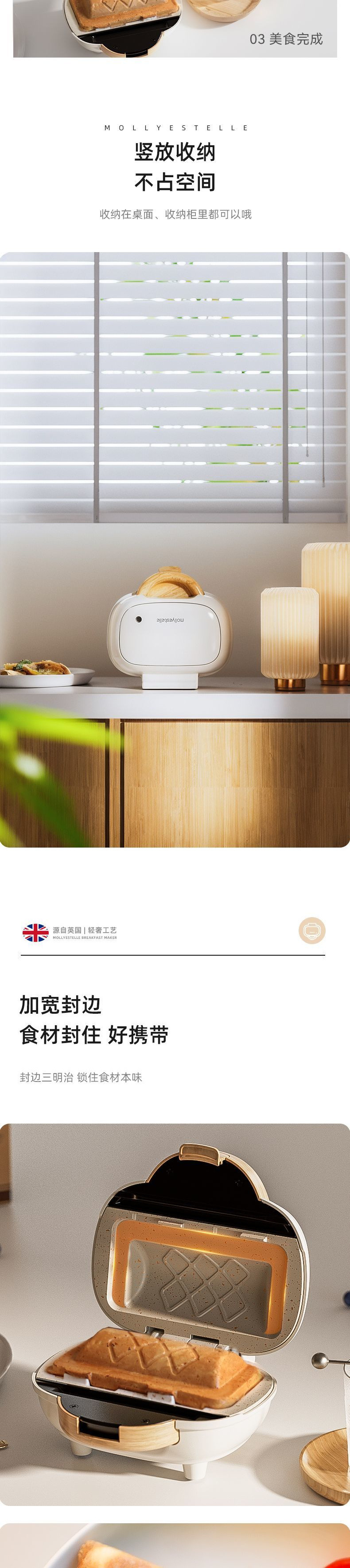 Mollyestelle 샌드위치 기계 아침 식사 기계 가정용 열 프레스 토스트 파니니 기계 다기능 토스트 기계스토어 가기
