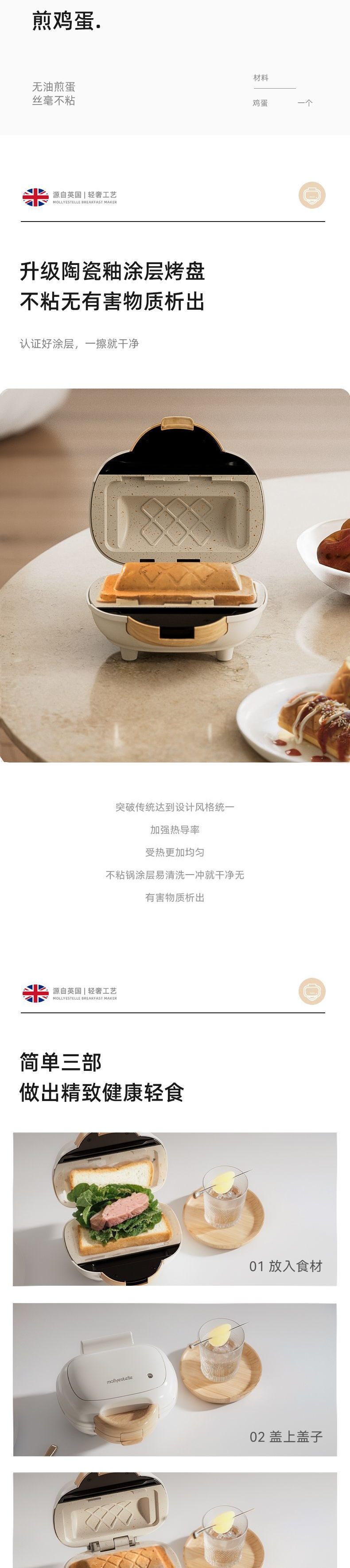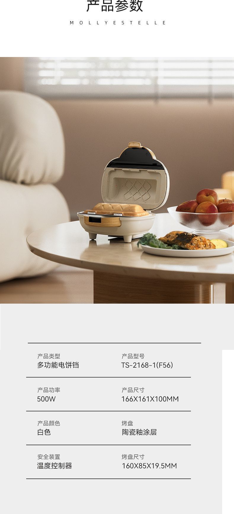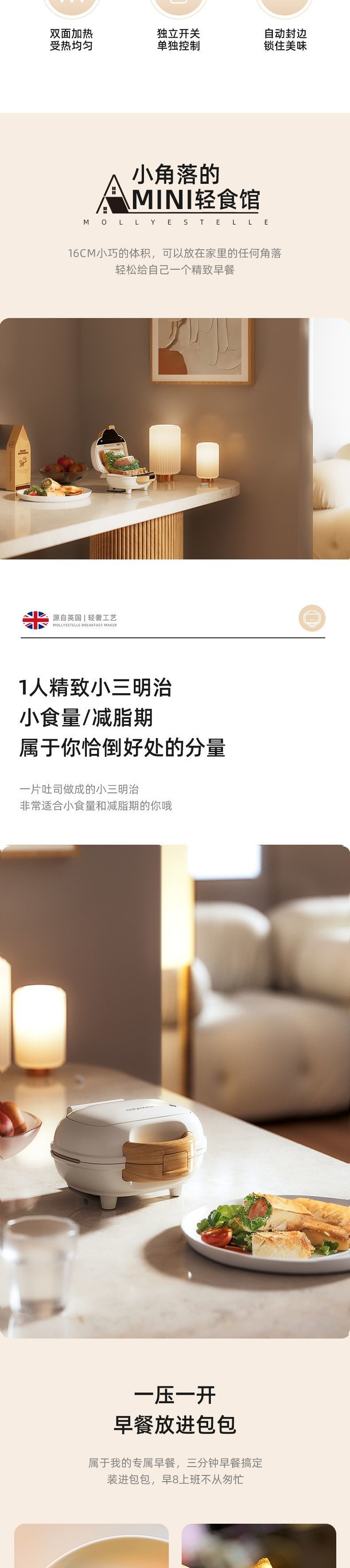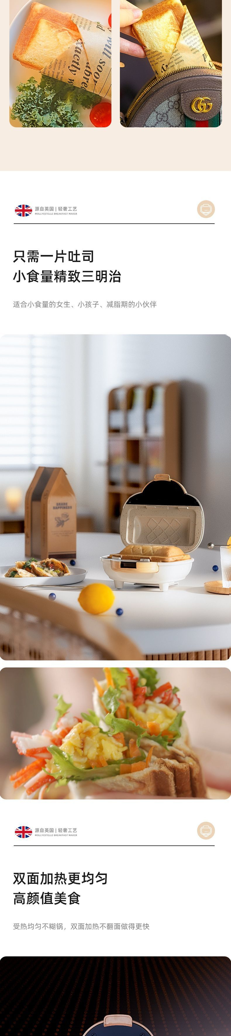 Mollyestelle 샌드위치 기계 아침 식사 기계 가정용 열 프레스 토스트 파니니 기계 다기능 토스트 기계스토어 가기