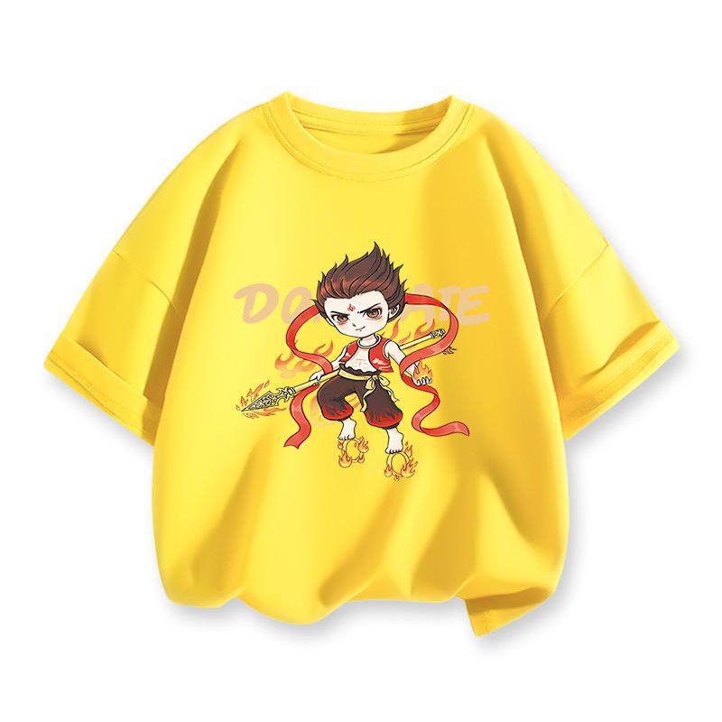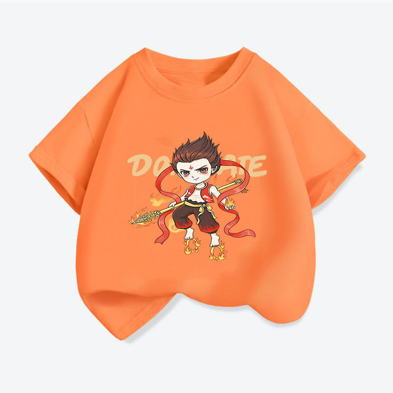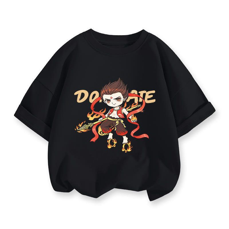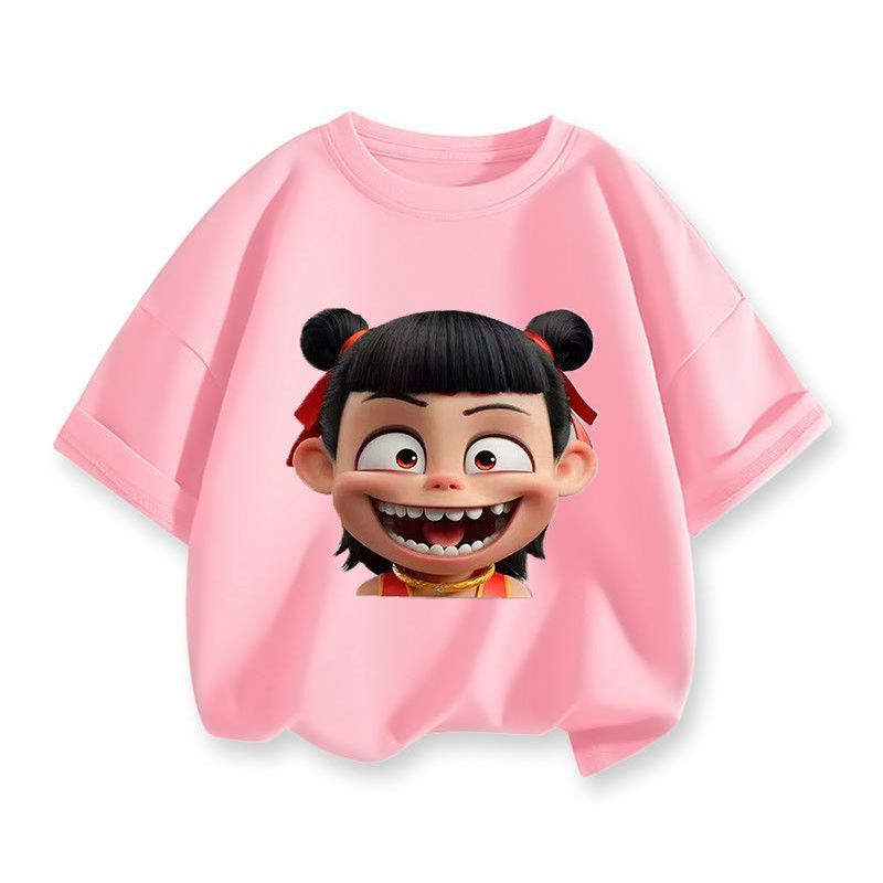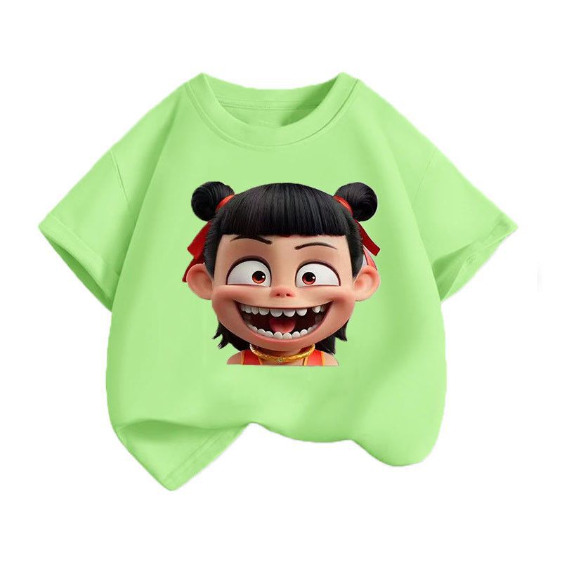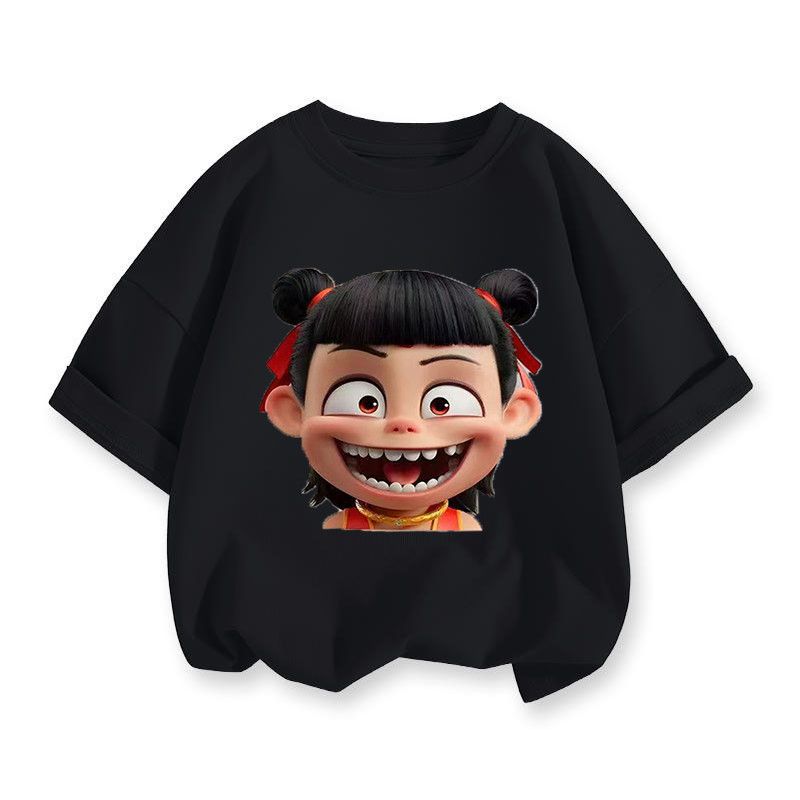 네자 슬리브 소년과 소녀 짧은 소매 T 여름 전국 패션 2025 만화 미드 빅 키즈 새로운 라운드 넥 루즈 탑 올 매치