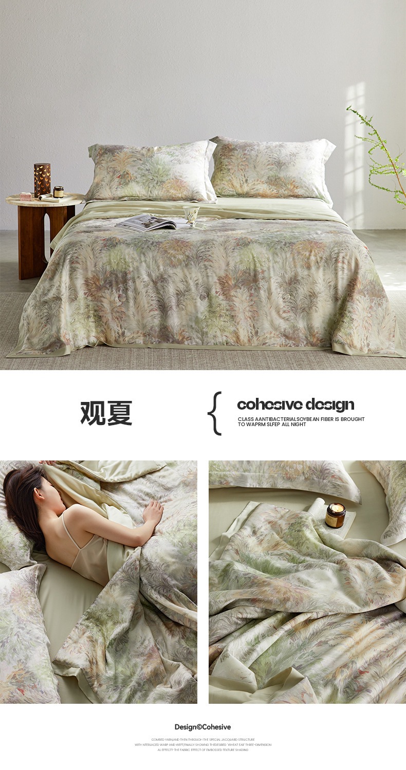 60S Lyocell Tencel 여름 퀼트 4 조각 노르딕 라이트 럭셔리 Li Guanqi 대두 섬유 여름 시원한 공기 조절 이불