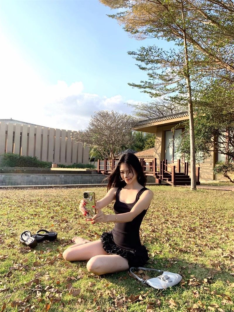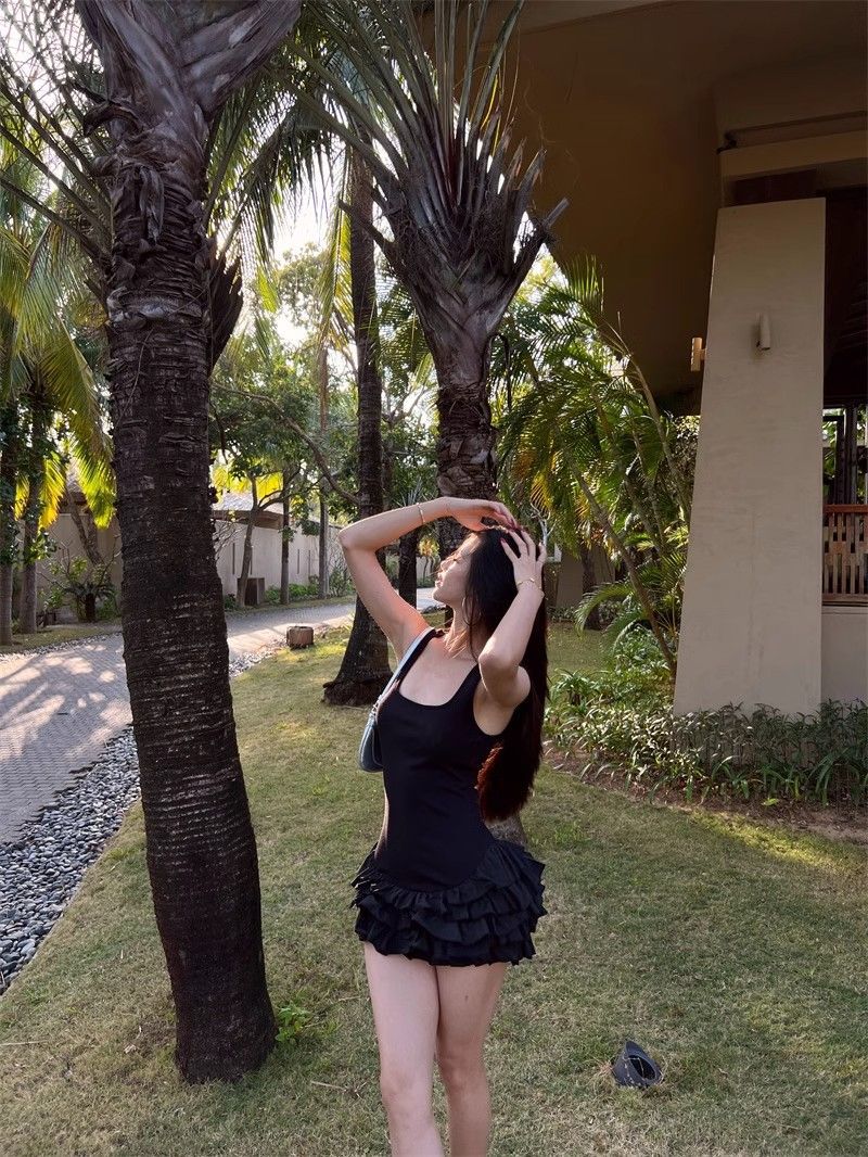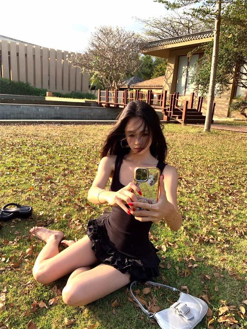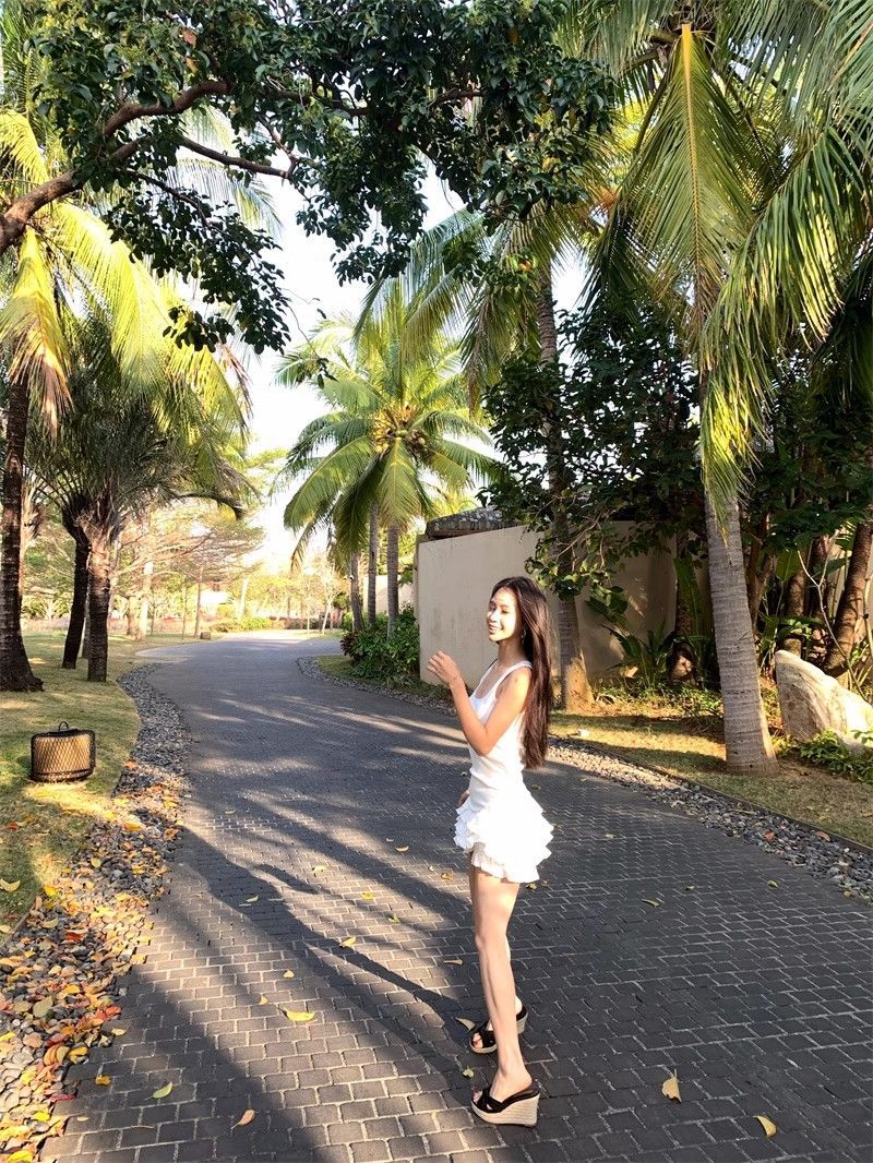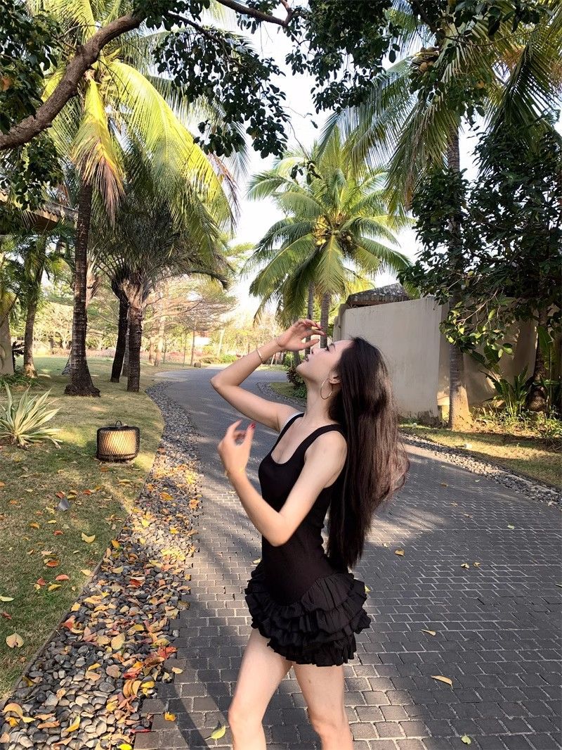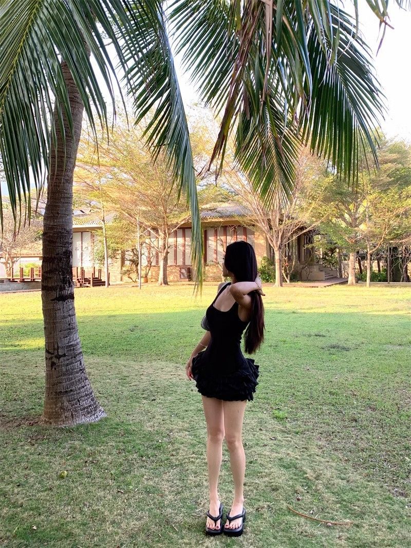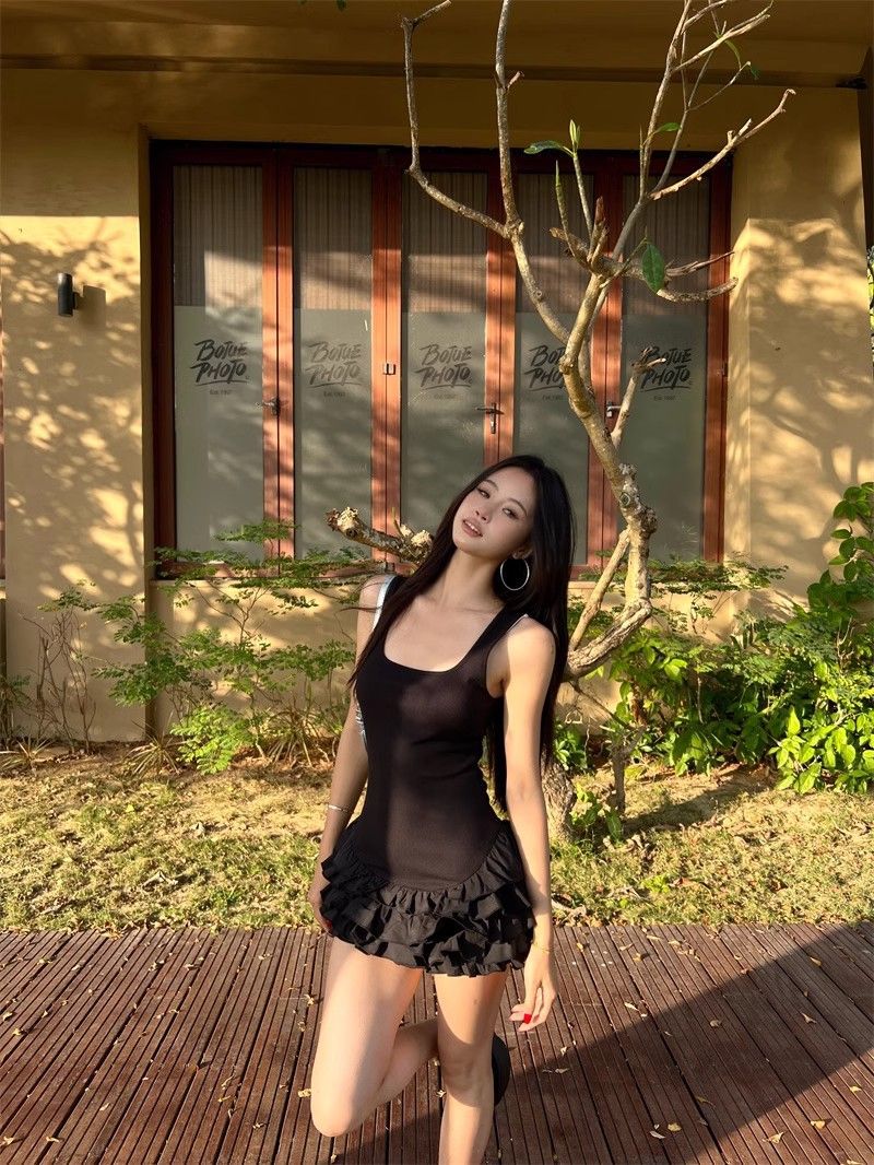 달콤한 스타일 화이트 슬링 원피스 여성 의류 여름 독특한 러플 스커트 발레 스타일 A 라인 스커트스토어 가기