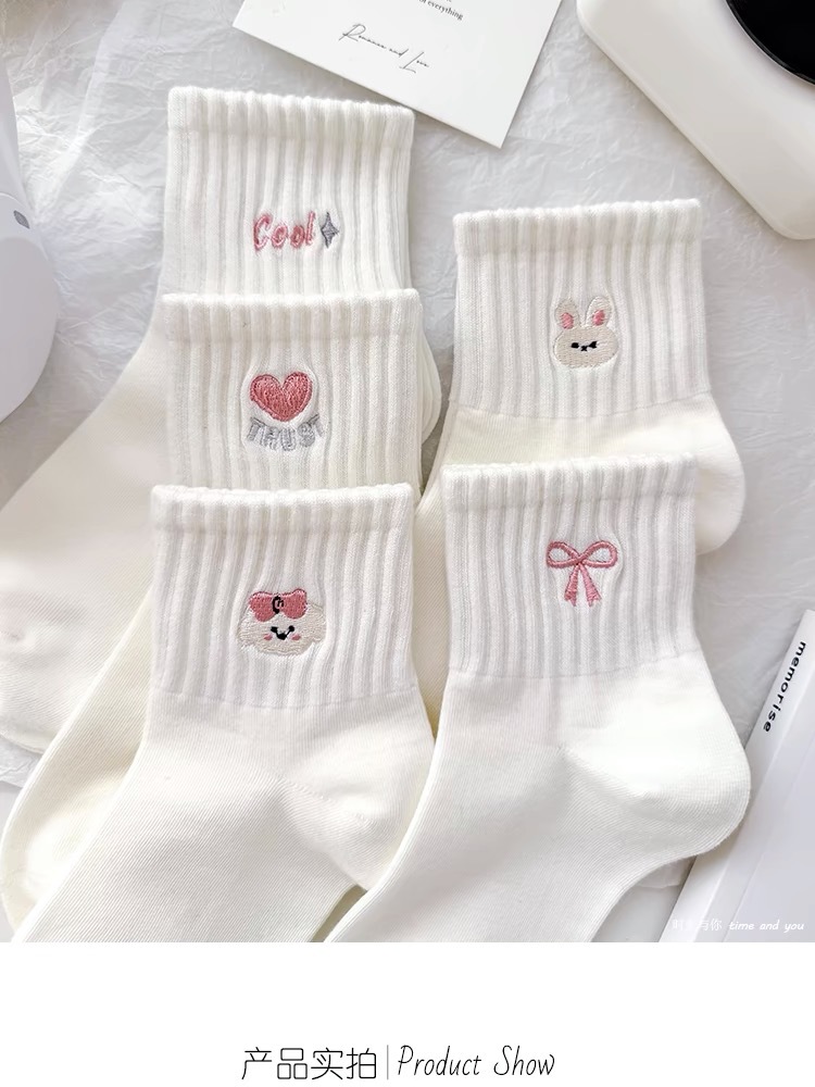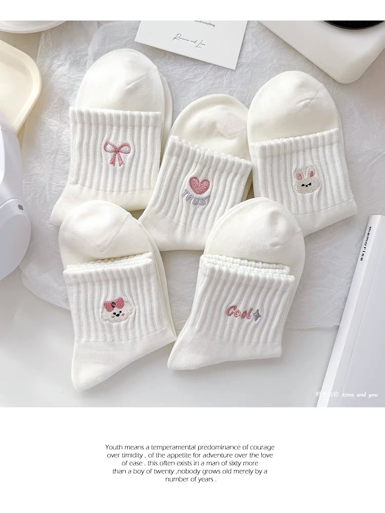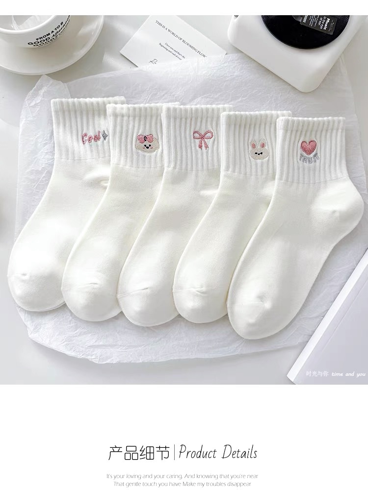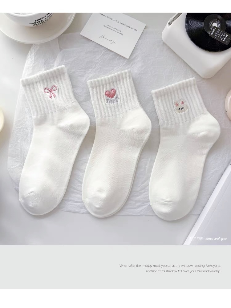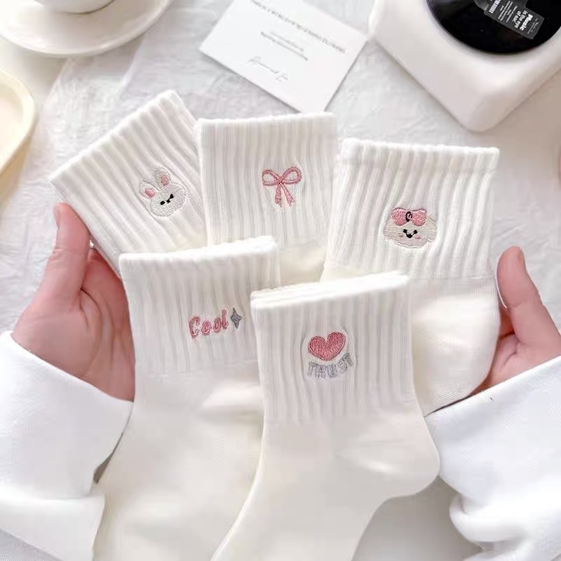 여름 메쉬 화이트 튜브 양말 수 놓은 단색면 여성 양말 한국 귀여운 스포츠 양말 얇은 양말