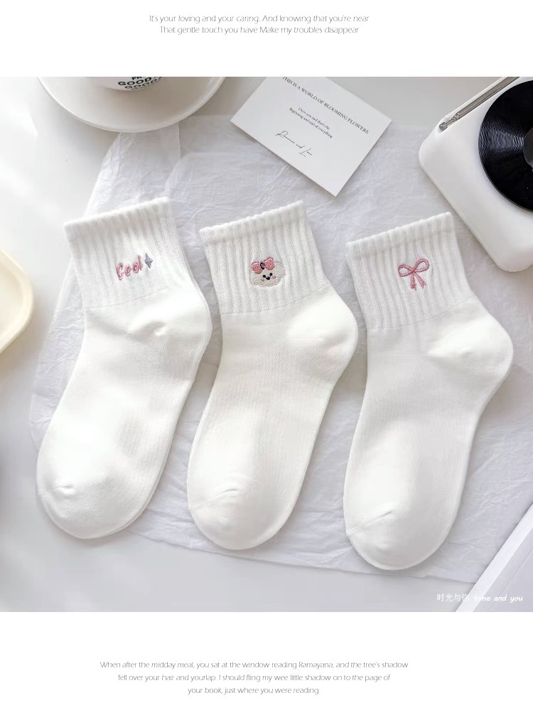 여름 메쉬 화이트 튜브 양말 수 놓은 단색면 여성 양말 한국 귀여운 스포츠 양말 얇은 양말스토어 가기