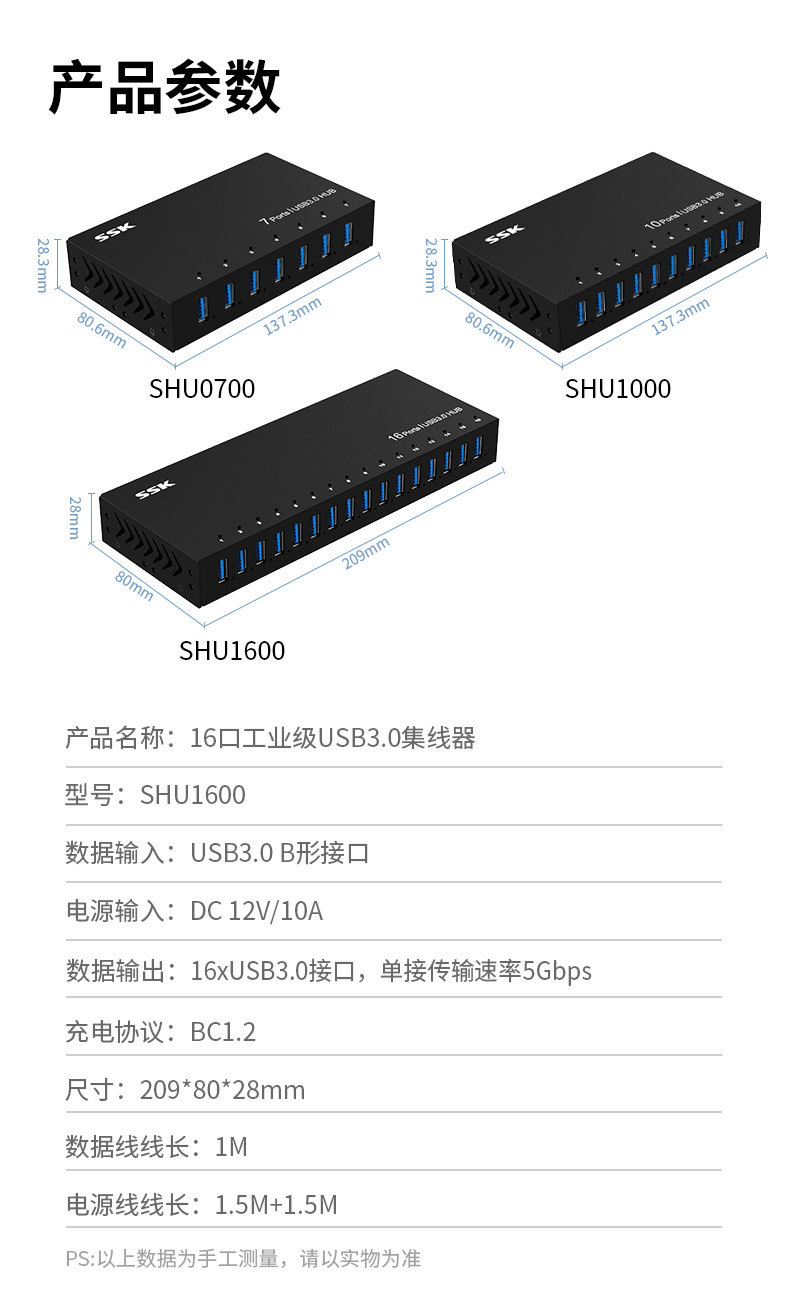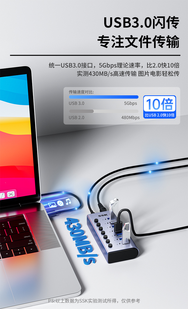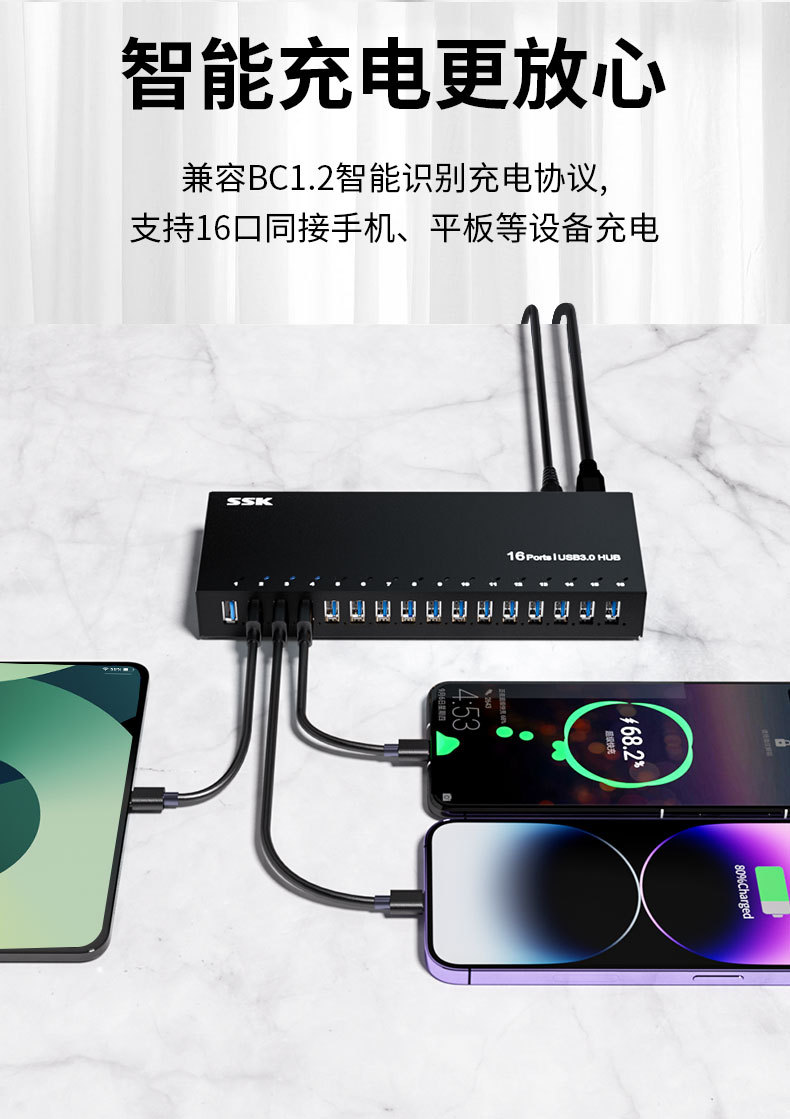 SSK Biao Wang 산업용 USB 허브 USB 포트 확장 전원 공급 장치 SHU1000 으로 특수 HUB 충전