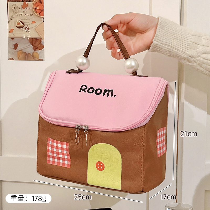 • 핑크 브라운 대형 하우스 화장품 가방 [일반 스타일]