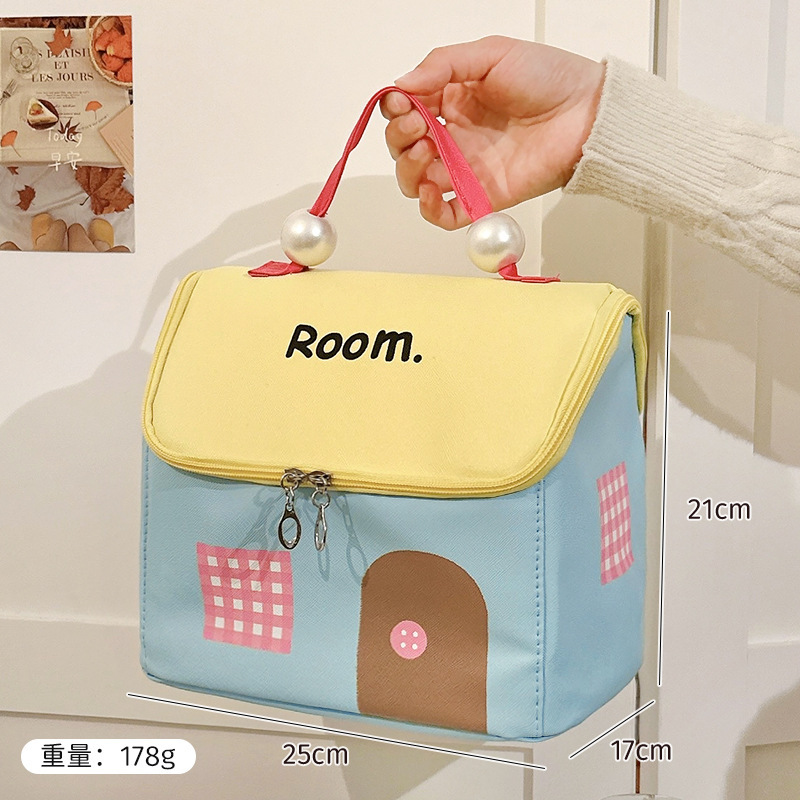 • 노란색과 파란색 큰 집 화장품 가방 [일반 스타일]
